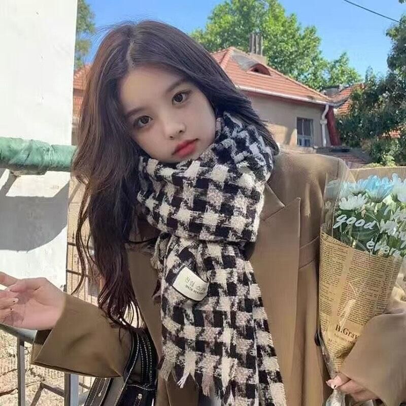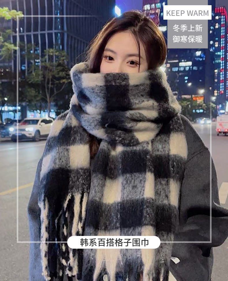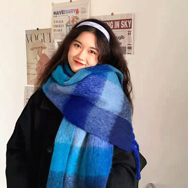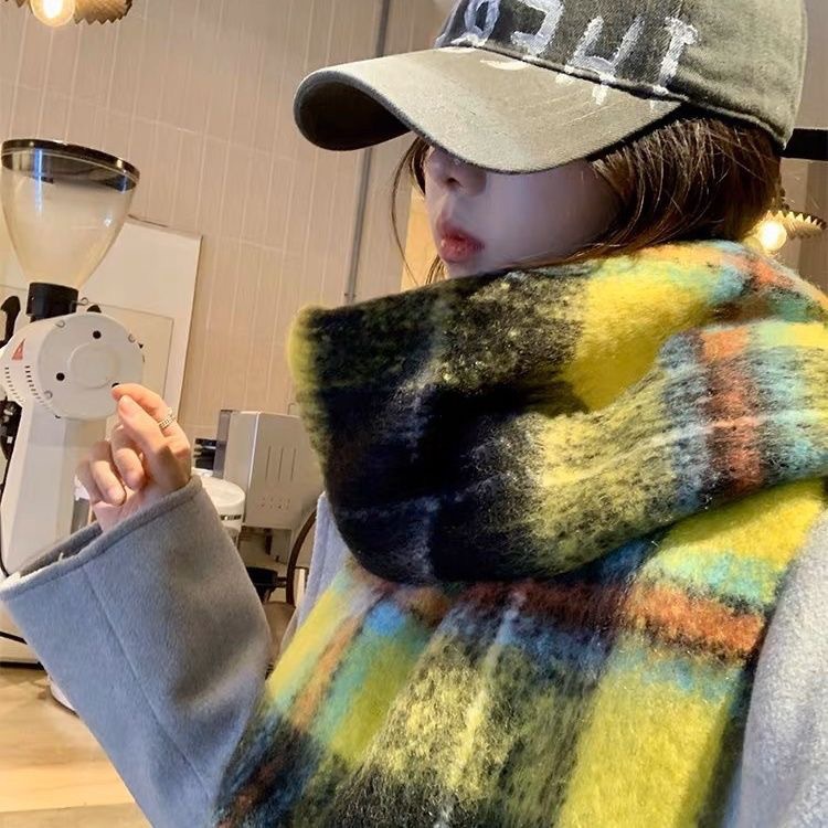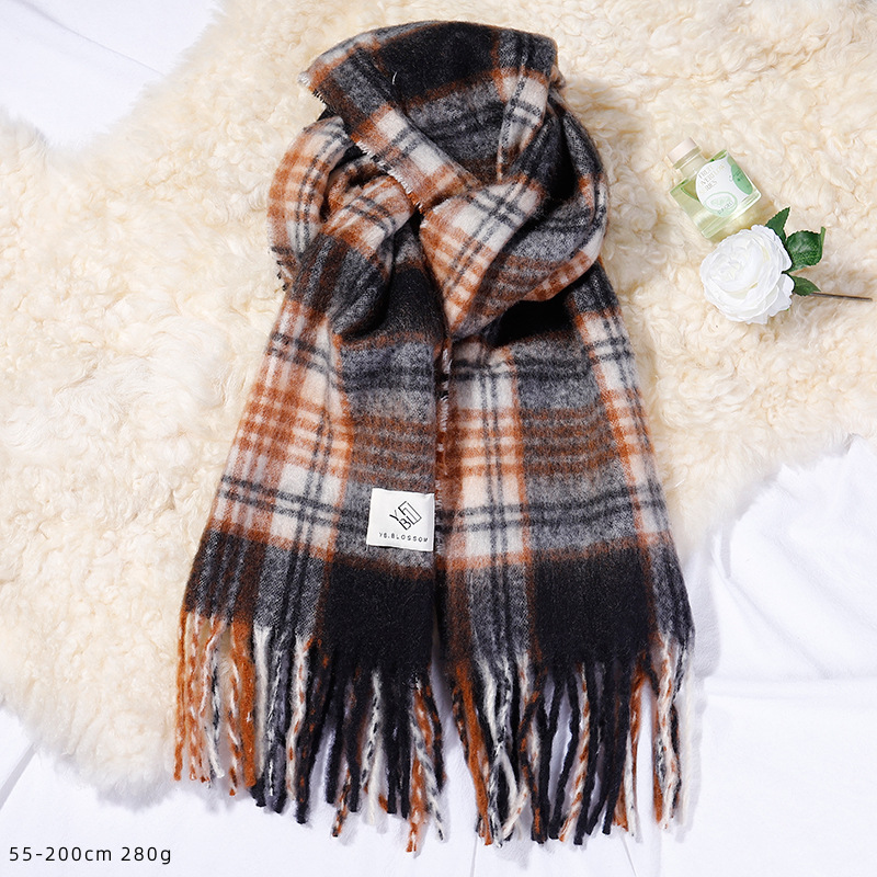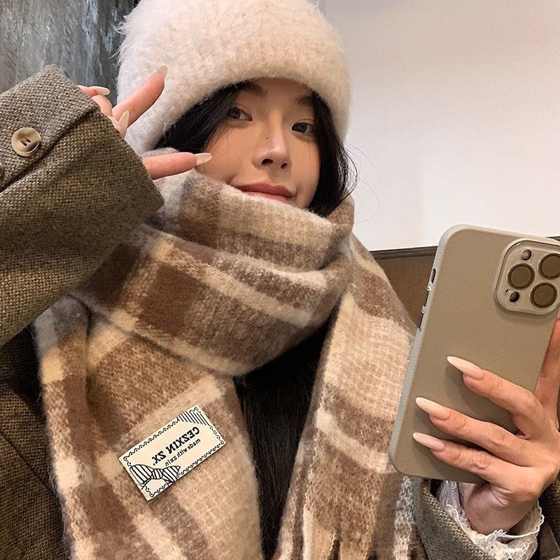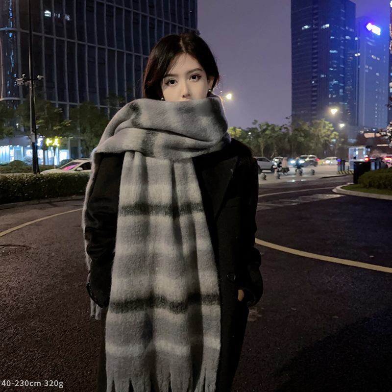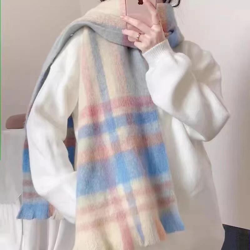 한국식 신형 마우헤어 스카프 겨울 여자 하이 엔드 체크 무늬 캐시미어 스카프 학생 올매치 목도리 스카프스토어 가기