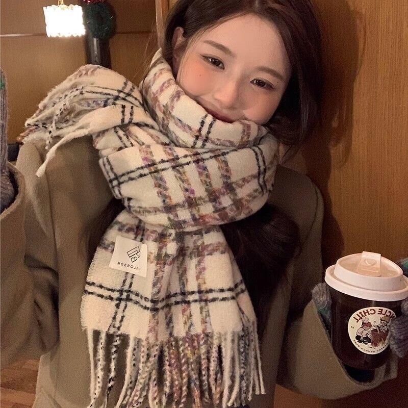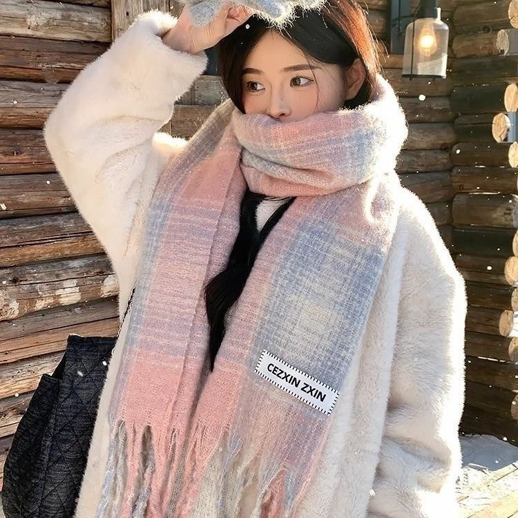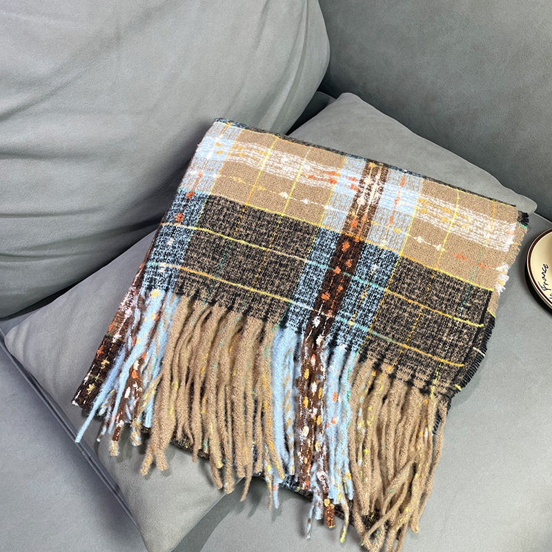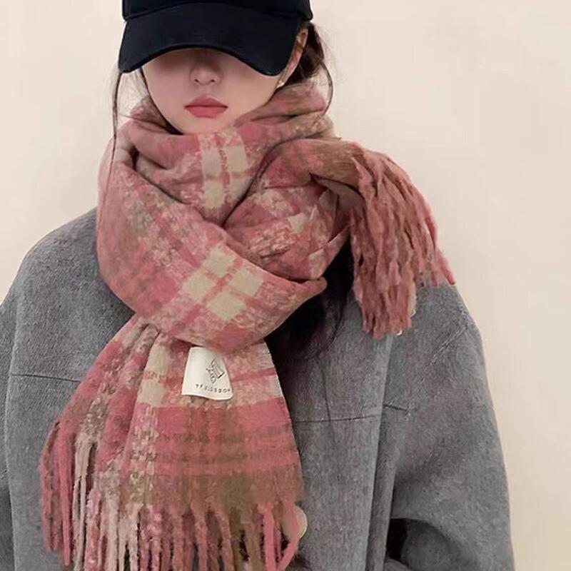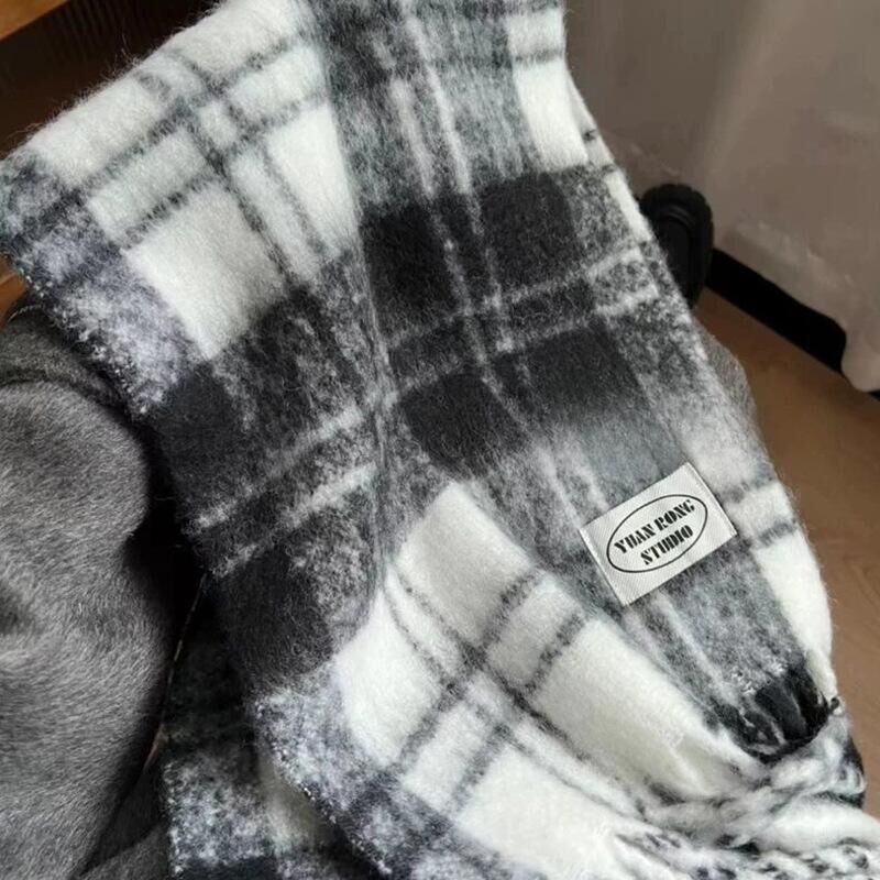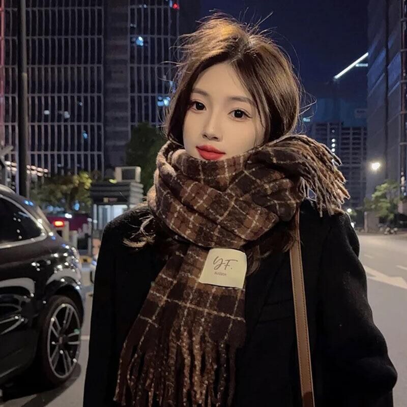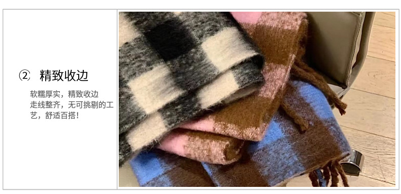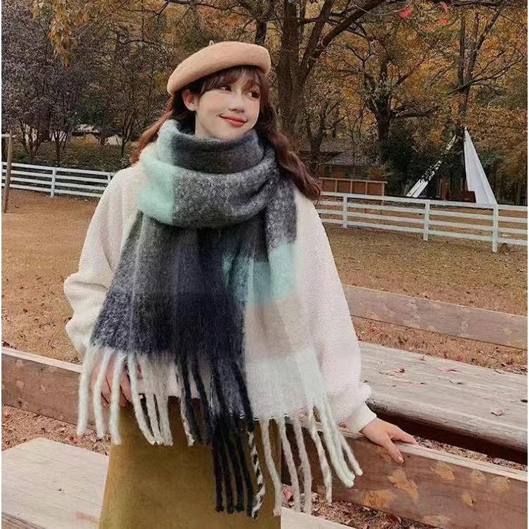 한국식 신형 마우헤어 스카프 겨울 여자 하이 엔드 체크 무늬 캐시미어 스카프 학생 올매치 목도리 스카프스토어 가기