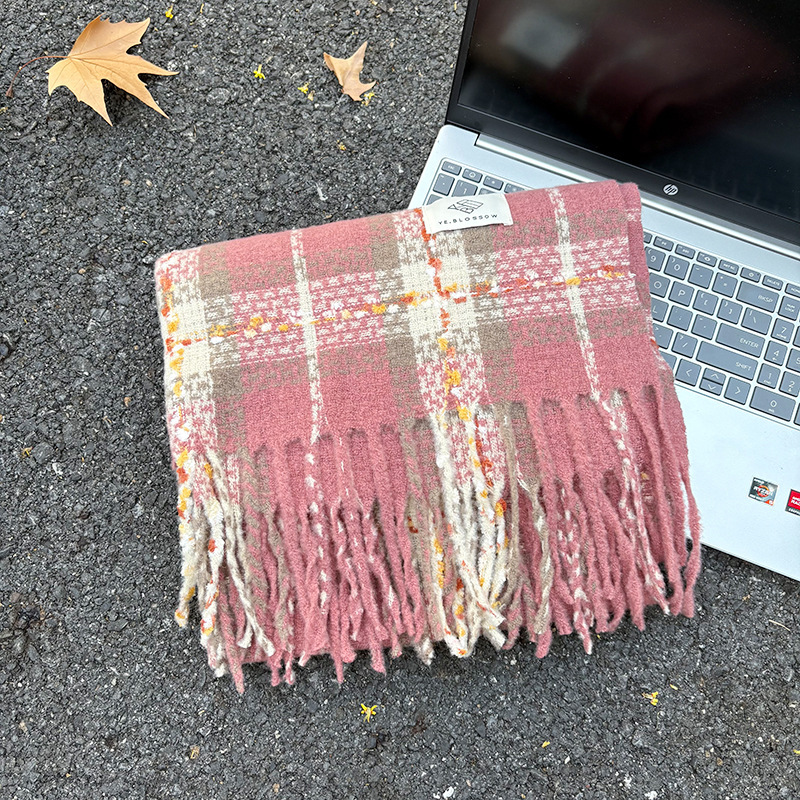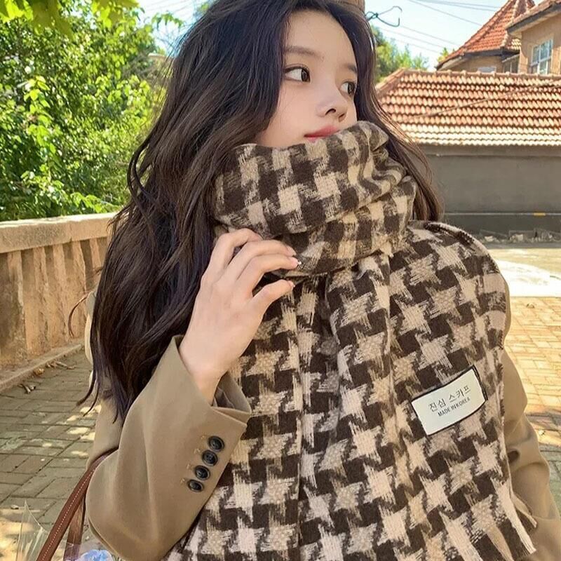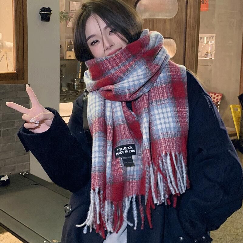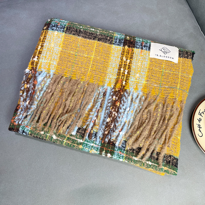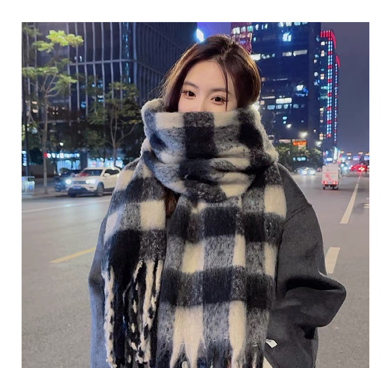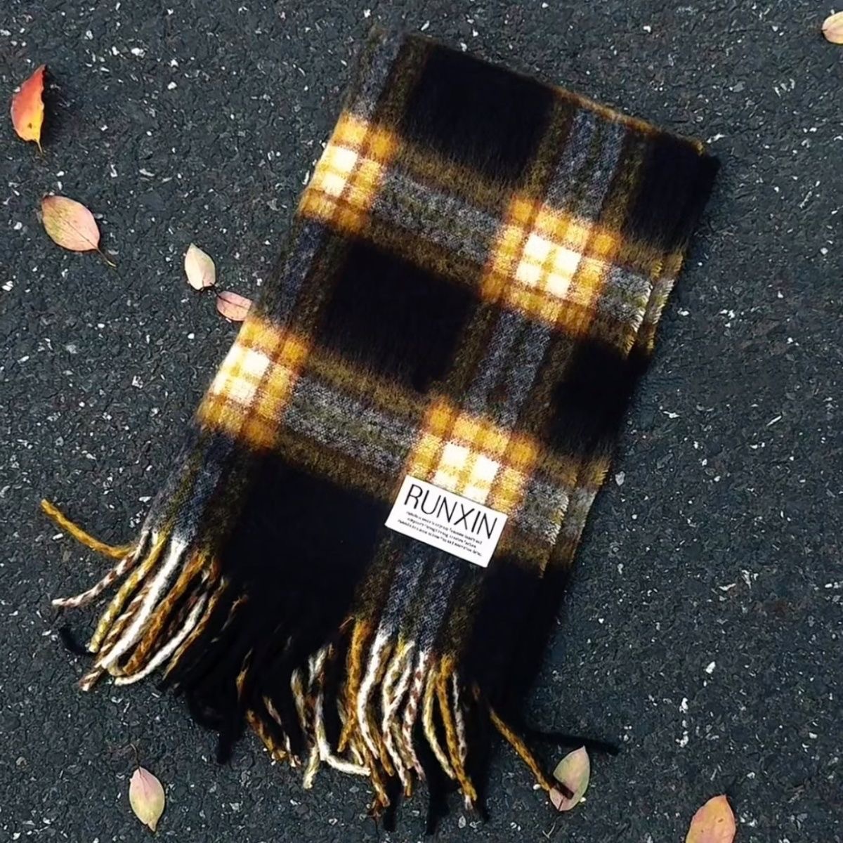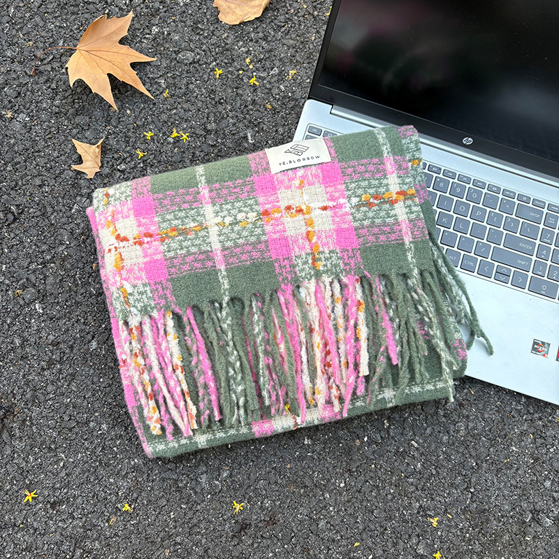 한국식 신형 마우헤어 스카프 겨울 여자 하이 엔드 체크 무늬 캐시미어 스카프 학생 올매치 목도리 스카프스토어 가기