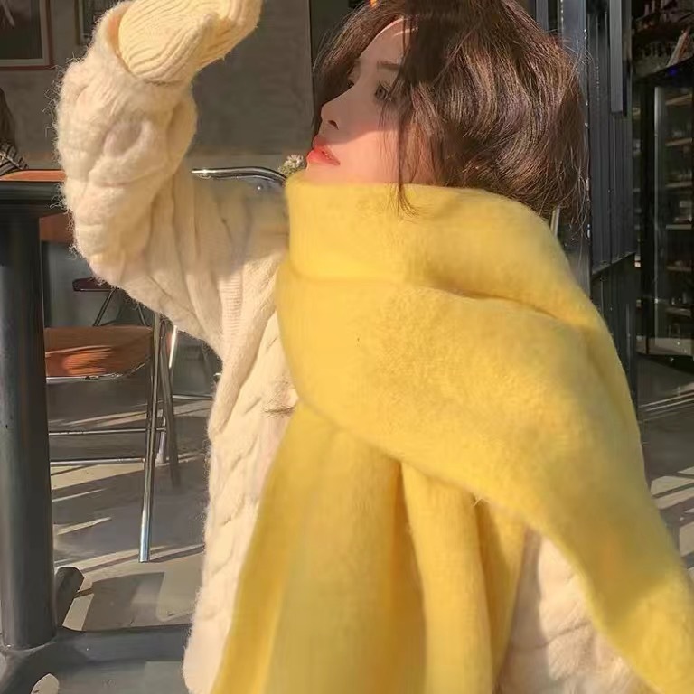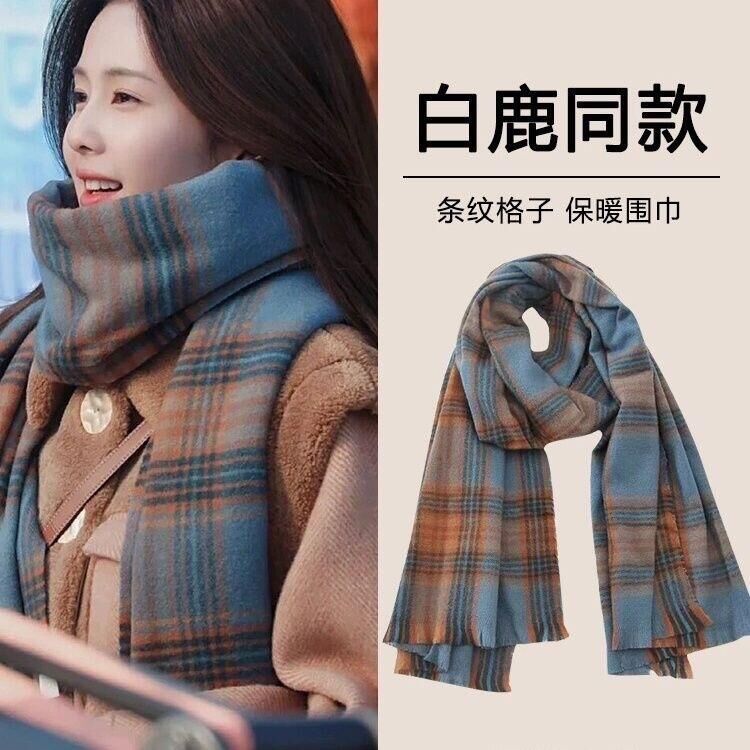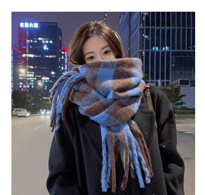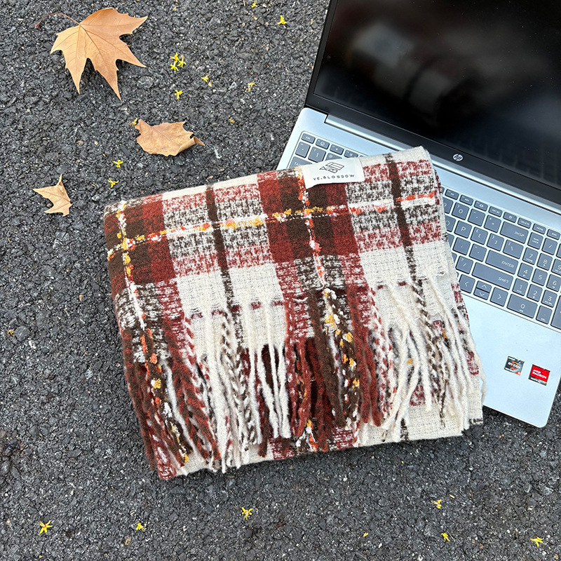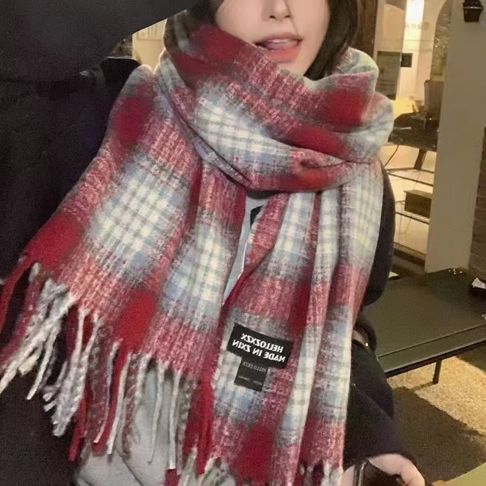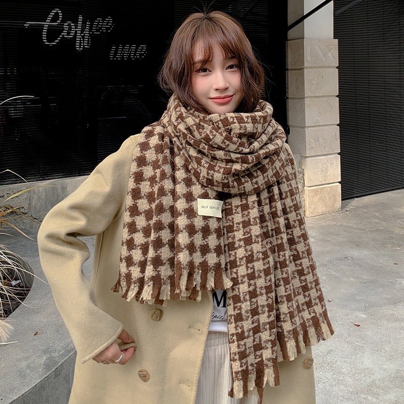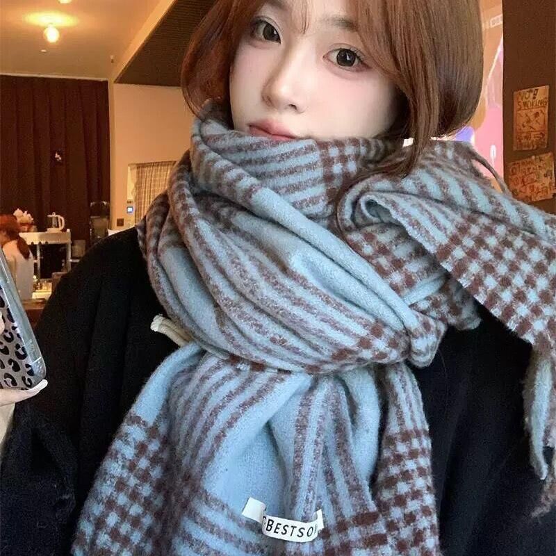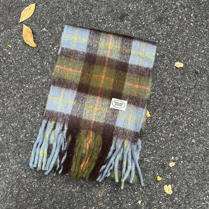 한국식 신형 마우헤어 스카프 겨울 여자 하이 엔드 체크 무늬 캐시미어 스카프 학생 올매치 목도리 스카프스토어 가기