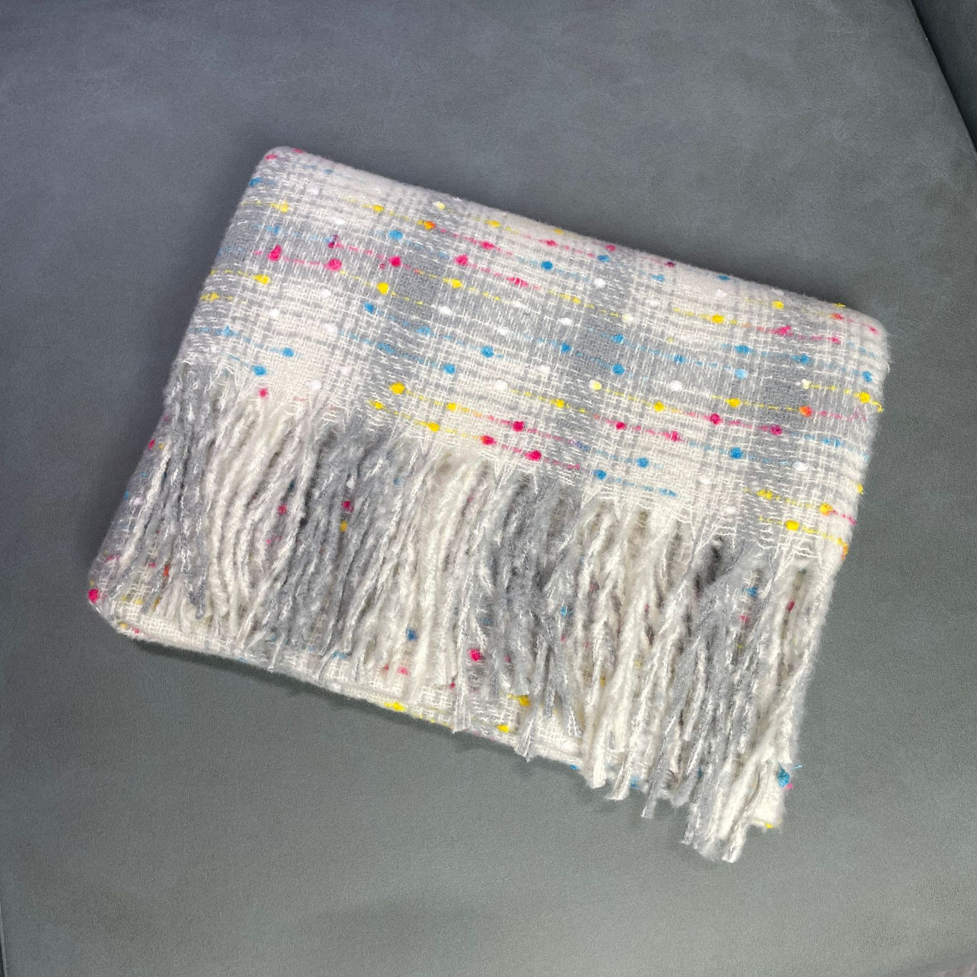 • 모하이 스티치 체크 무늬 그레이 브라운