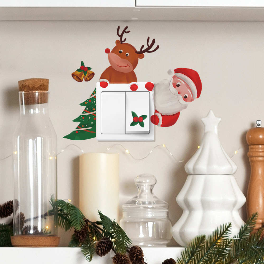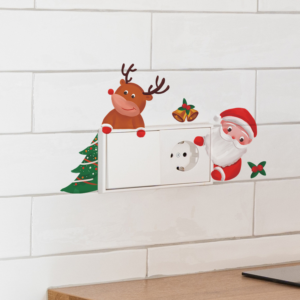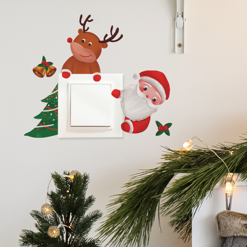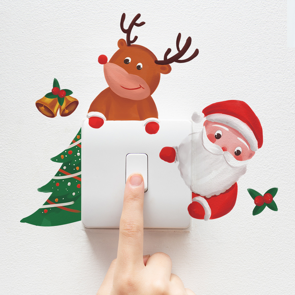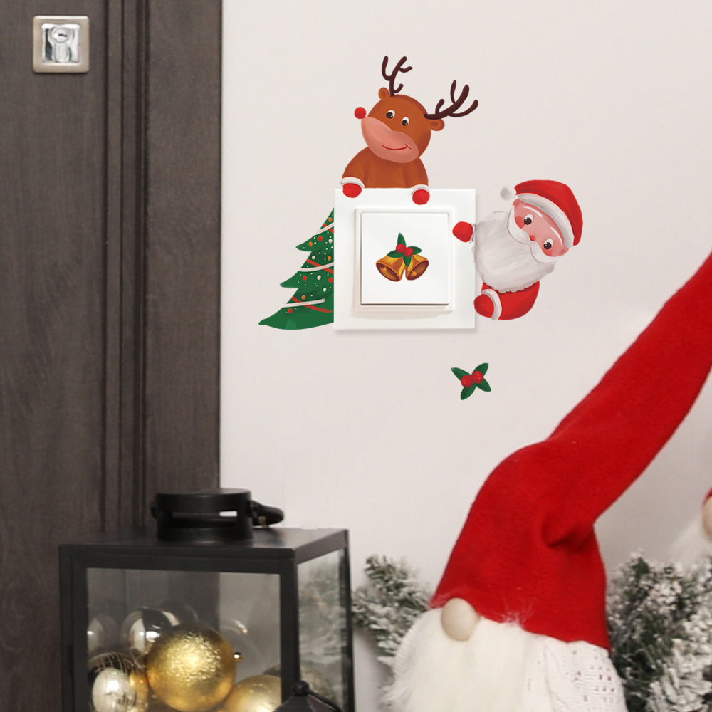 Fun-kg87 만화 크리스마스 난쟁이 나무 벨 거실 현관 홈 미화 스위치 스티커 벽 스티커 도매