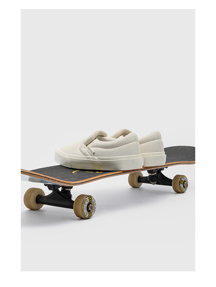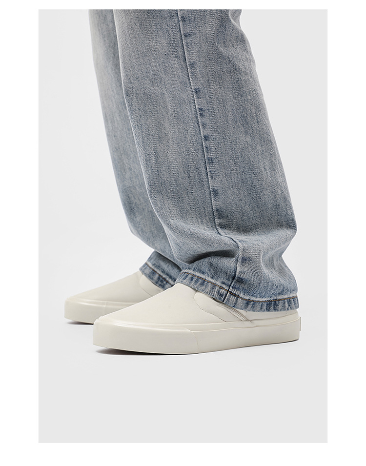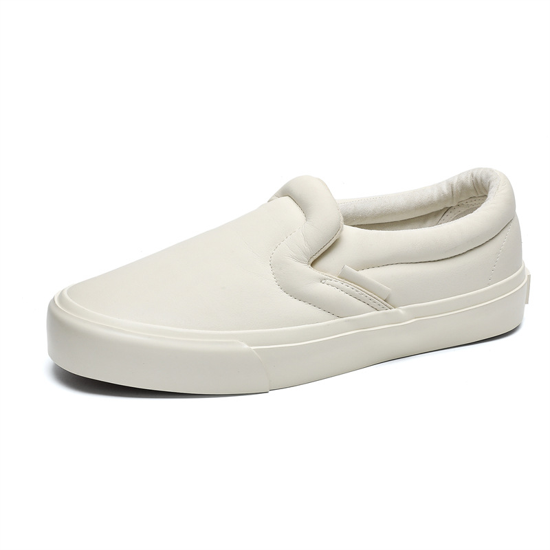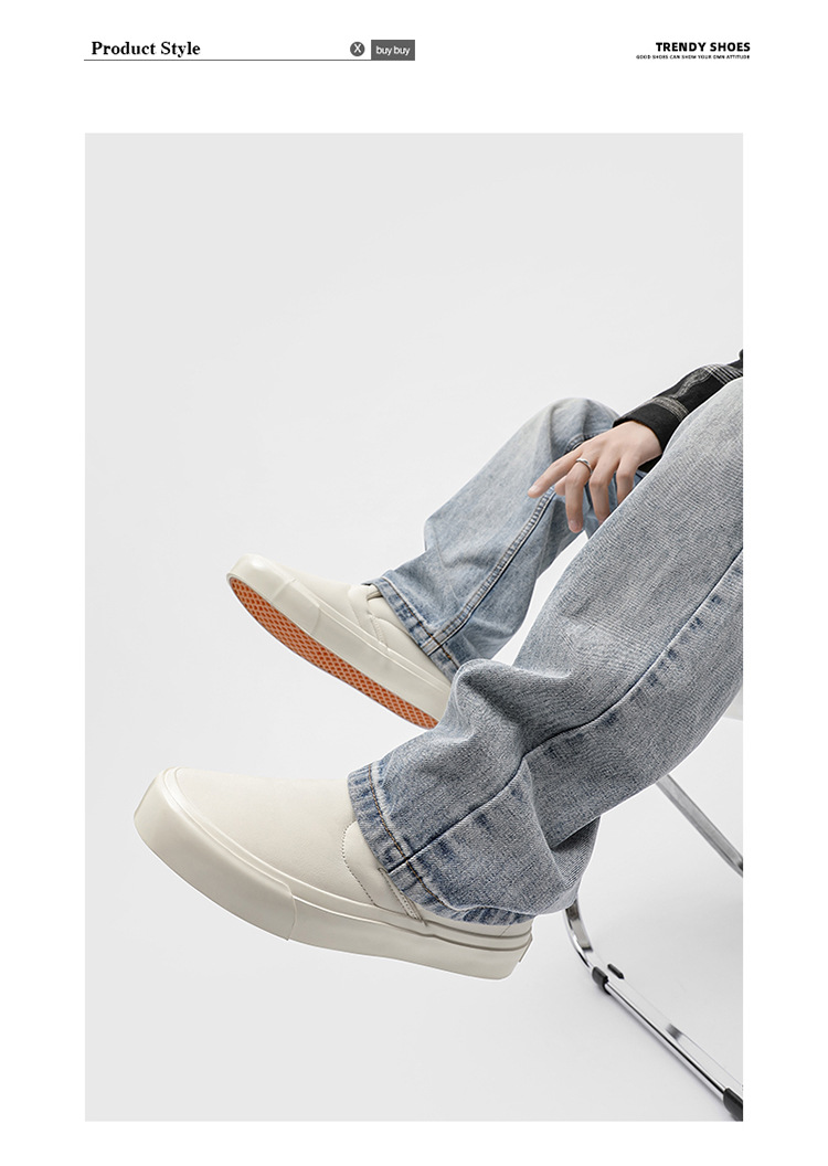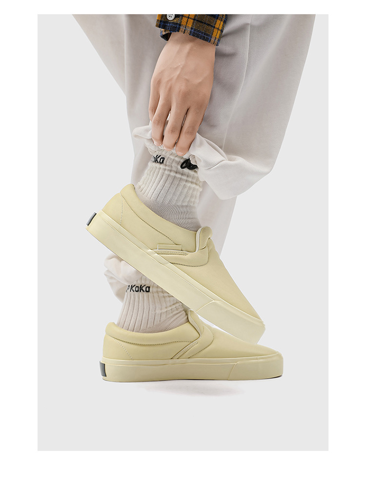 봄과 가을 캐주얼 남성 슬립 온 스니커즈 홍콩 스타일 유행 흰색 신발 학생들을위한 야외 게으른 신발