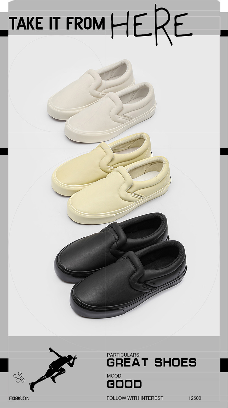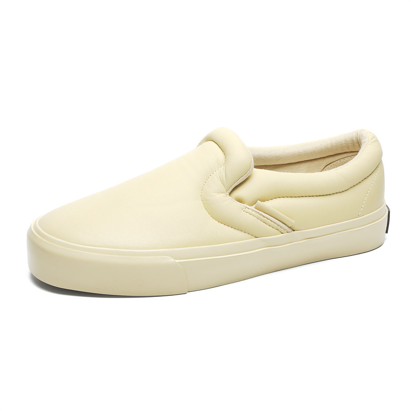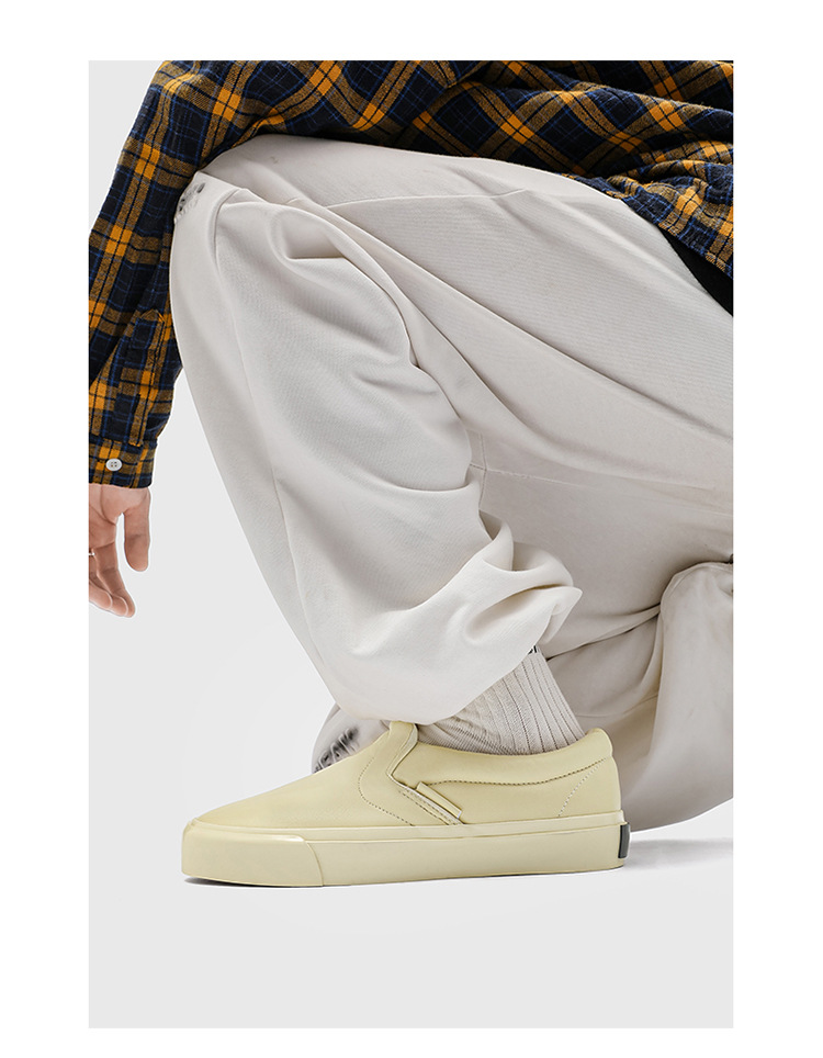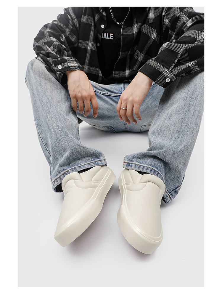 봄과 가을 캐주얼 남성 슬립 온 스니커즈 홍콩 스타일 유행 흰색 신발 학생들을위한 야외 게으른 신발