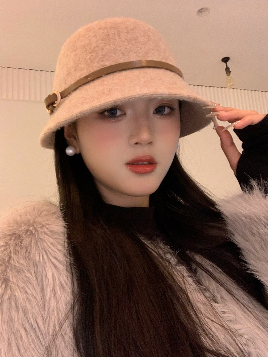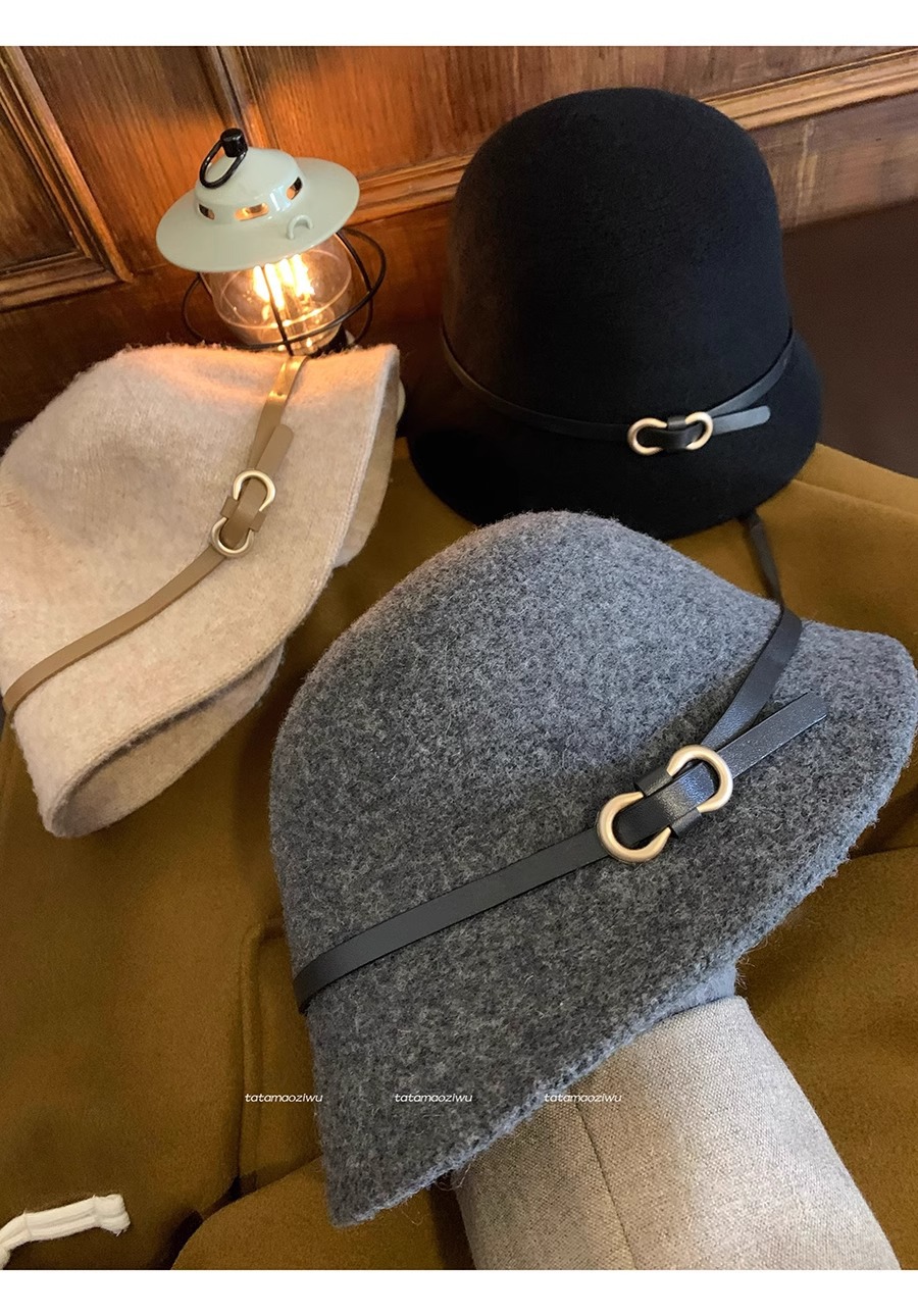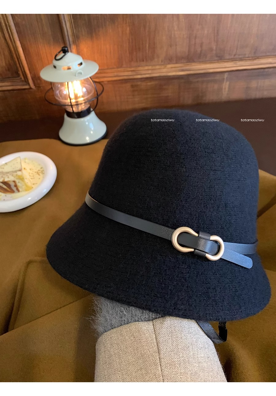 벨트 버클 울 해외 딸 모자 프랑스 모자 여성 가을과 겨울 어부 모자 분지 모자 헵번 부자 딸 모자스토어 가기