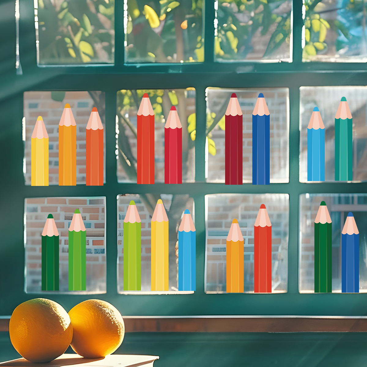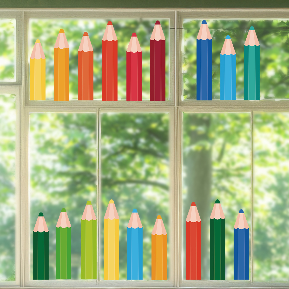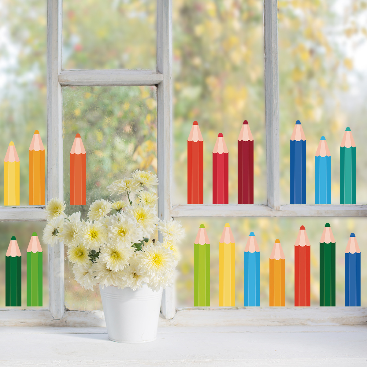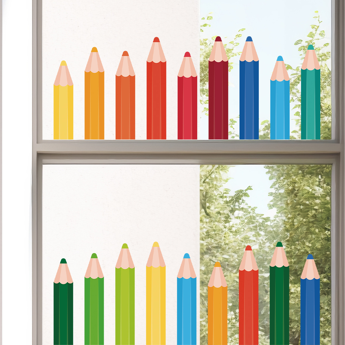 BR0918C BR3821C 만화 컬러 크레용 자체 접착 창 스티커 아트 스튜디오 룸 도어 및 창 장식 스티커스토어 가기