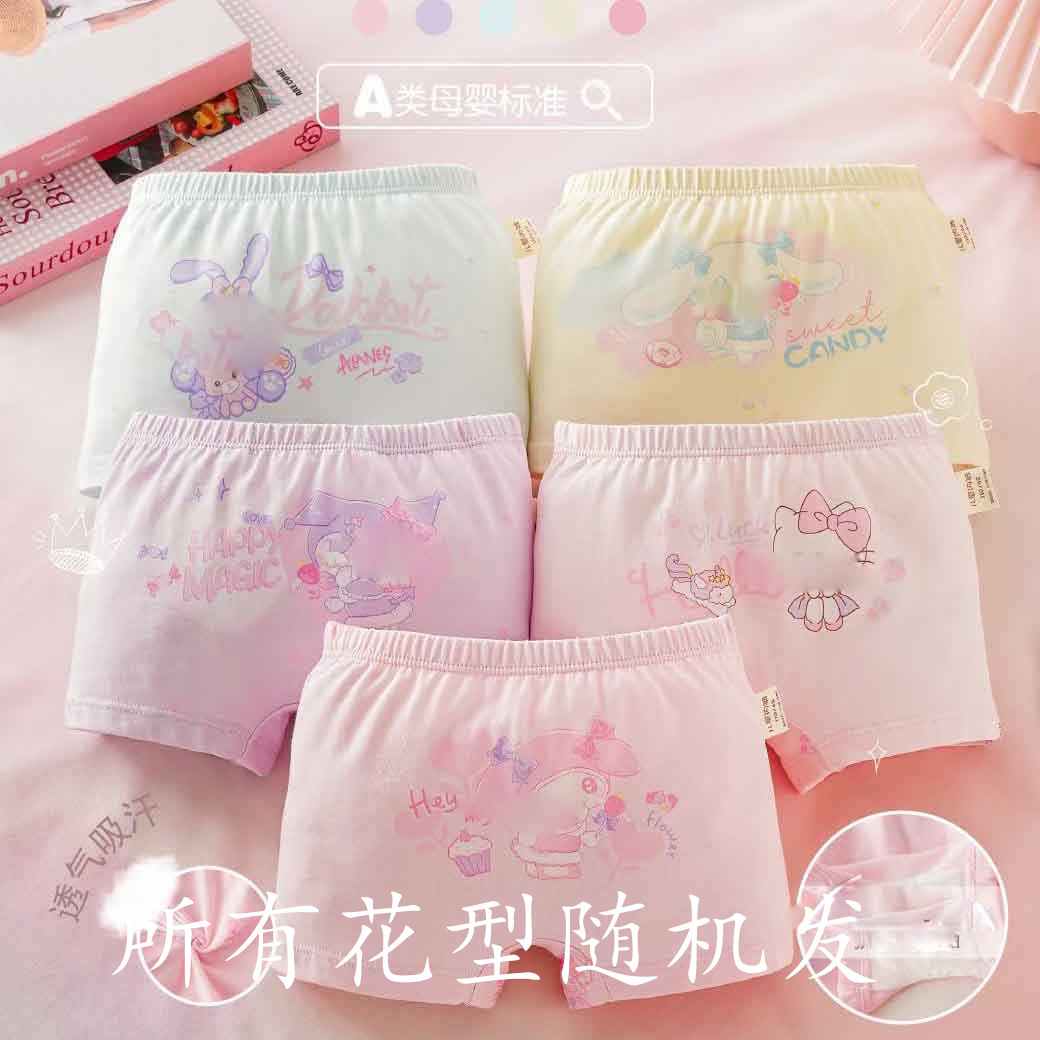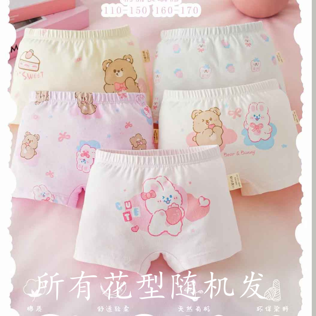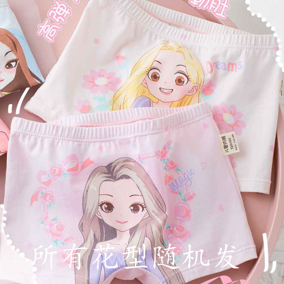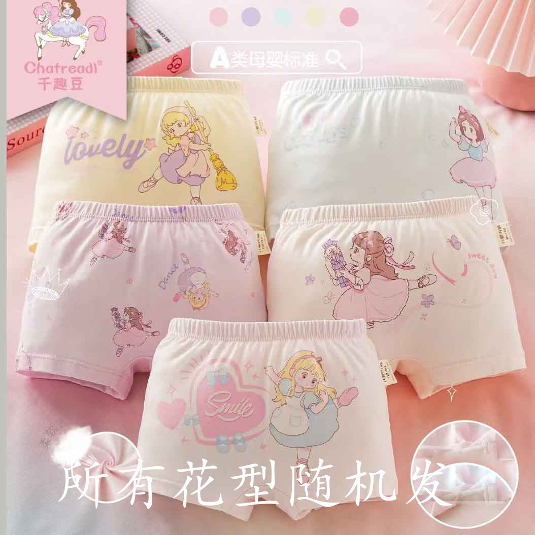 Qianqu Bean Pure Cotton Girls 속옷 만화 어린이 복서 속옷 클래스 코튼 베이비 걸스 반바지 복서 바지 판지스토어 가기