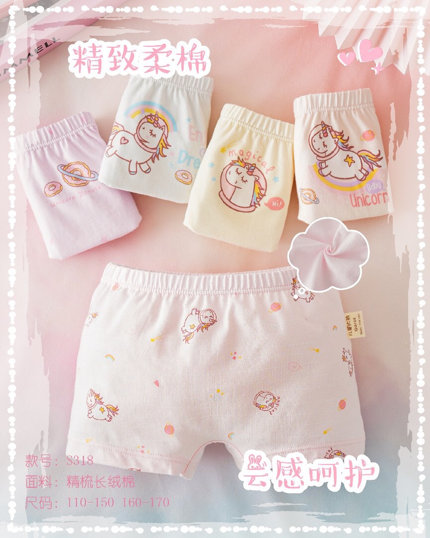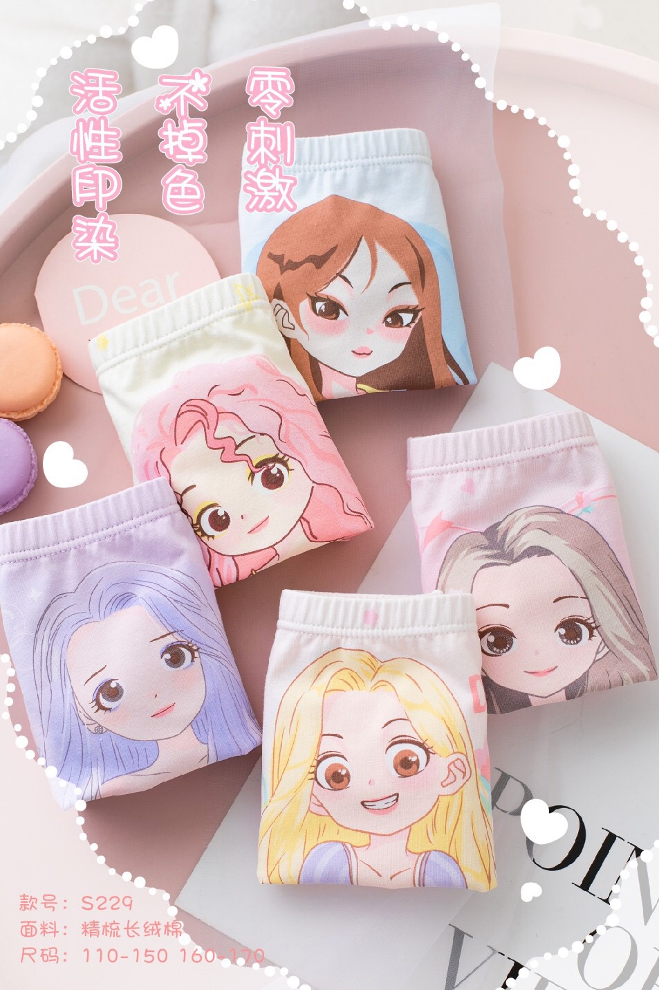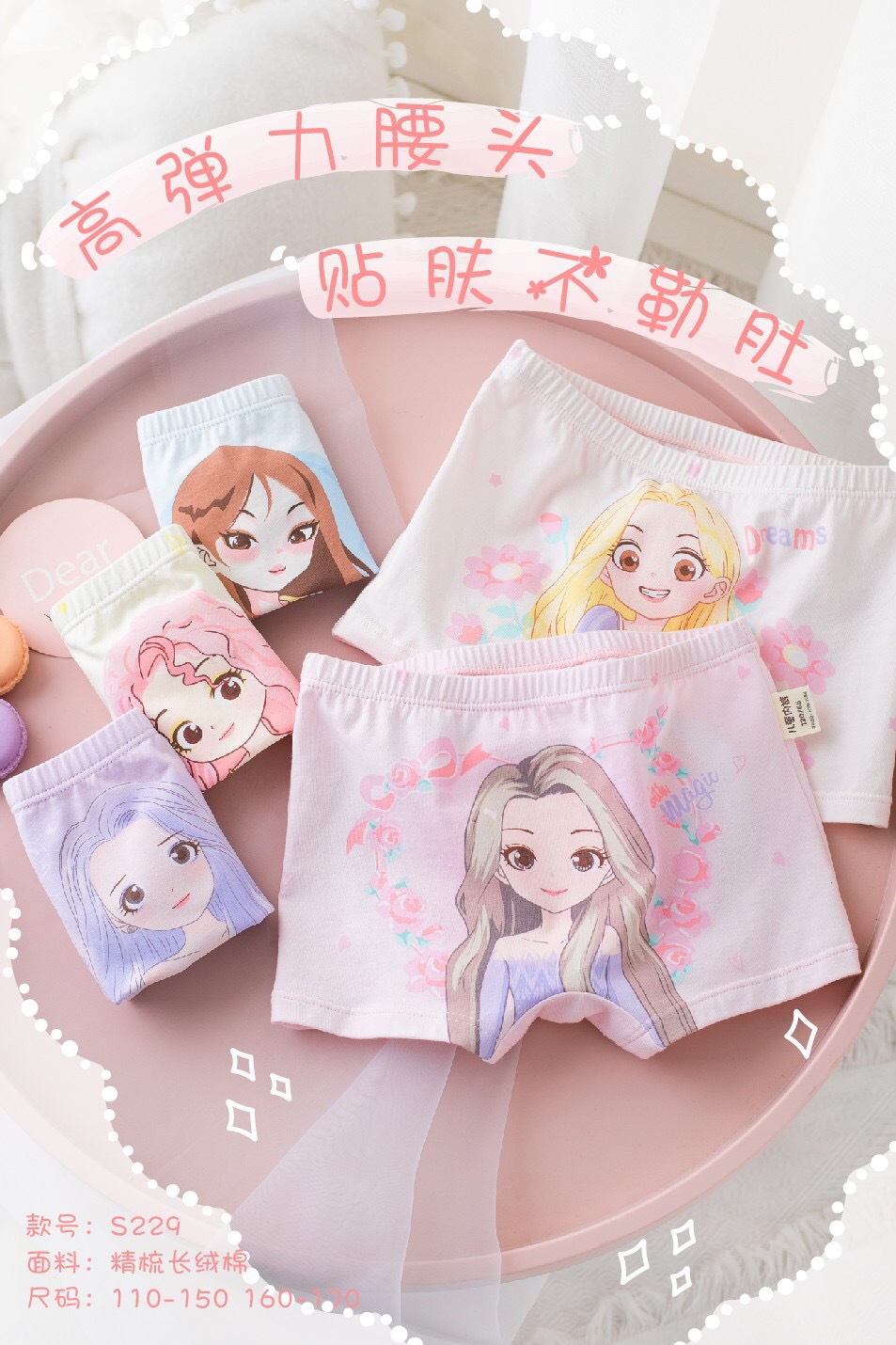 Qianqu Bean Pure Cotton Girls 속옷 만화 어린이 복서 속옷 클래스 코튼 베이비 걸스 반바지 복서 바지 판지스토어 가기