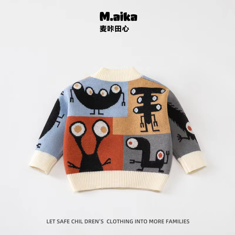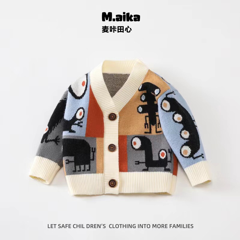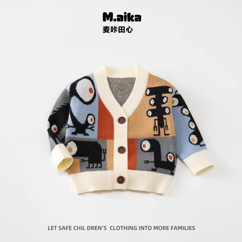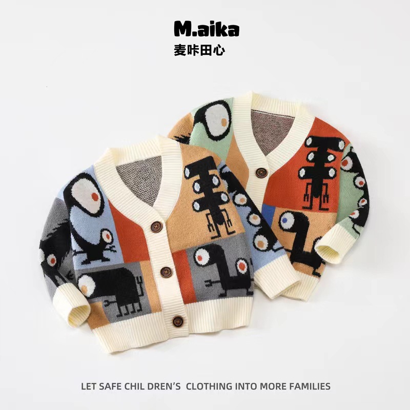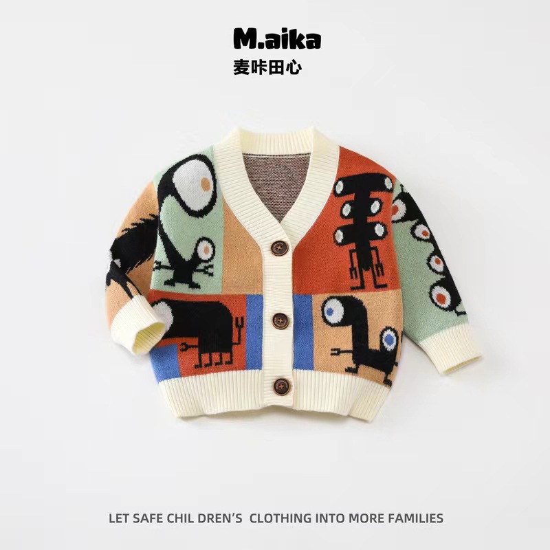 58909 어린이 가을과 겨울 새로운 아기의 니트 카디건 재킷 만화 웃긴 자카드 패션 재킷 탑스토어 가기