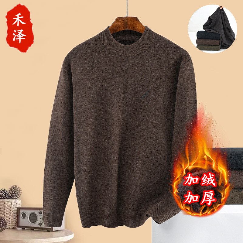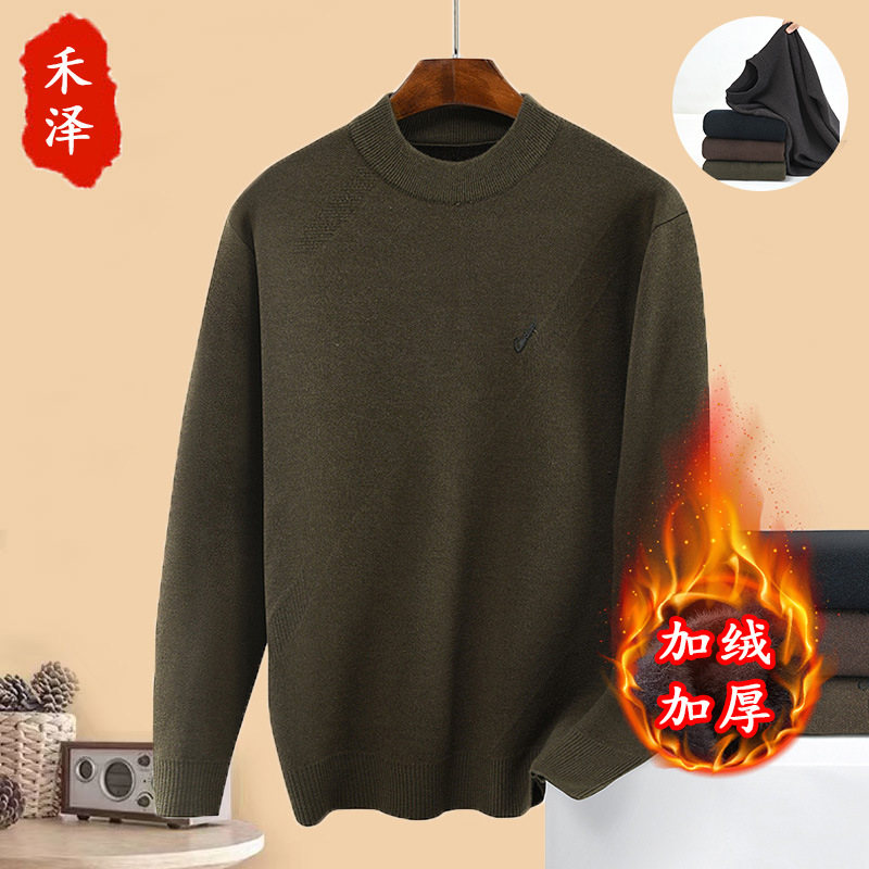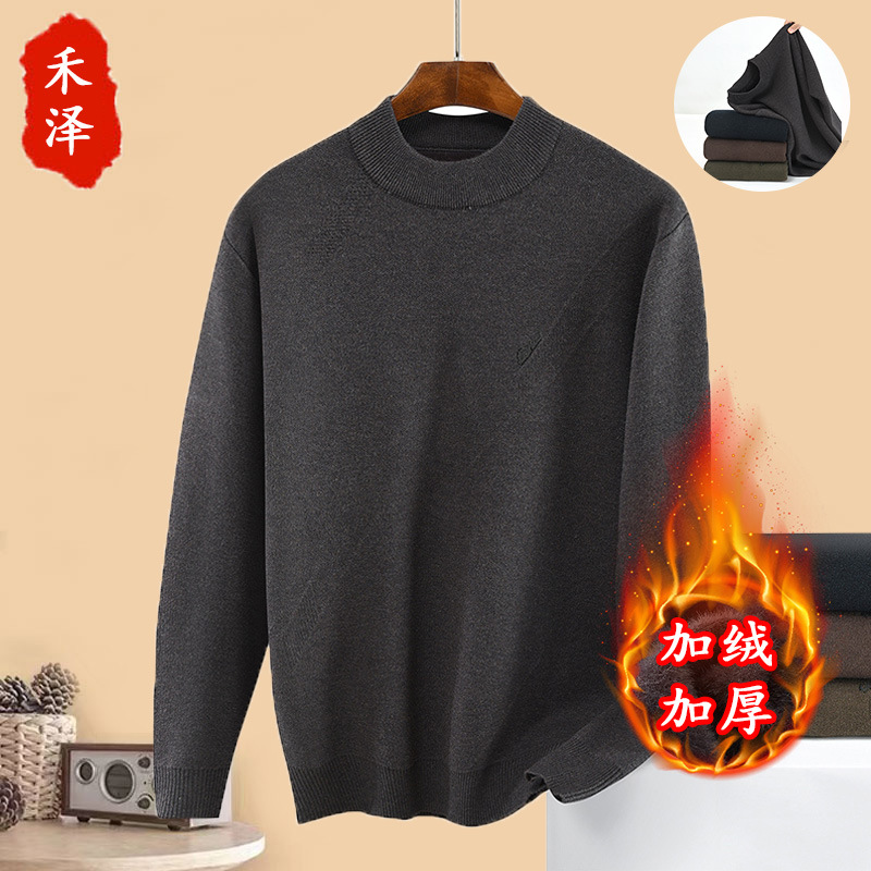 겨울 기모 두꺼운 따뜻한 아빠의 중년 풀오버 스웨터 남자 중년 니트 베이스 셔츠 탑스토어 가기