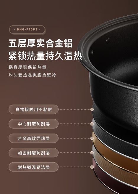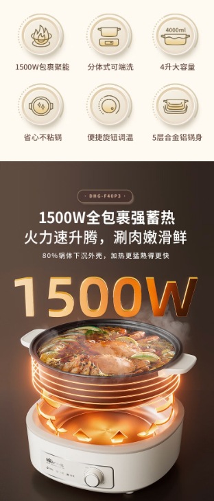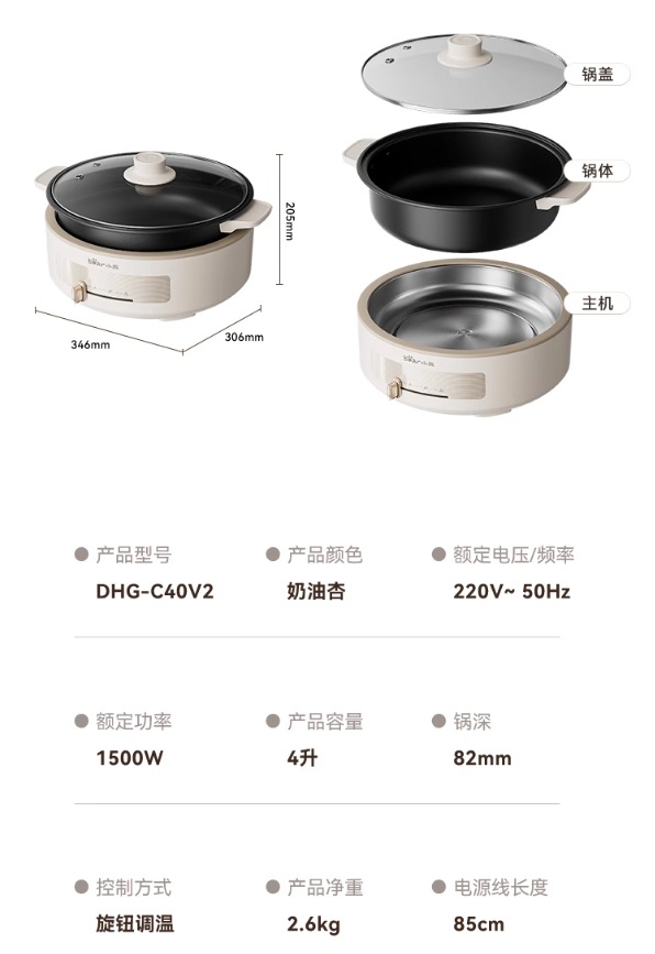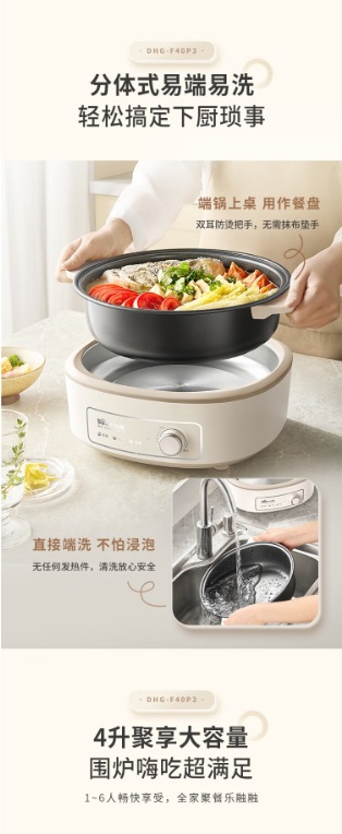 곰 전기 뜨거운 냄비 4L 가정용 전기 냄비 통합 다기능 냄비 분할 전기 냄비 DHG-F40P3