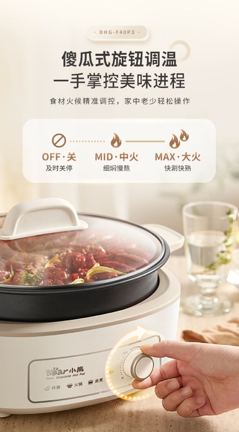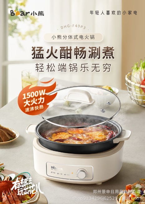 곰 전기 뜨거운 냄비 4L 가정용 전기 냄비 통합 다기능 냄비 분할 전기 냄비 DHG-F40P3스토어 가기