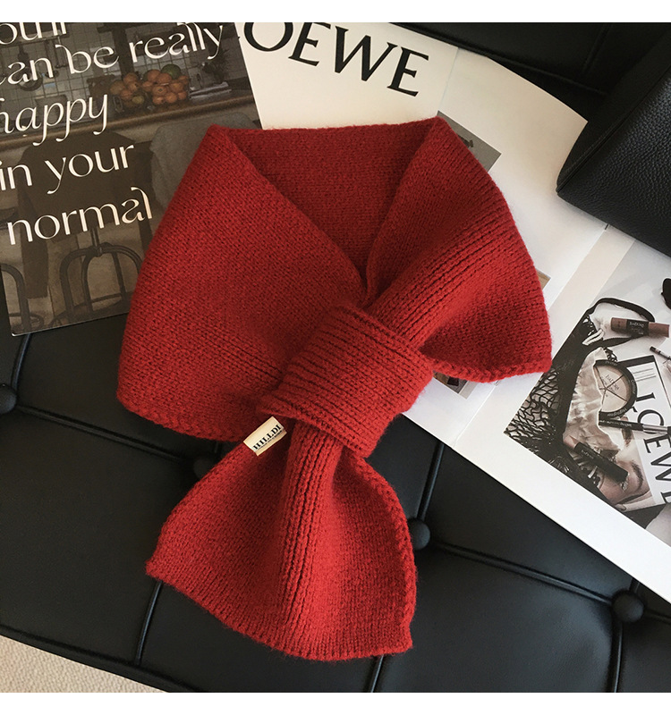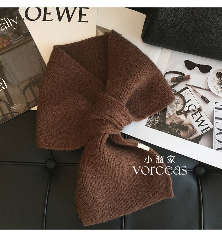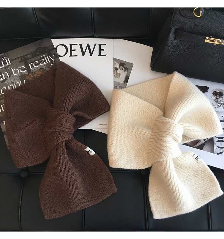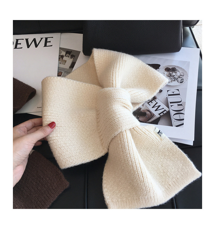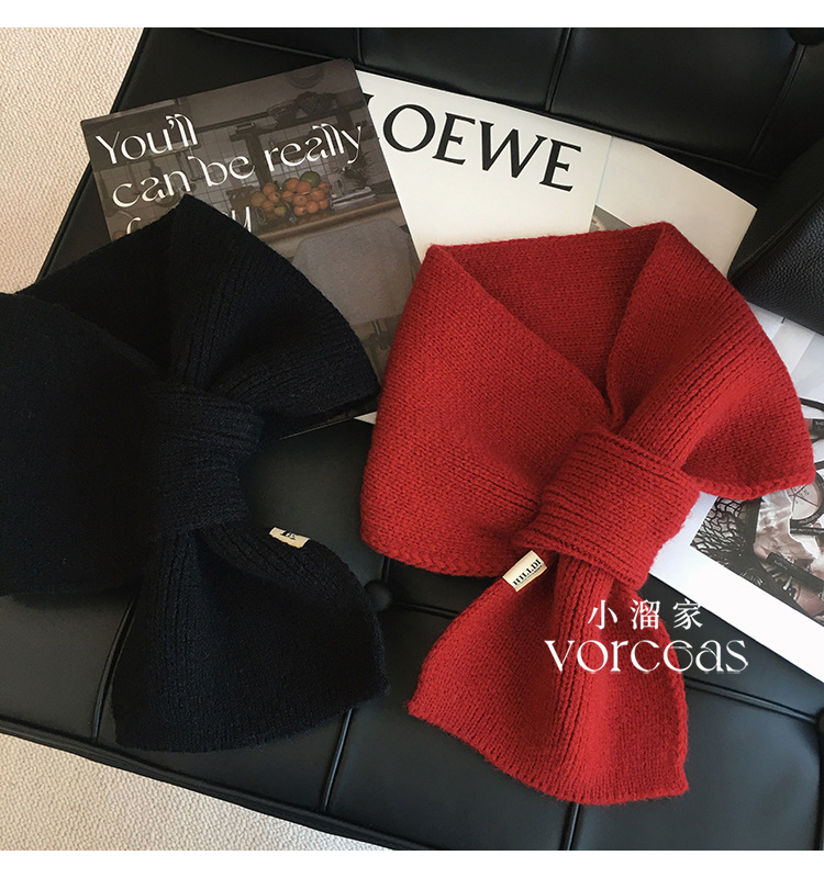 韩版百搭甜美蝴蝶结毛线针织围巾女冬季户外保暖装饰学生交叉围脖
