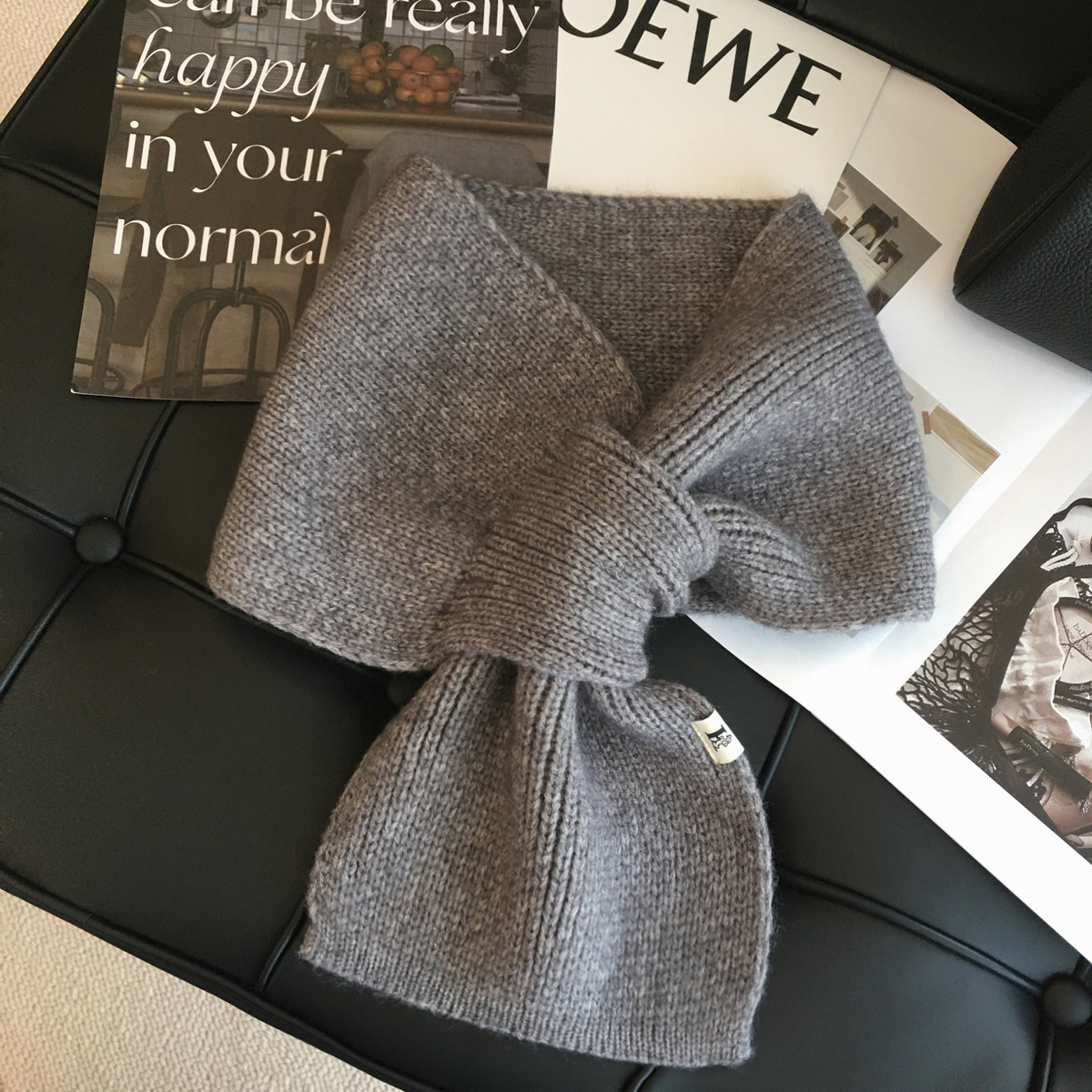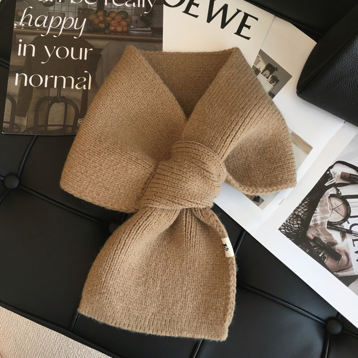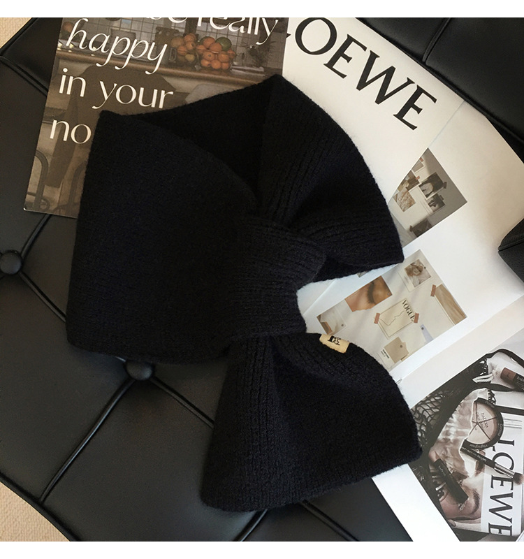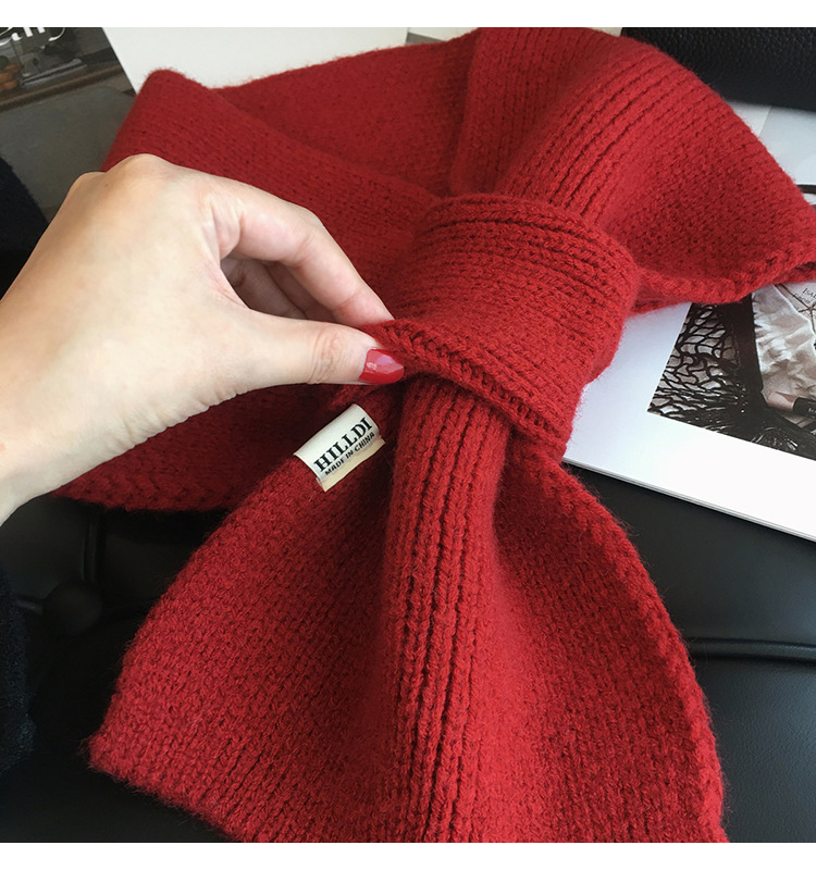 韩版百搭甜美蝴蝶结毛线针织围巾女冬季户外保暖装饰学生交叉围脖
