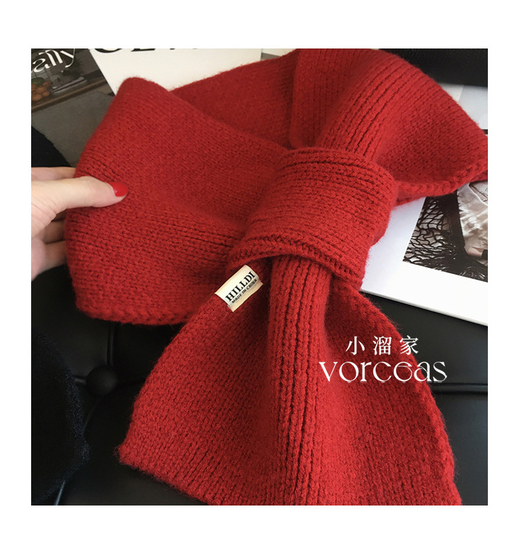 한국 버전의 단색 조커 달콤한 나비 울 니트 스카프 남성과 여성 겨울 따뜻한 학생 크로스 스카프 도매스토어 가기
