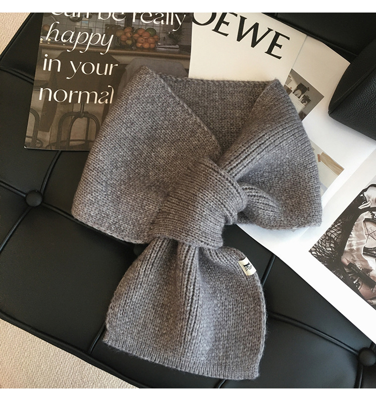 한국 버전의 단색 조커 달콤한 나비 울 니트 스카프 남성과 여성 겨울 따뜻한 학생 크로스 스카프 도매