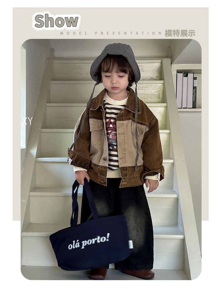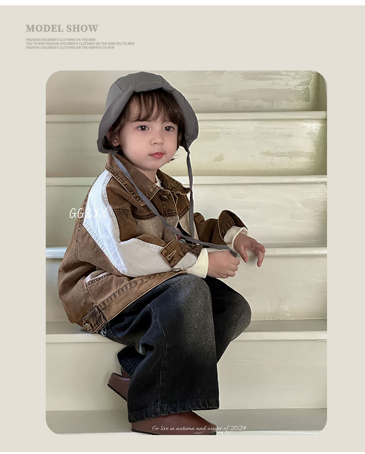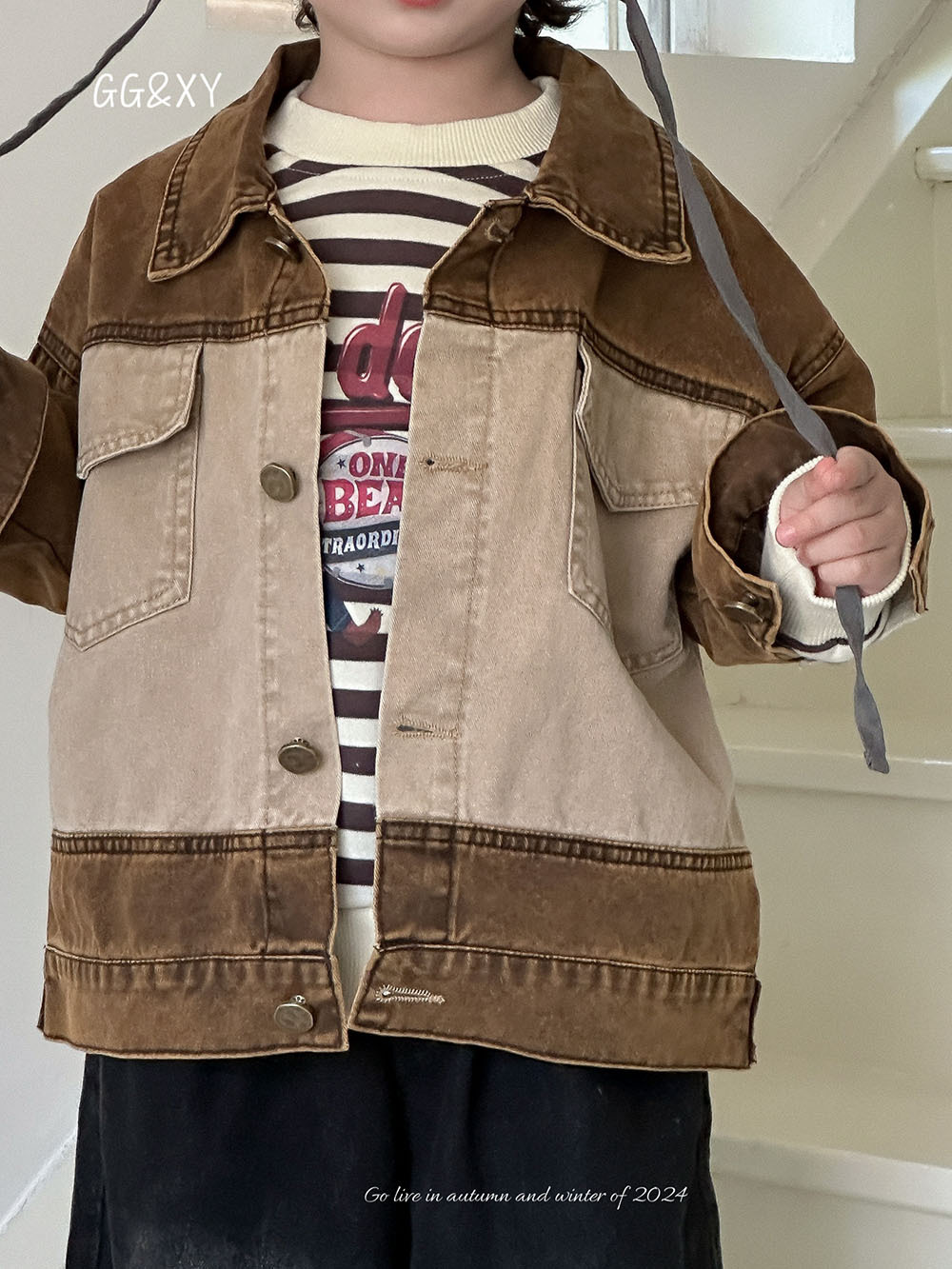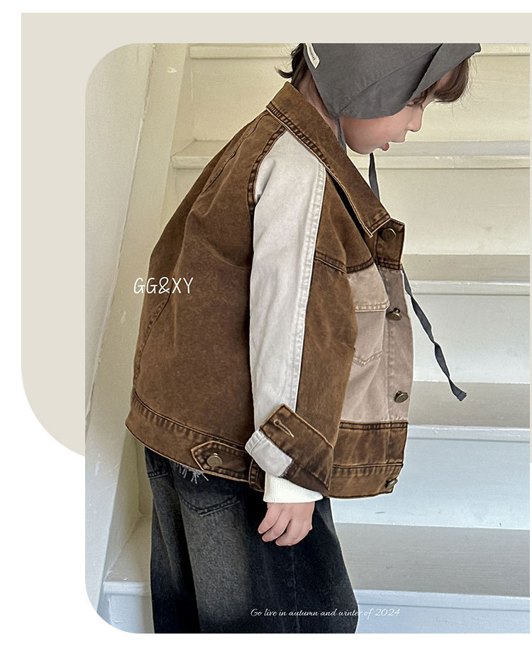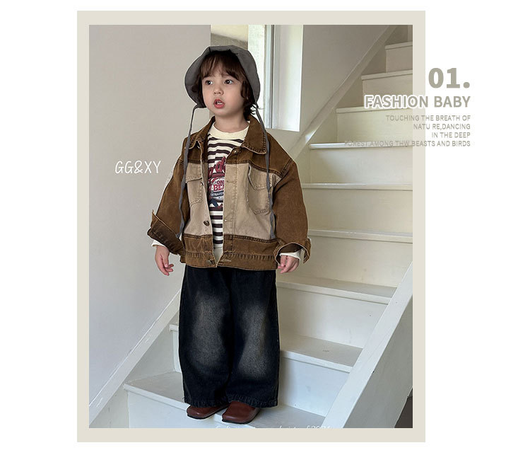 24202 어린이 가을 새로운 컬러 블록 모래 세척 데님 코트 소년 소녀 캐주얼 데님 재킷스토어 가기