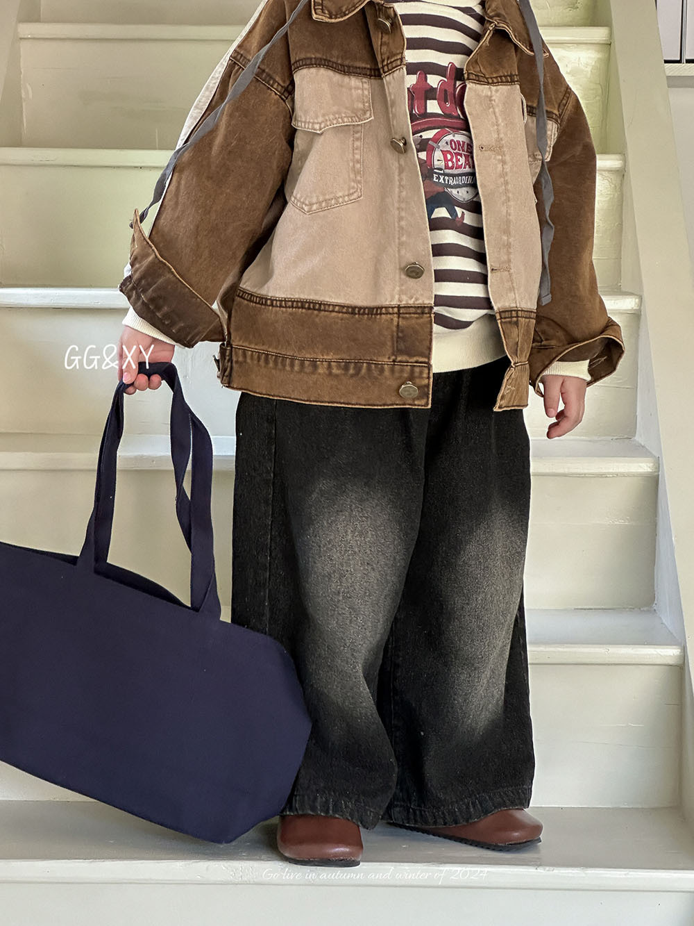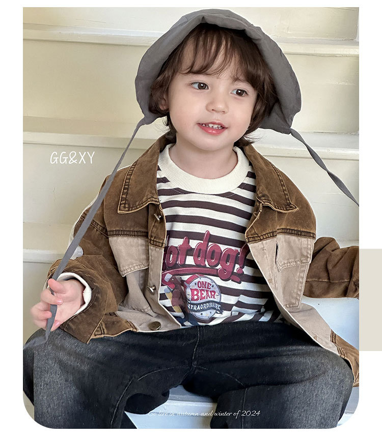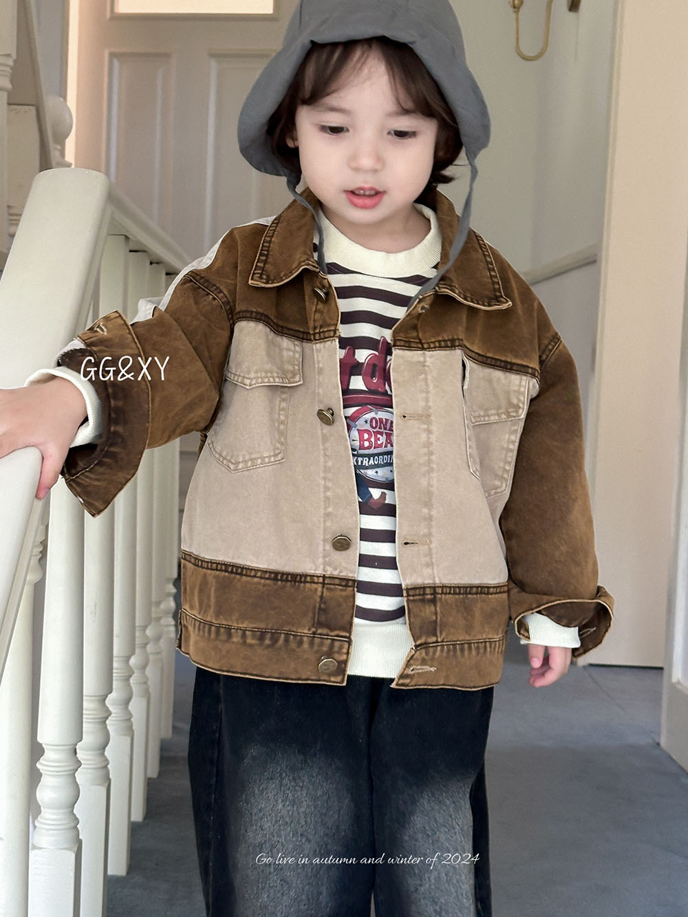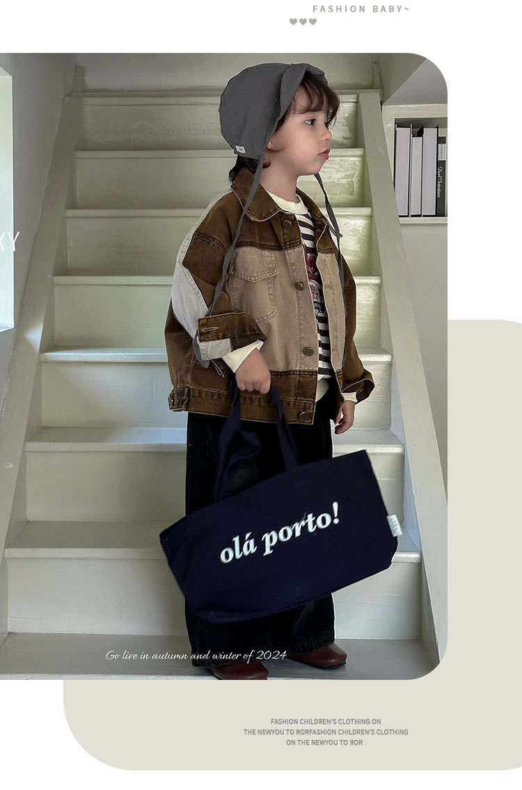 24202 어린이 가을 새로운 컬러 블록 모래 세척 데님 코트 소년 소녀 캐주얼 데님 재킷스토어 가기