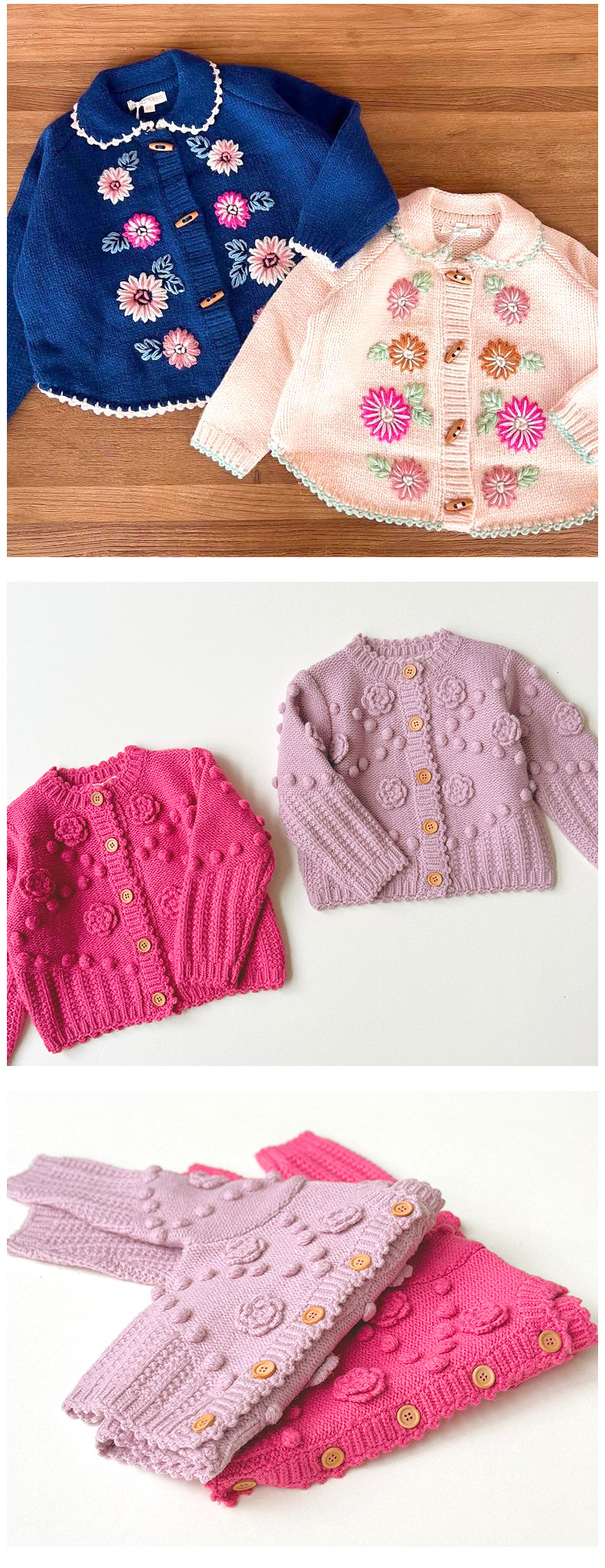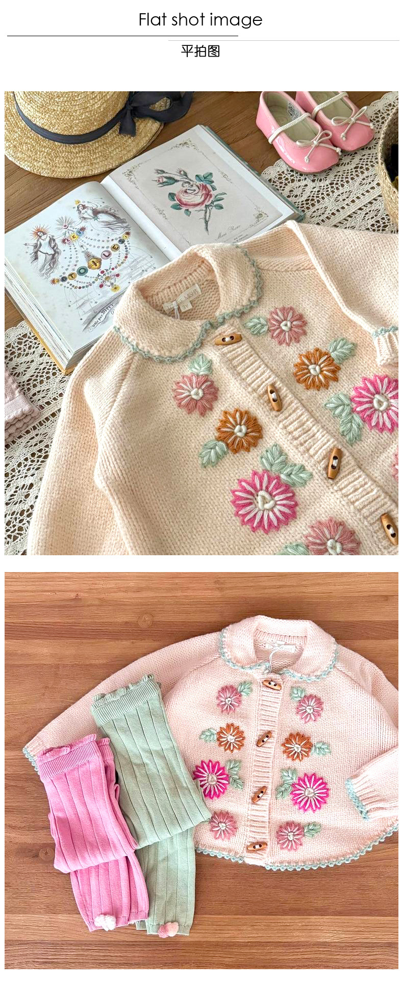 재고 LM 빈티지 자수 소녀 카디건 가을 팝콘 양모 스웨터 자켓 청바지 판초 스웨터스토어 가기