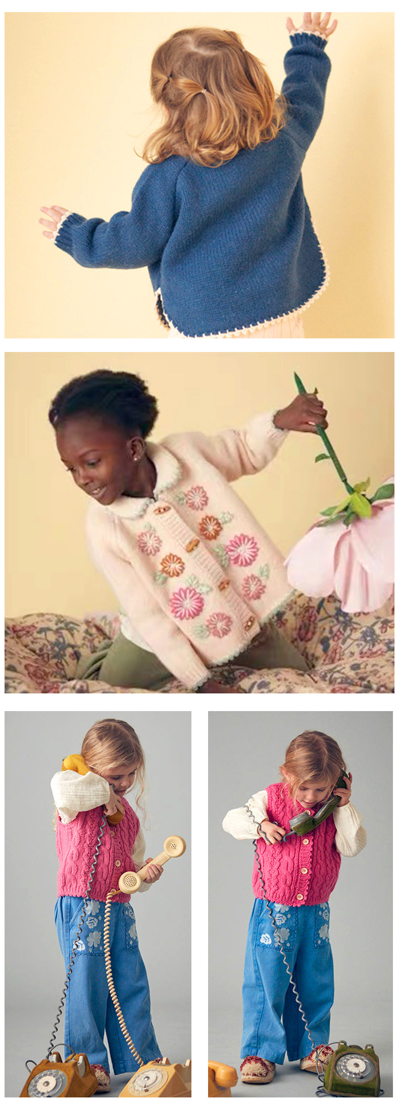 재고 LM 빈티지 자수 소녀 카디건 가을 팝콘 양모 스웨터 자켓 청바지 판초 스웨터