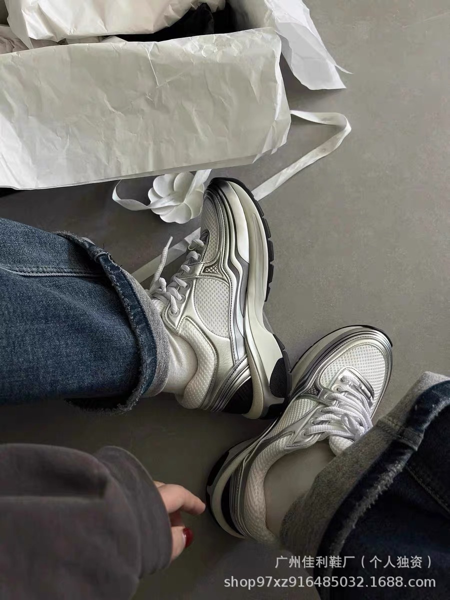하이 버전 실버 코너 킹 2024 새로운 스타일 높이 증가 두꺼운 바닥 캐주얼 컬러 블록 메쉬 운동화 두꺼운 바닥 토레 신발스토어 가기