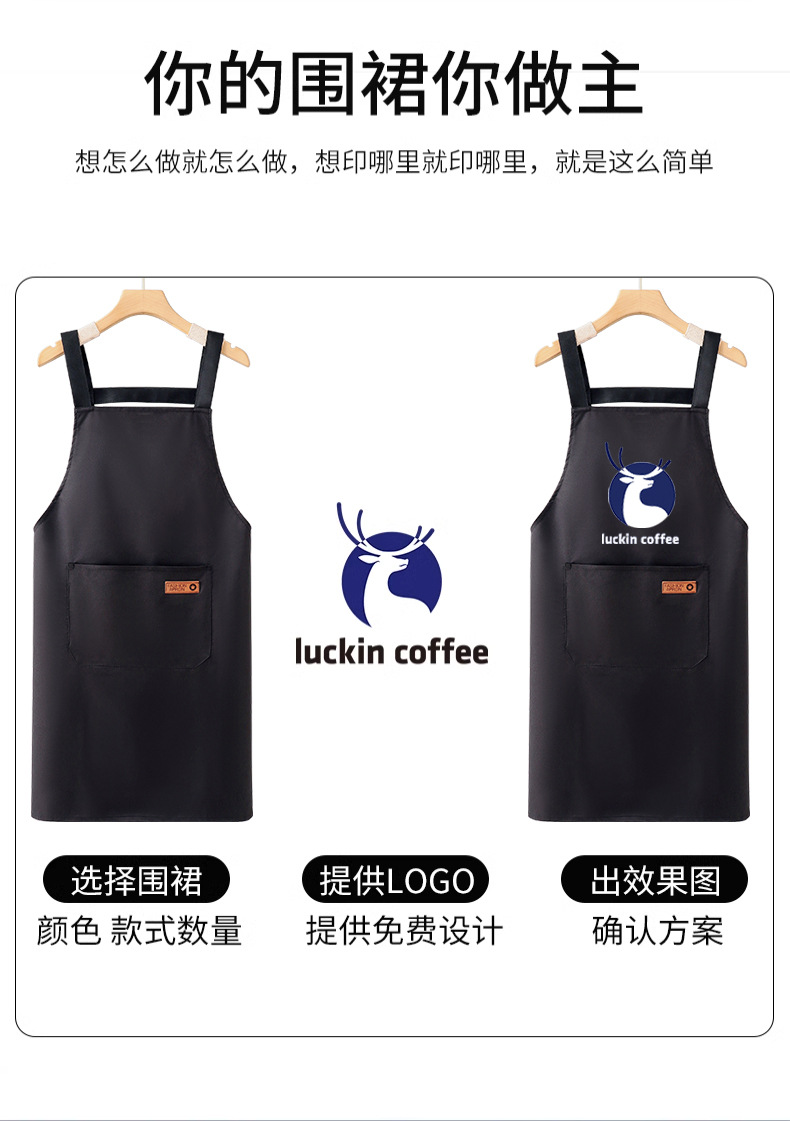 앞치마, 케이터링, 커피숍 작업복, 여름 주방, 한국 스타일 패션 작업복, 방수 및 방유, 심플한 만화 패턴스토어 가기