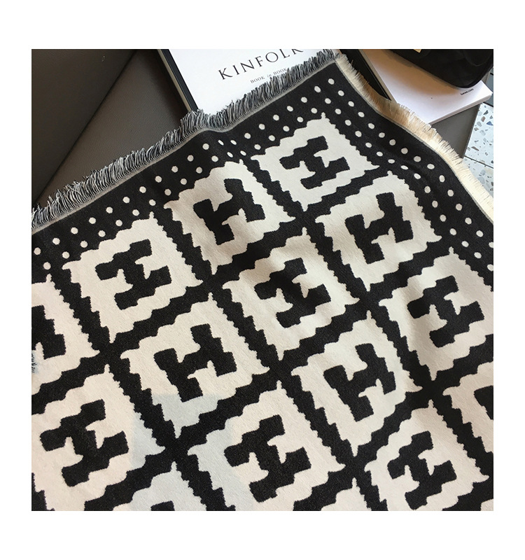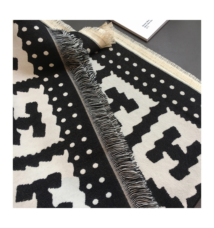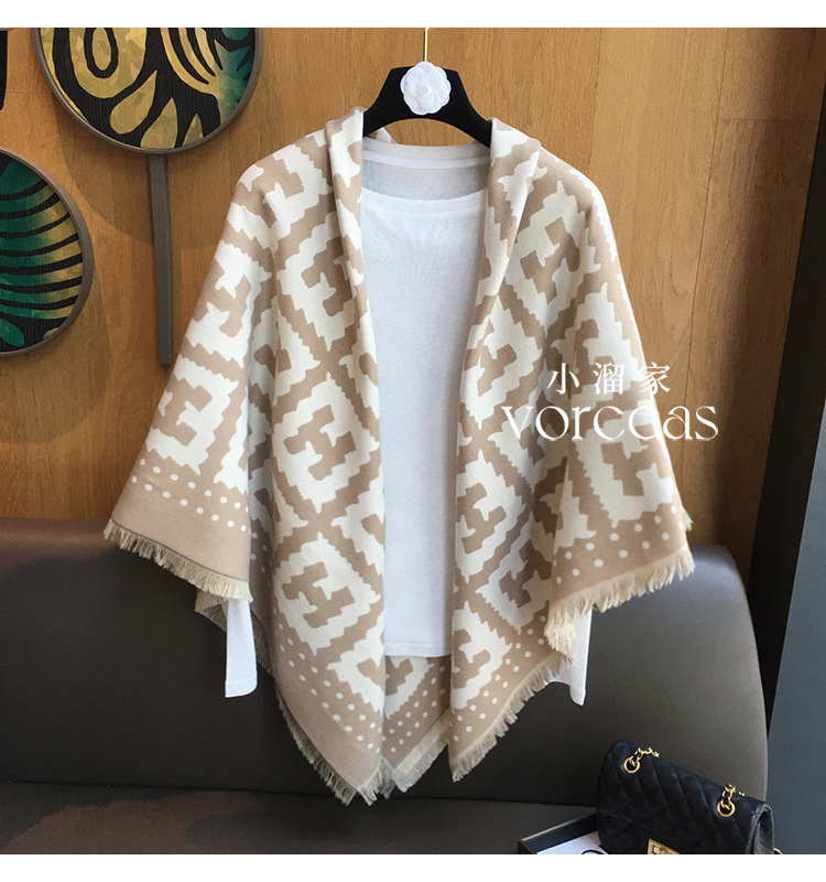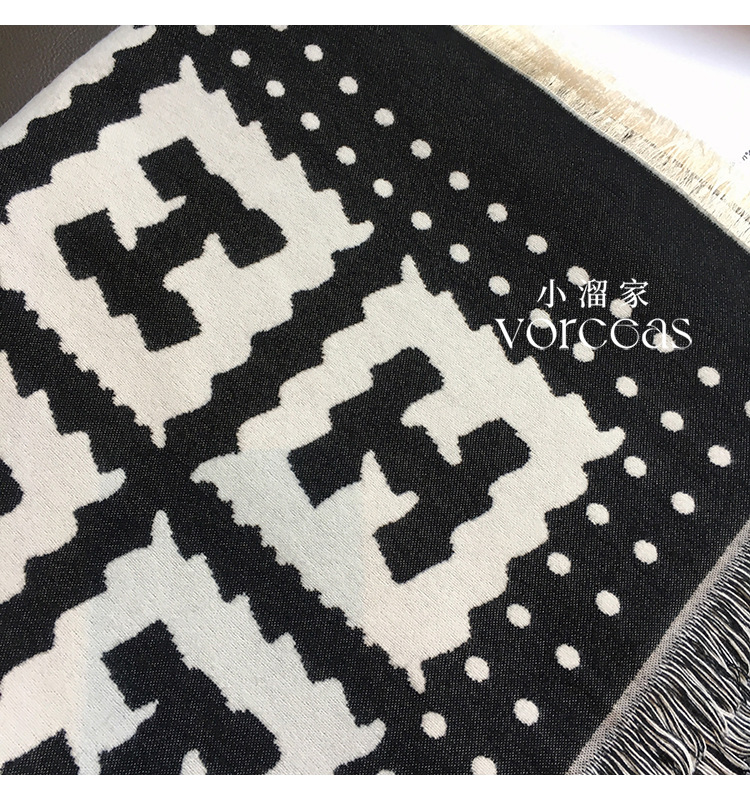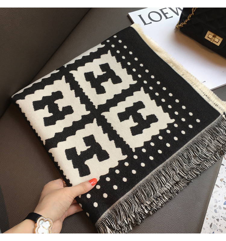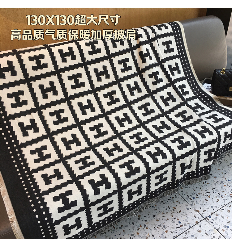 洋气百搭拼色字母加厚保暖披肩外搭两用仿羊绒围巾超大130cm方巾