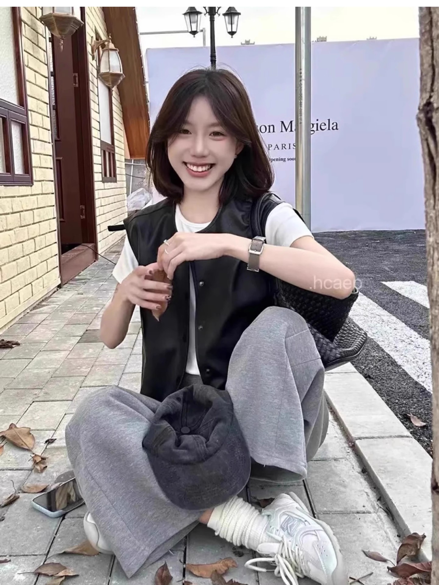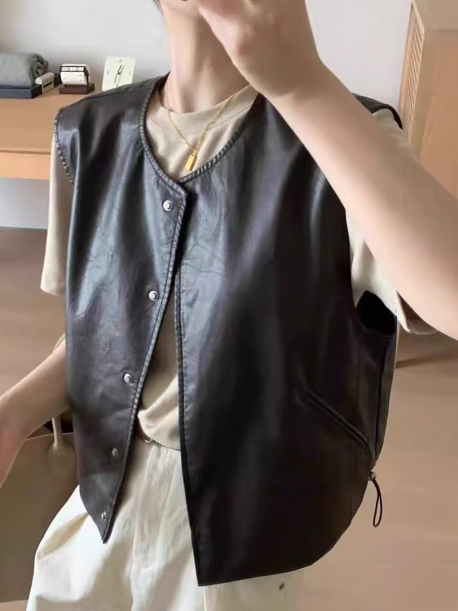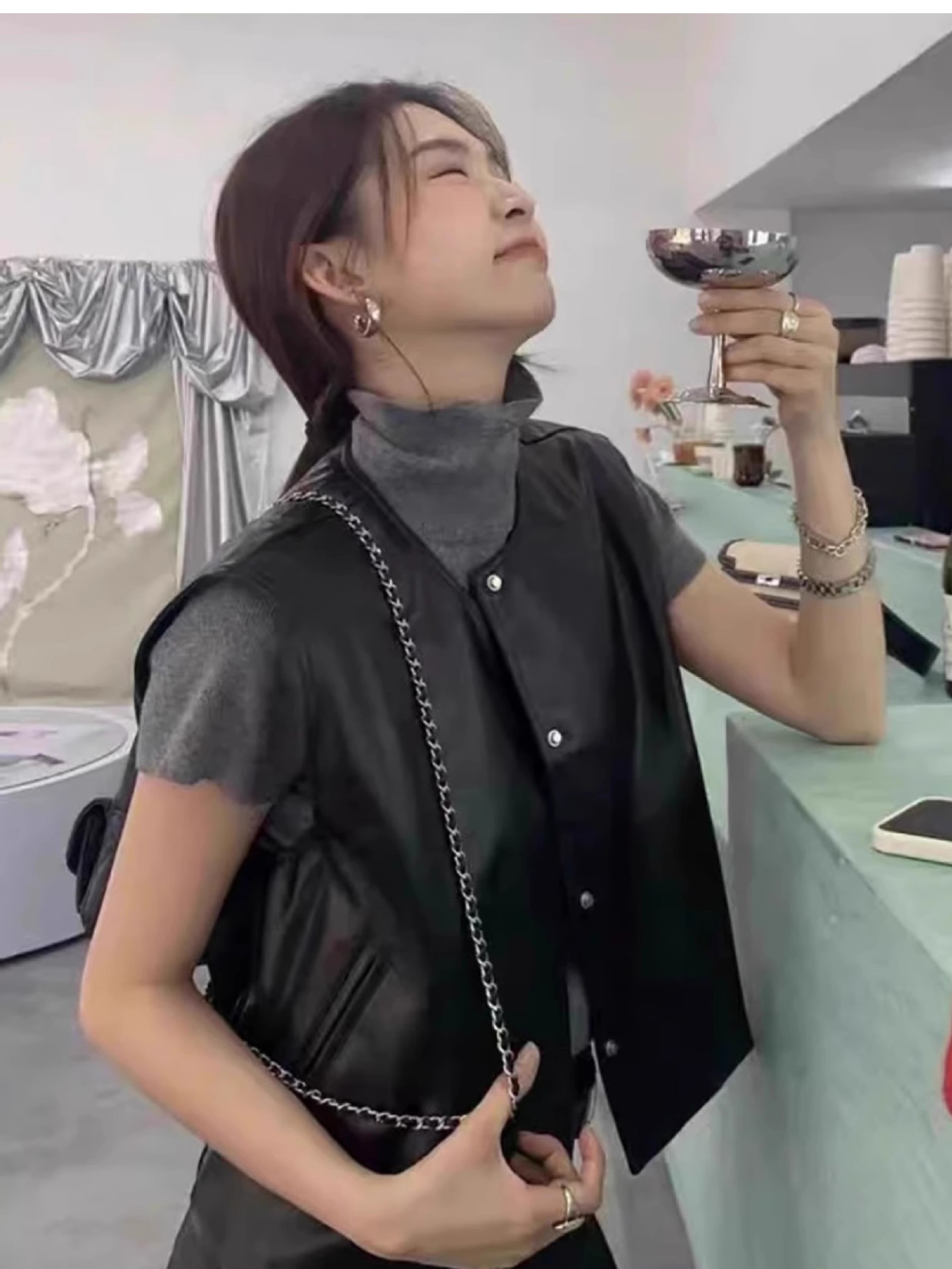 2025 봄 가을 디자인 PU 가죽 조끼 여성용 레트로 캐주얼 루즈핏 다용도 스타일리시 민소매 조끼 재킷스토어 가기