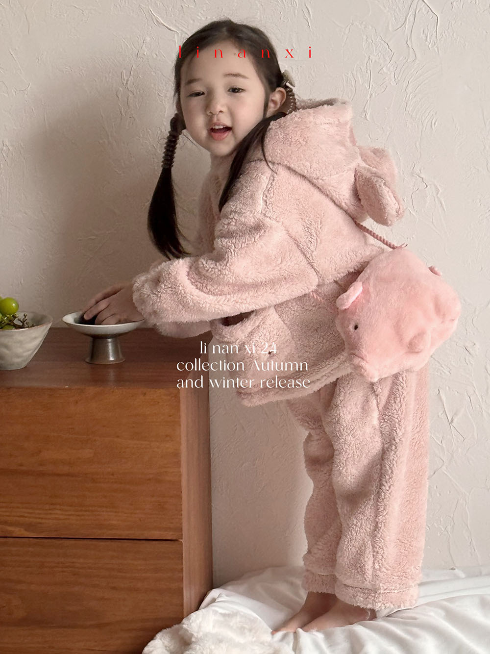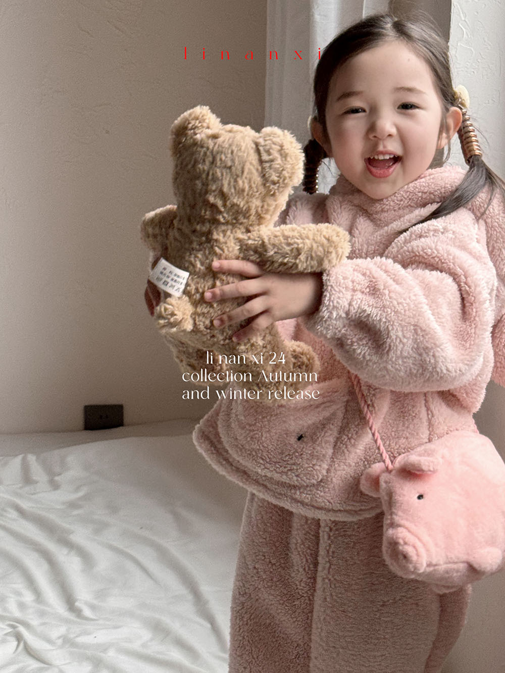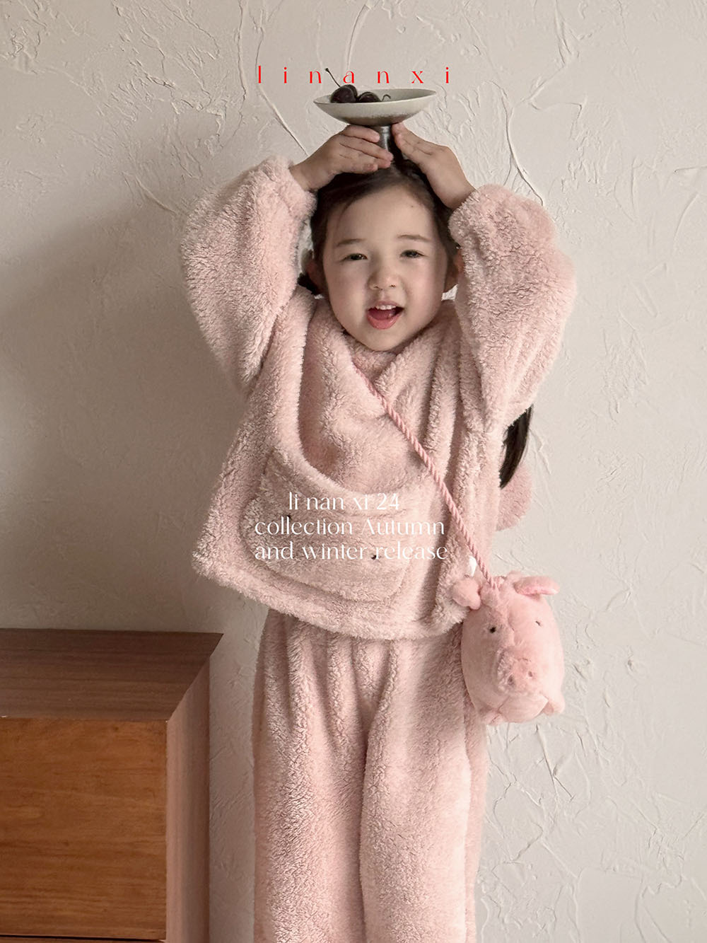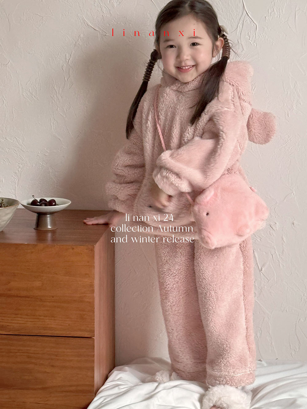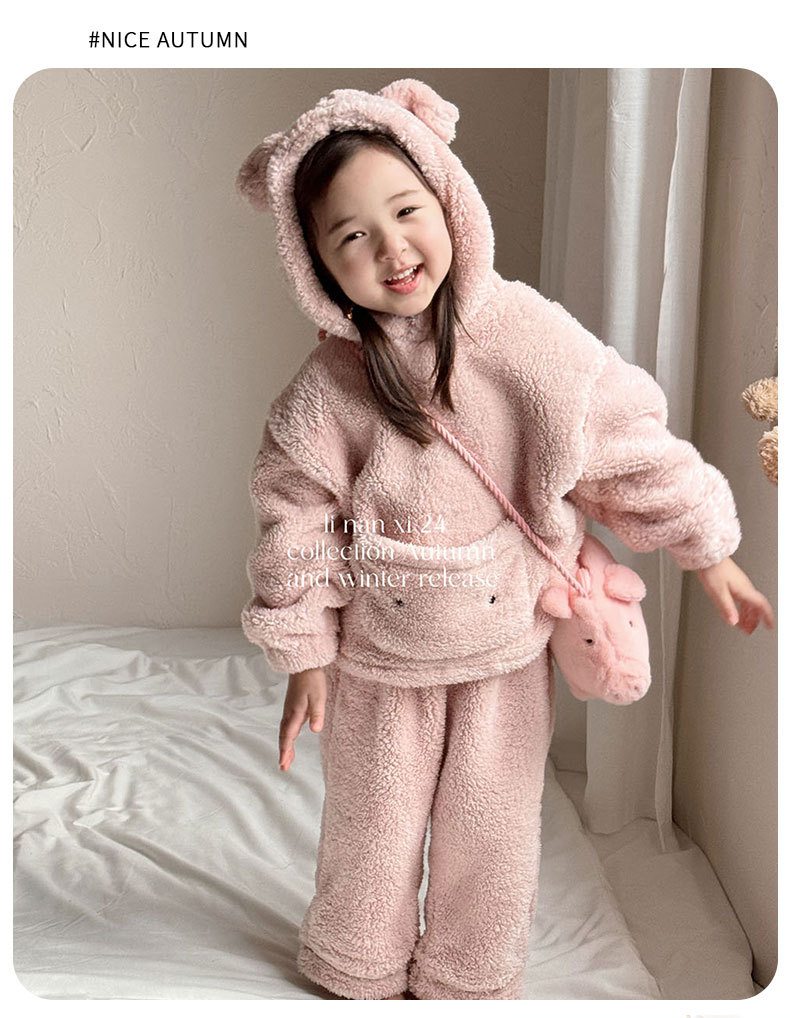 25 아동용 가을 겨울 플러시 홈웨어 돼지 세트+여아용 양면 플러시 만화 잠옷 및 잠옷 바지스토어 가기