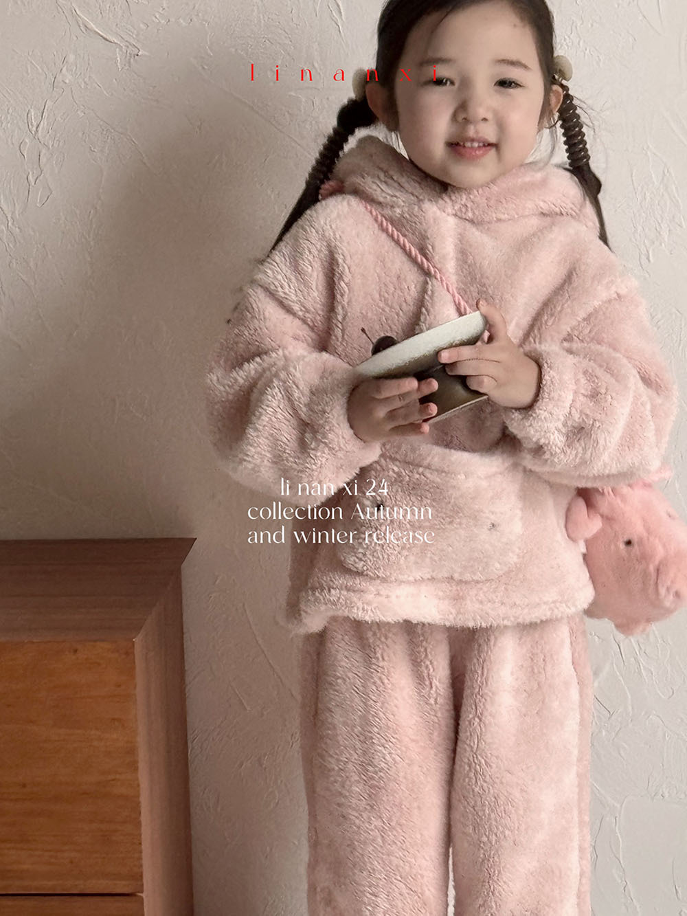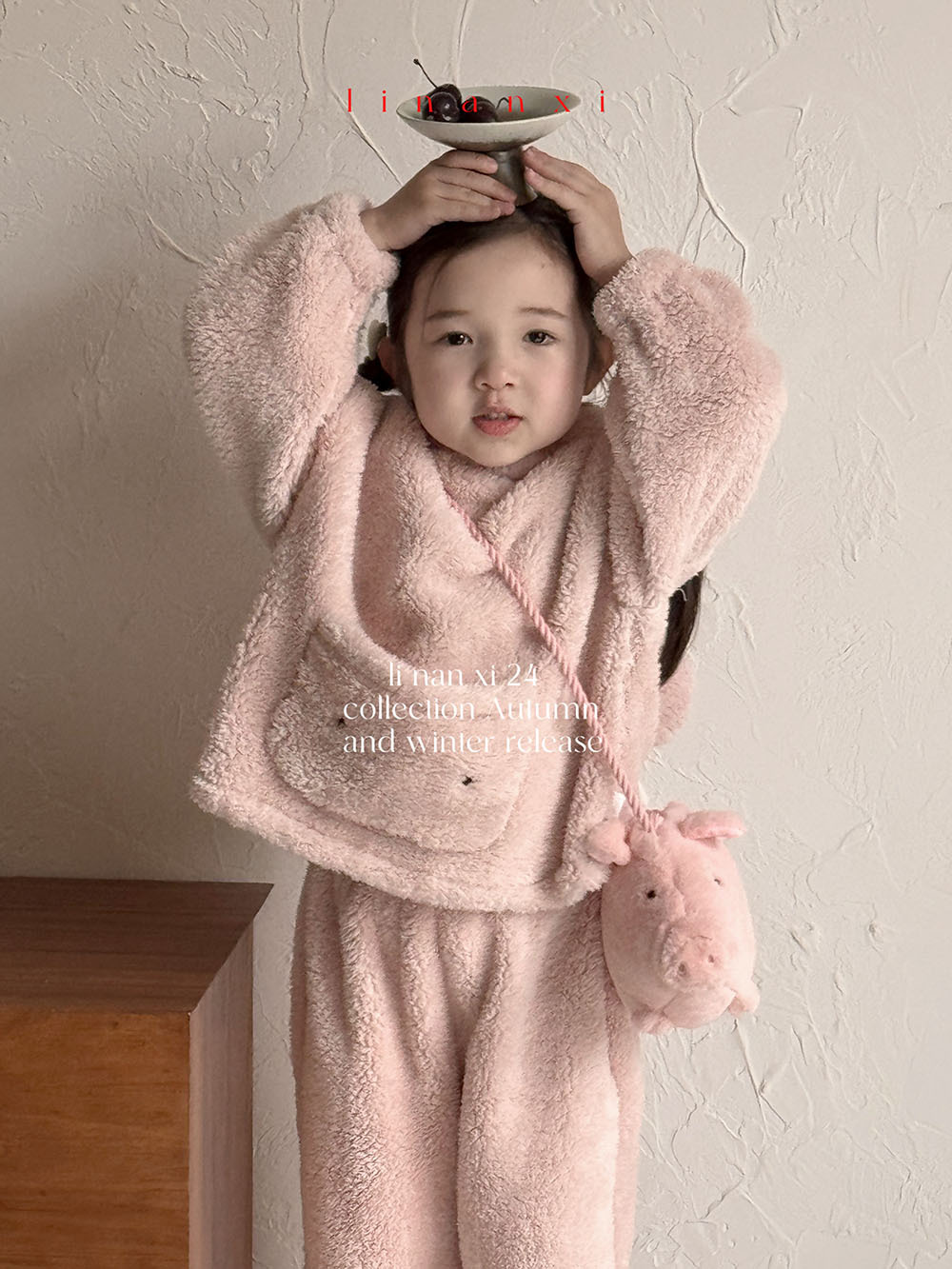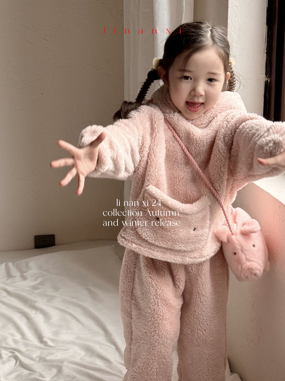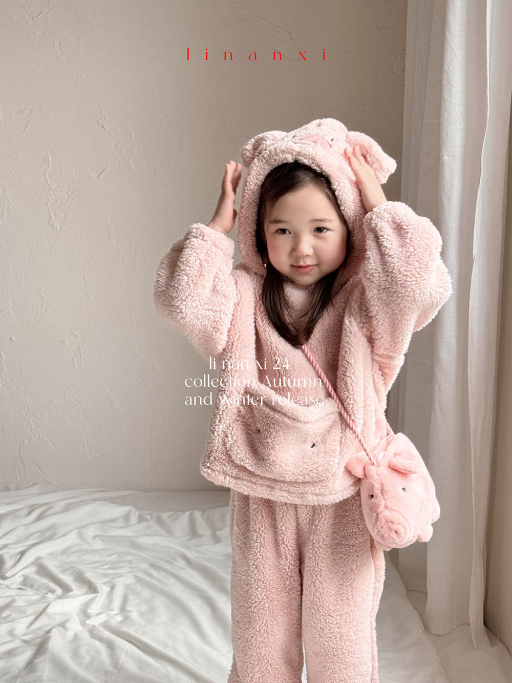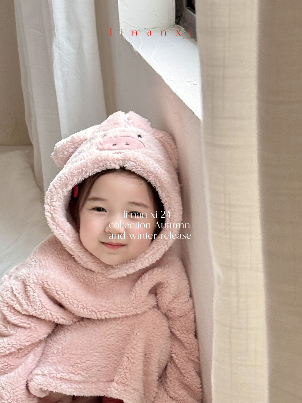 25 아동용 가을 겨울 플러시 홈웨어 돼지 세트+여아용 양면 플러시 만화 잠옷 및 잠옷 바지스토어 가기