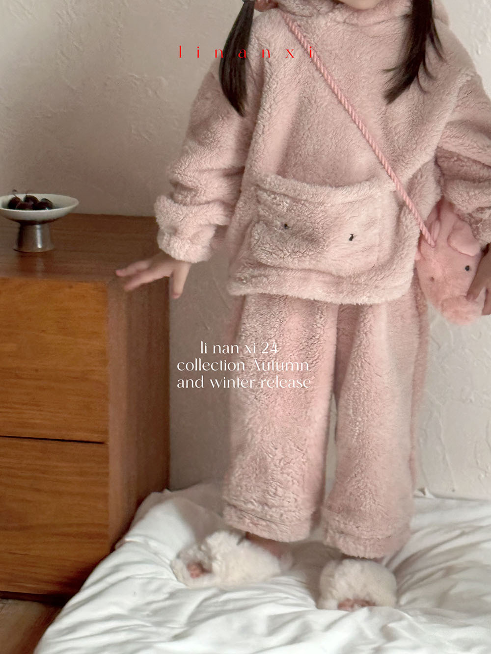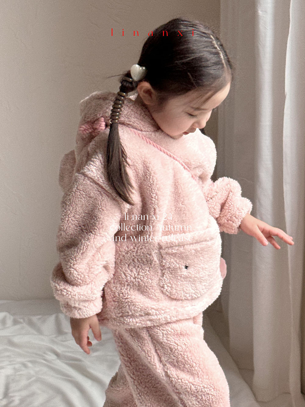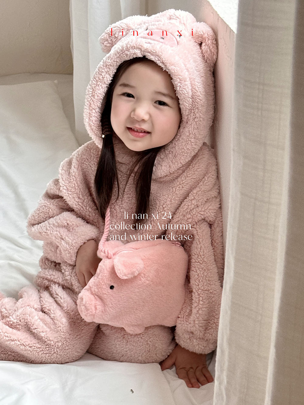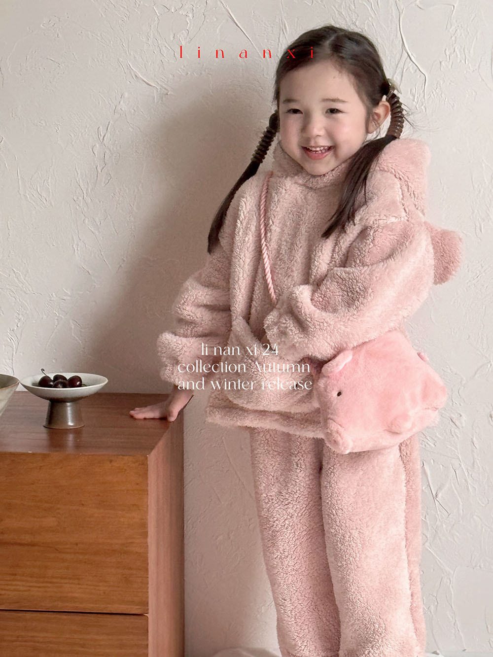 25 아동용 가을 겨울 플러시 홈웨어 돼지 세트+여아용 양면 플러시 만화 잠옷 및 잠옷 바지스토어 가기
