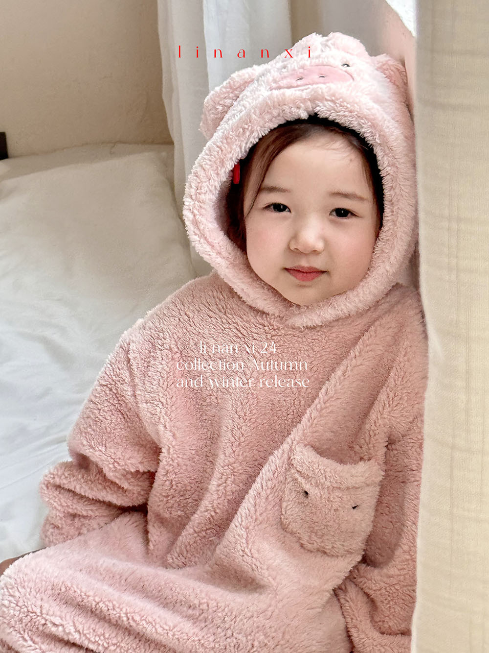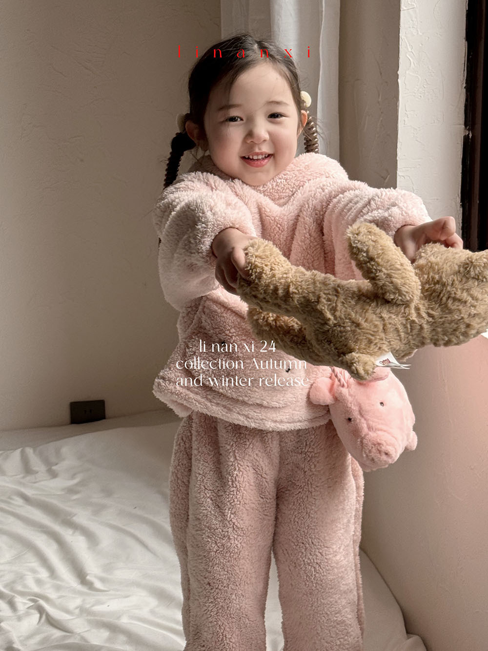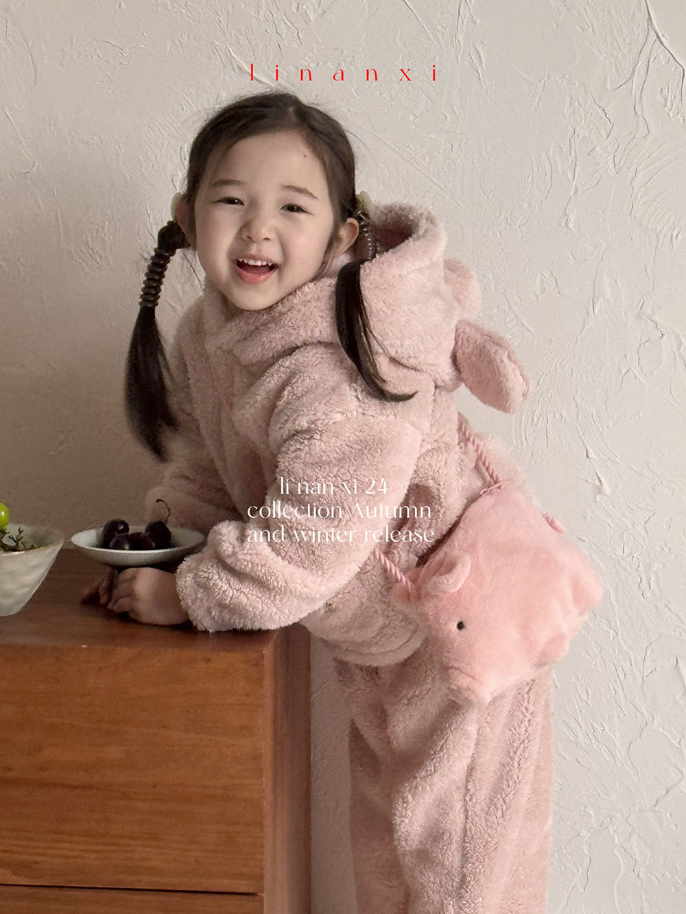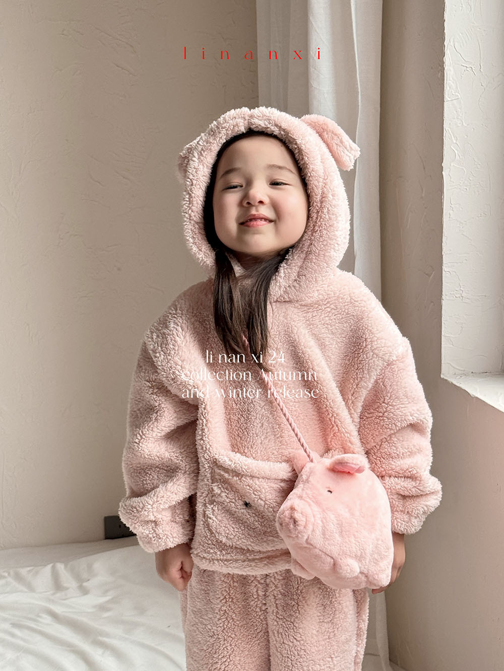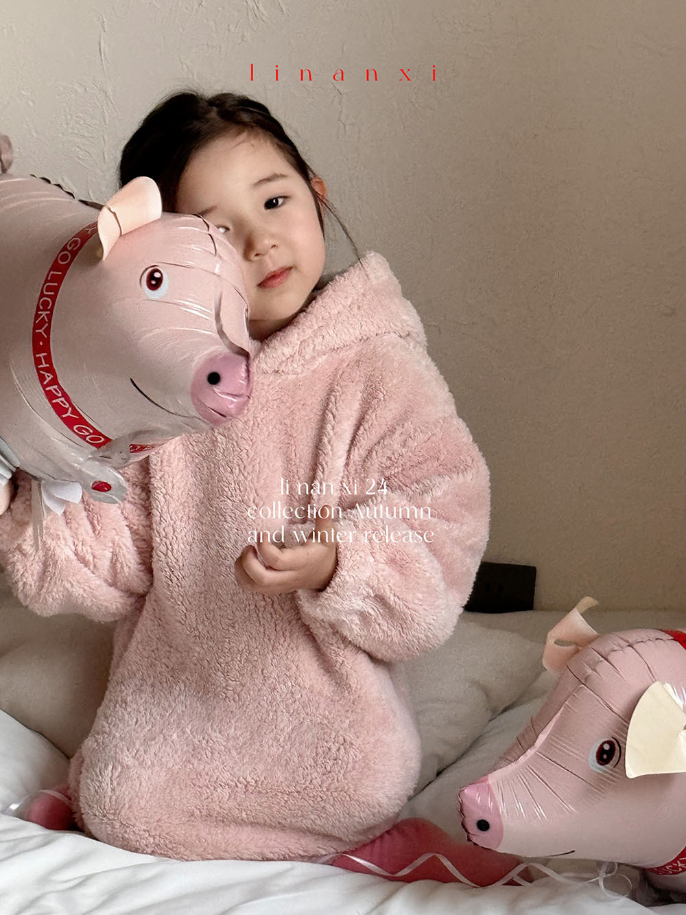 25 아동용 가을 겨울 플러시 홈웨어 돼지 세트+여아용 양면 플러시 만화 잠옷 및 잠옷 바지스토어 가기