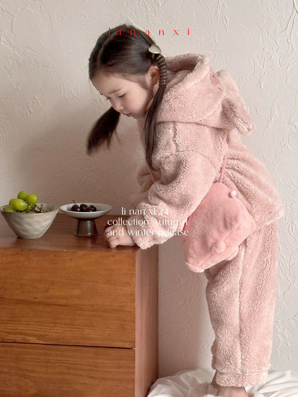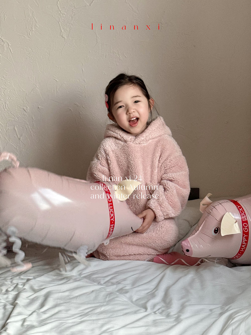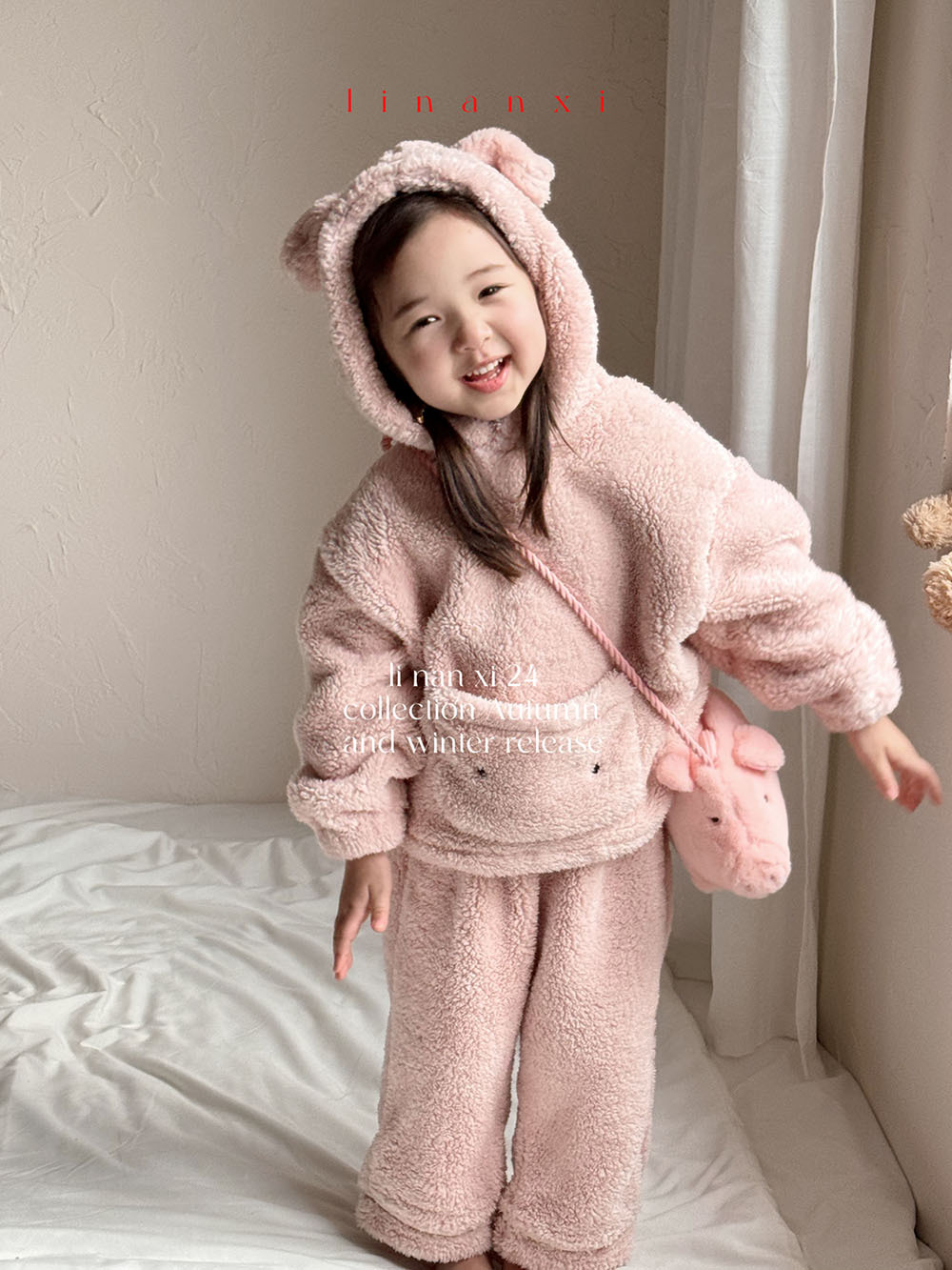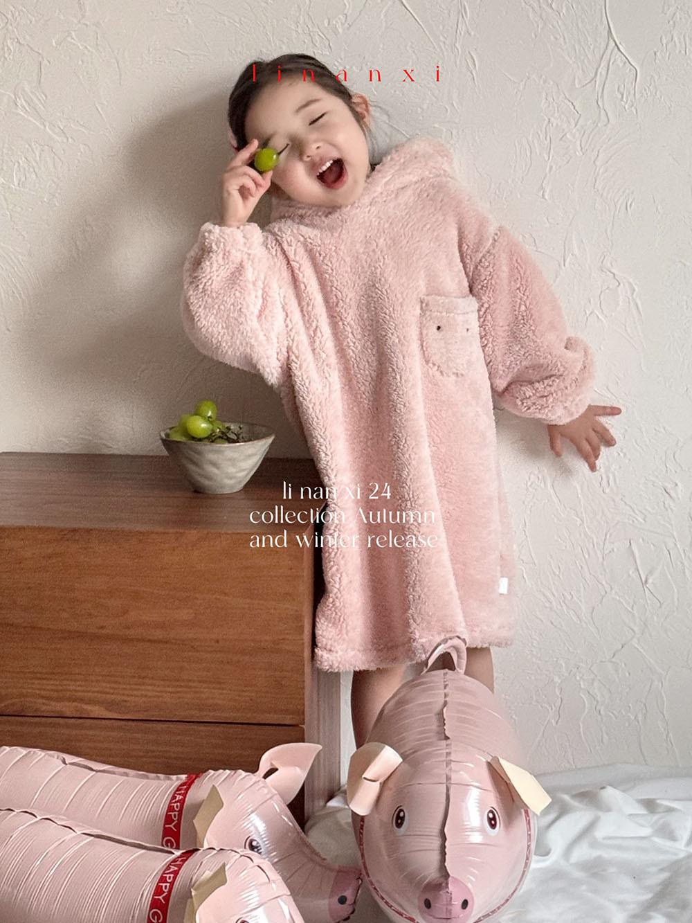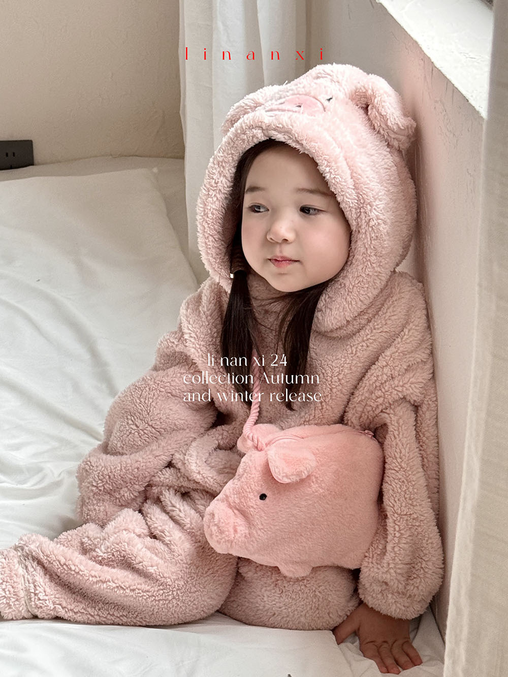 25 아동용 가을 겨울 플러시 홈웨어 돼지 세트+여아용 양면 플러시 만화 잠옷 및 잠옷 바지스토어 가기