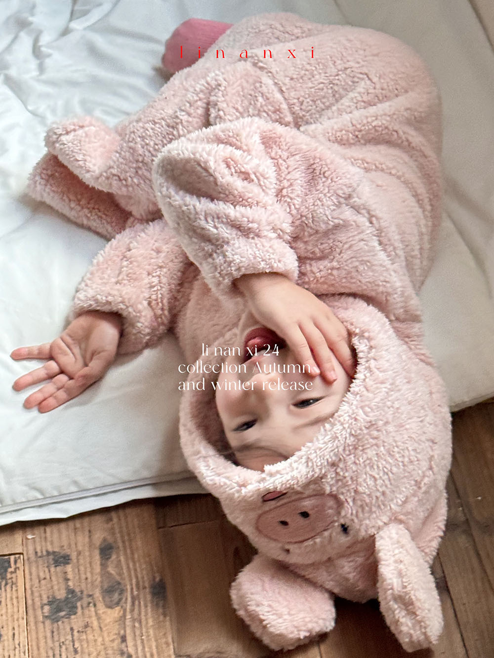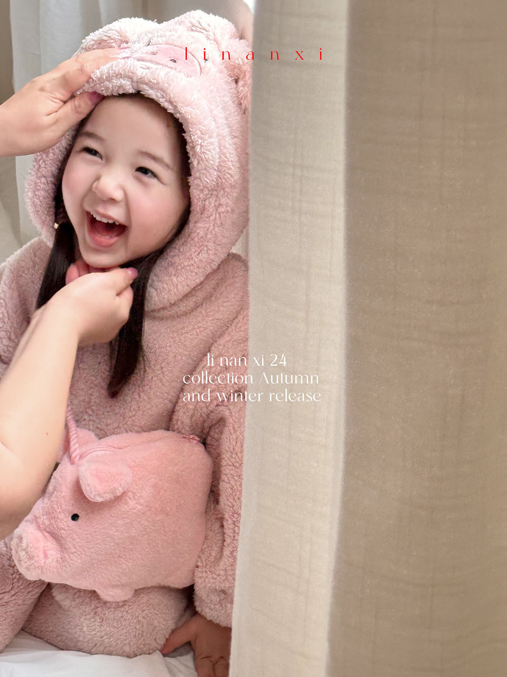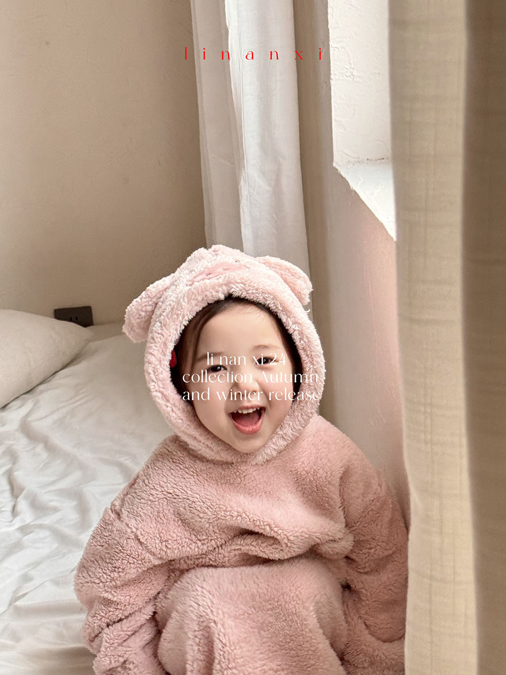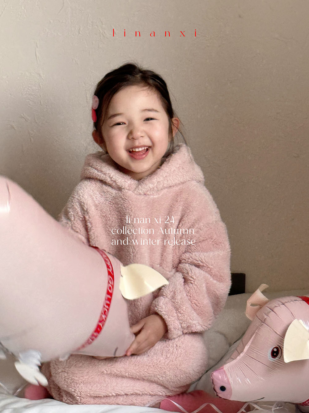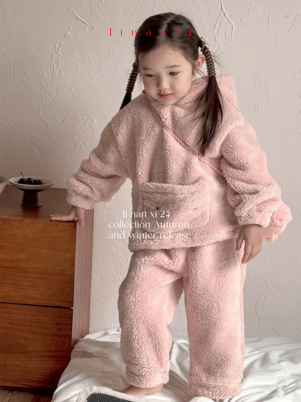 25 아동용 가을 겨울 플러시 홈웨어 돼지 세트+여아용 양면 플러시 만화 잠옷 및 잠옷 바지스토어 가기