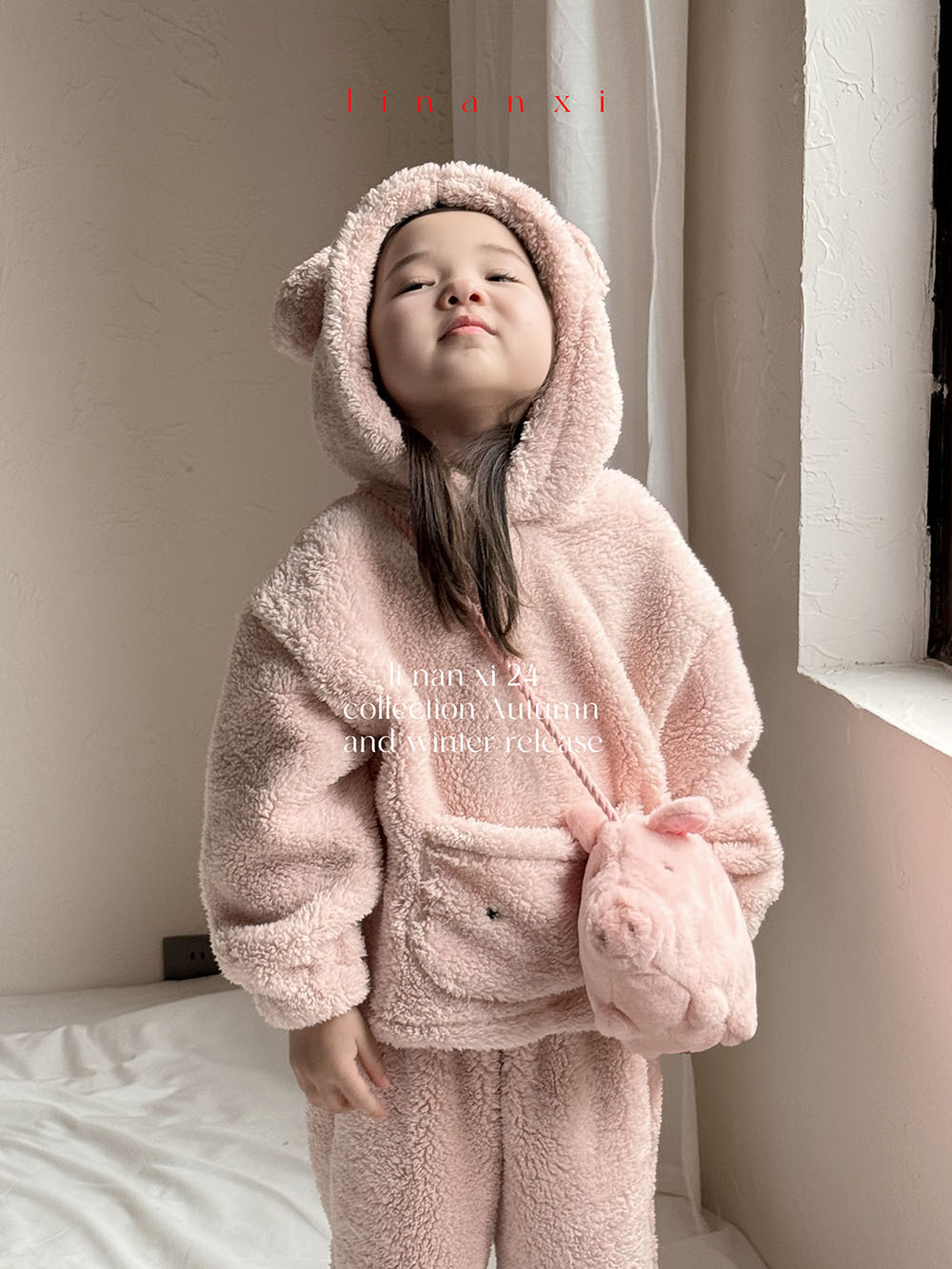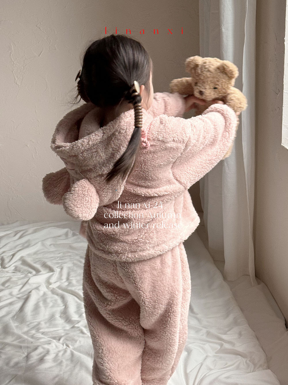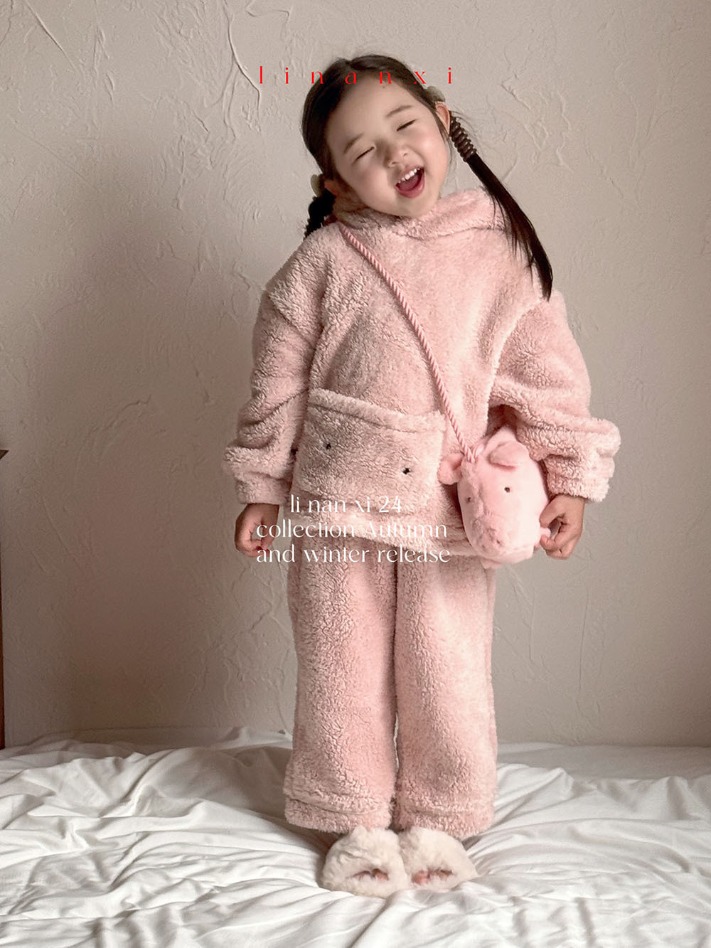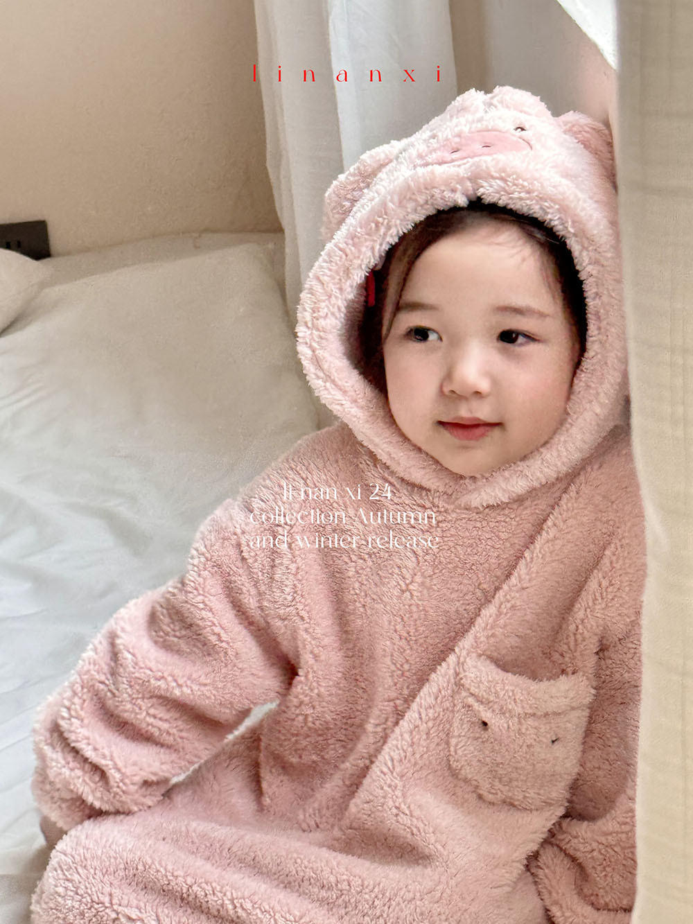 25 아동용 가을 겨울 플러시 홈웨어 돼지 세트+여아용 양면 플러시 만화 잠옷 및 잠옷 바지스토어 가기