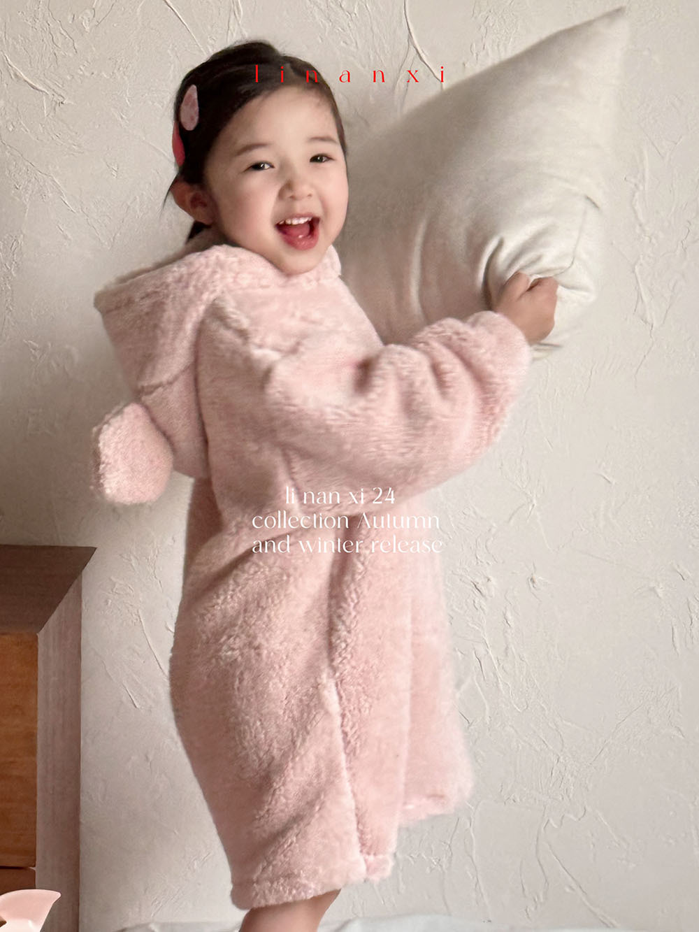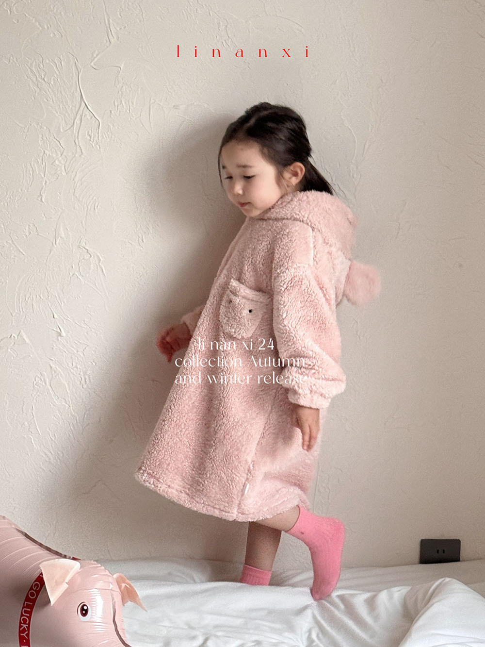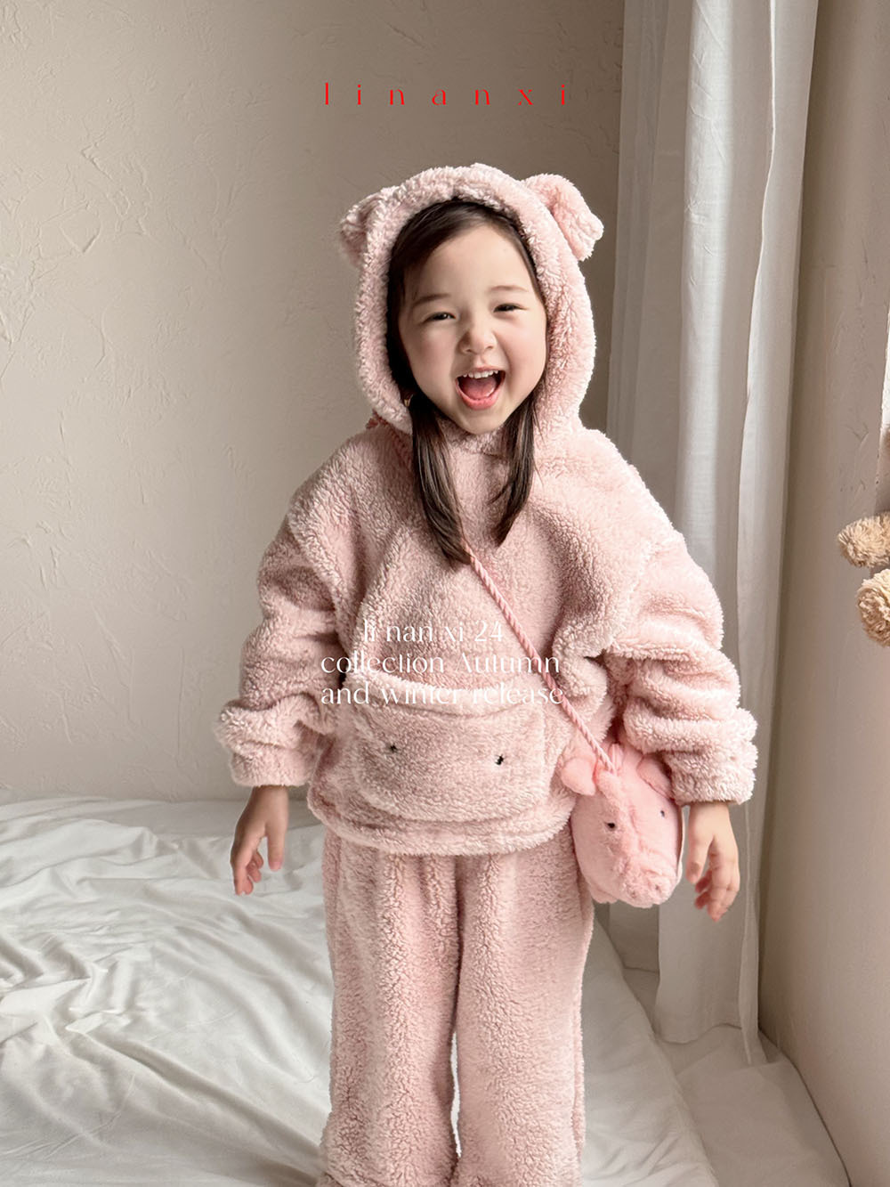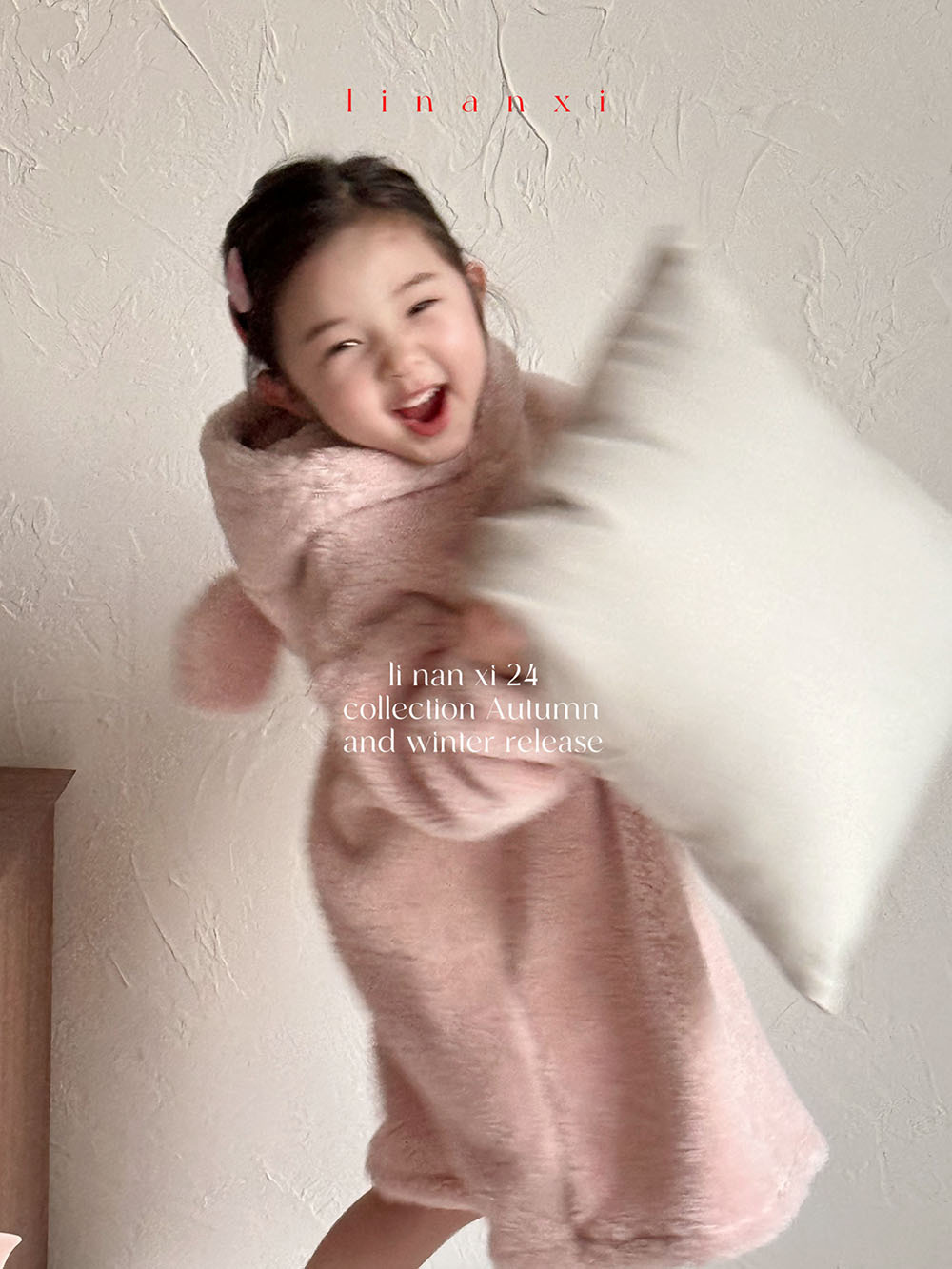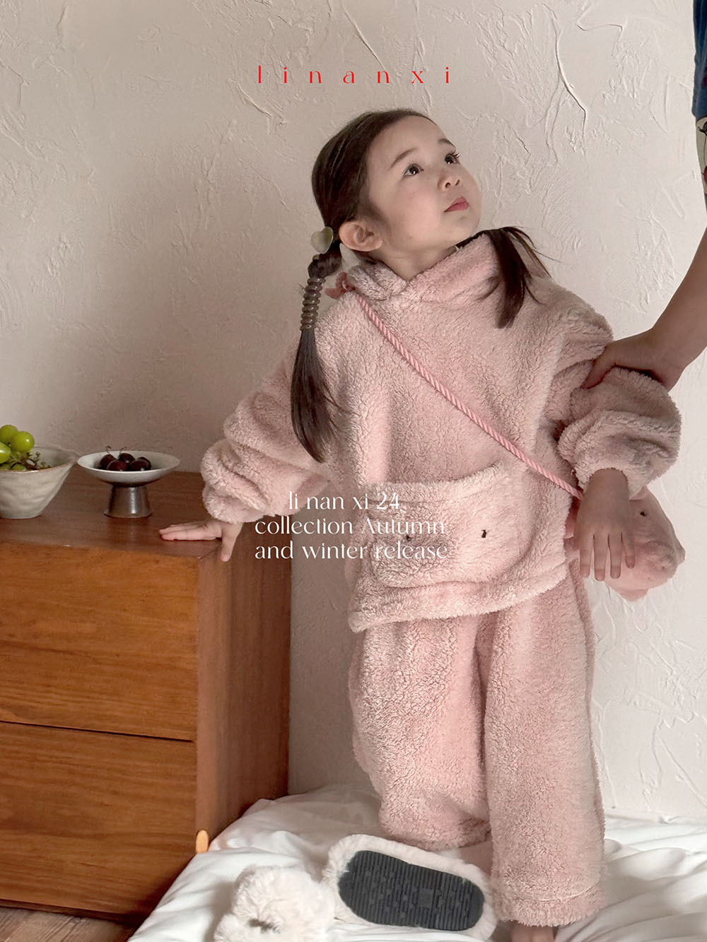 25 아동용 가을 겨울 플러시 홈웨어 돼지 세트+여아용 양면 플러시 만화 잠옷 및 잠옷 바지스토어 가기