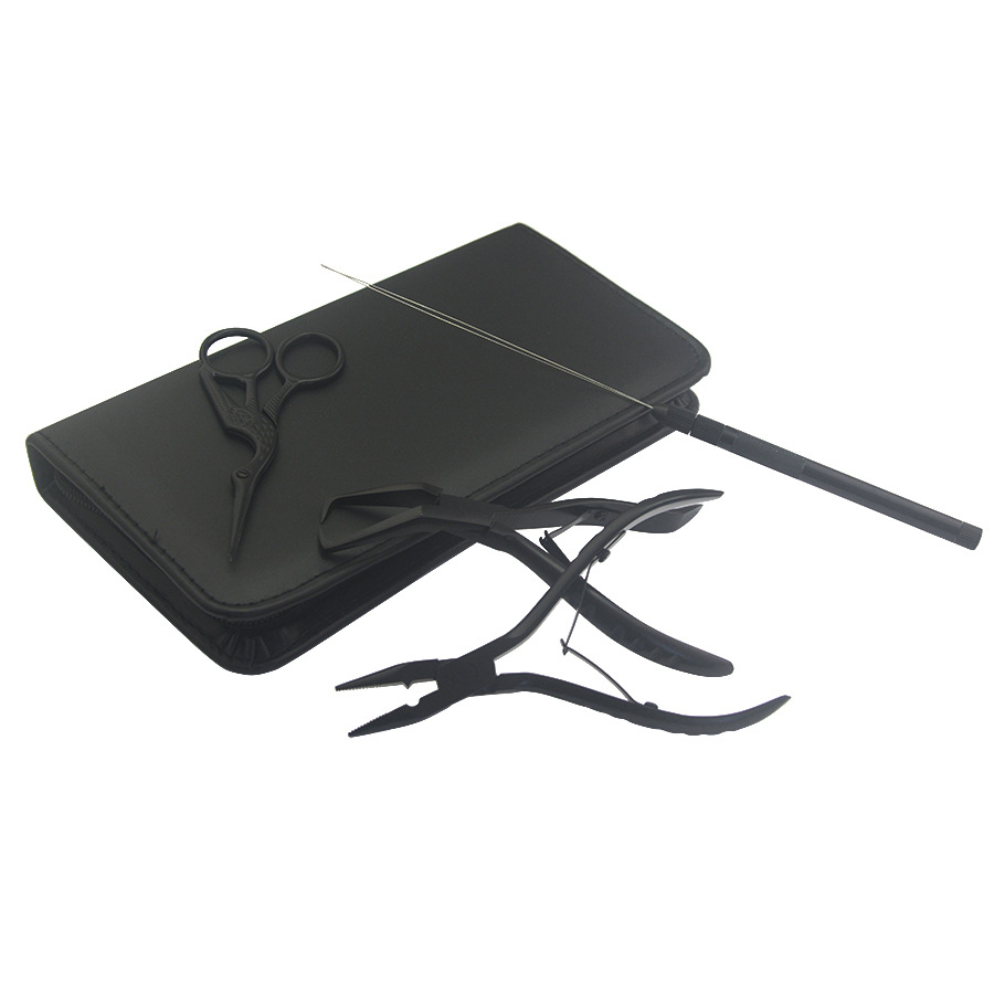 헤어 익스텐션 펜치 세트, 미끄럼 방지 패턴 손잡이 헤어 익스텐션 펜치 + 스테인리스 비즈 세팅 바늘 + 작은 가위