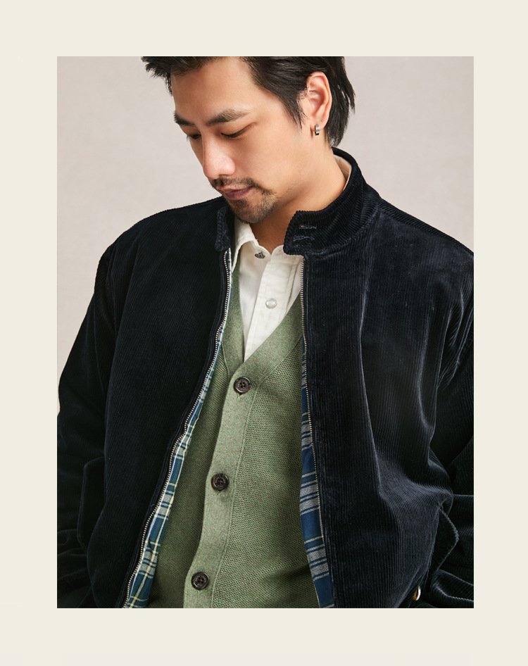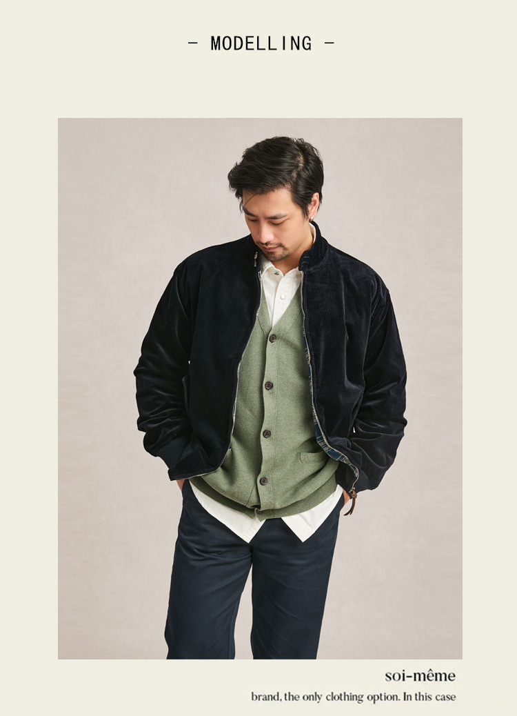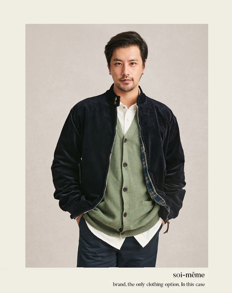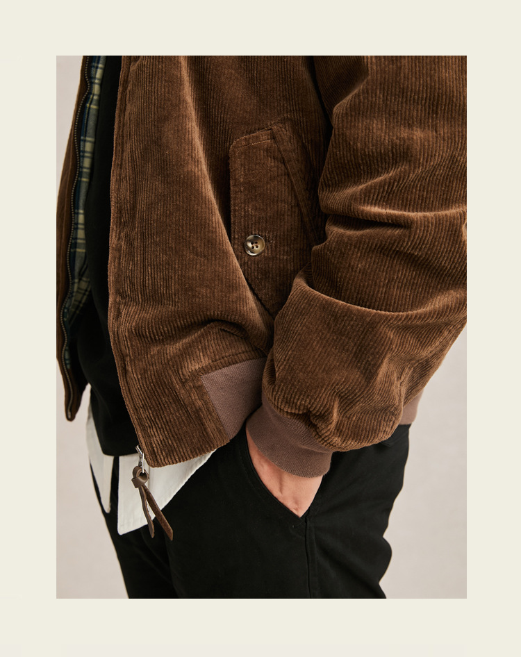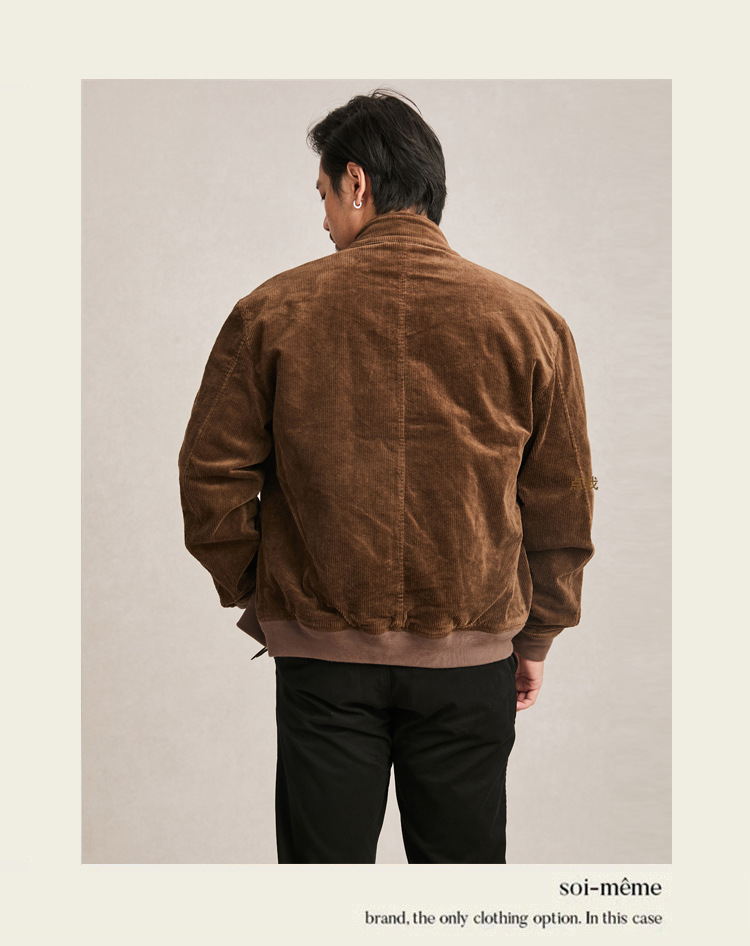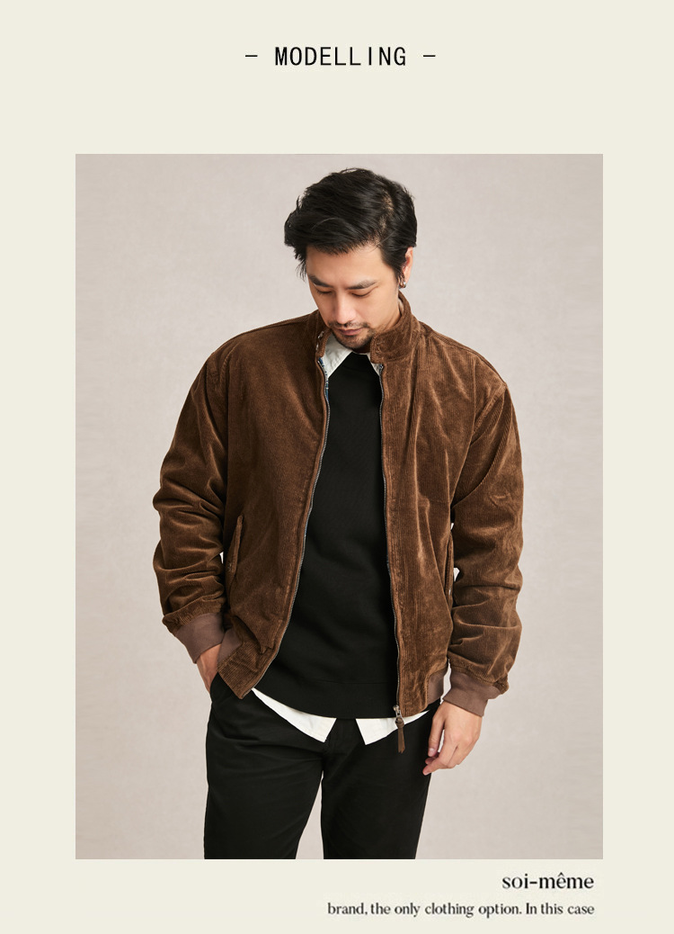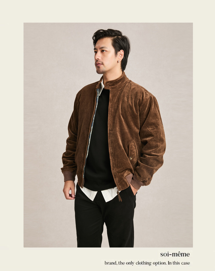 아메리칸 스타일 지퍼 재킷 빈티지 남성 다크 브라운 루즈 칼라 툴링 하이 엔드 코듀로이 남성 자켓 봄과 가을스토어 가기