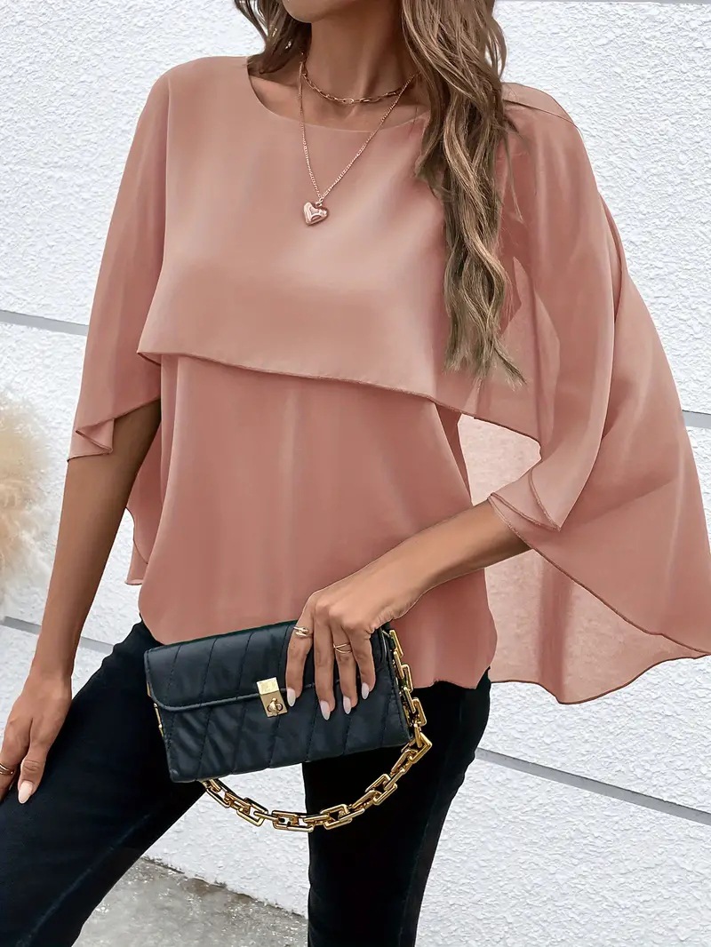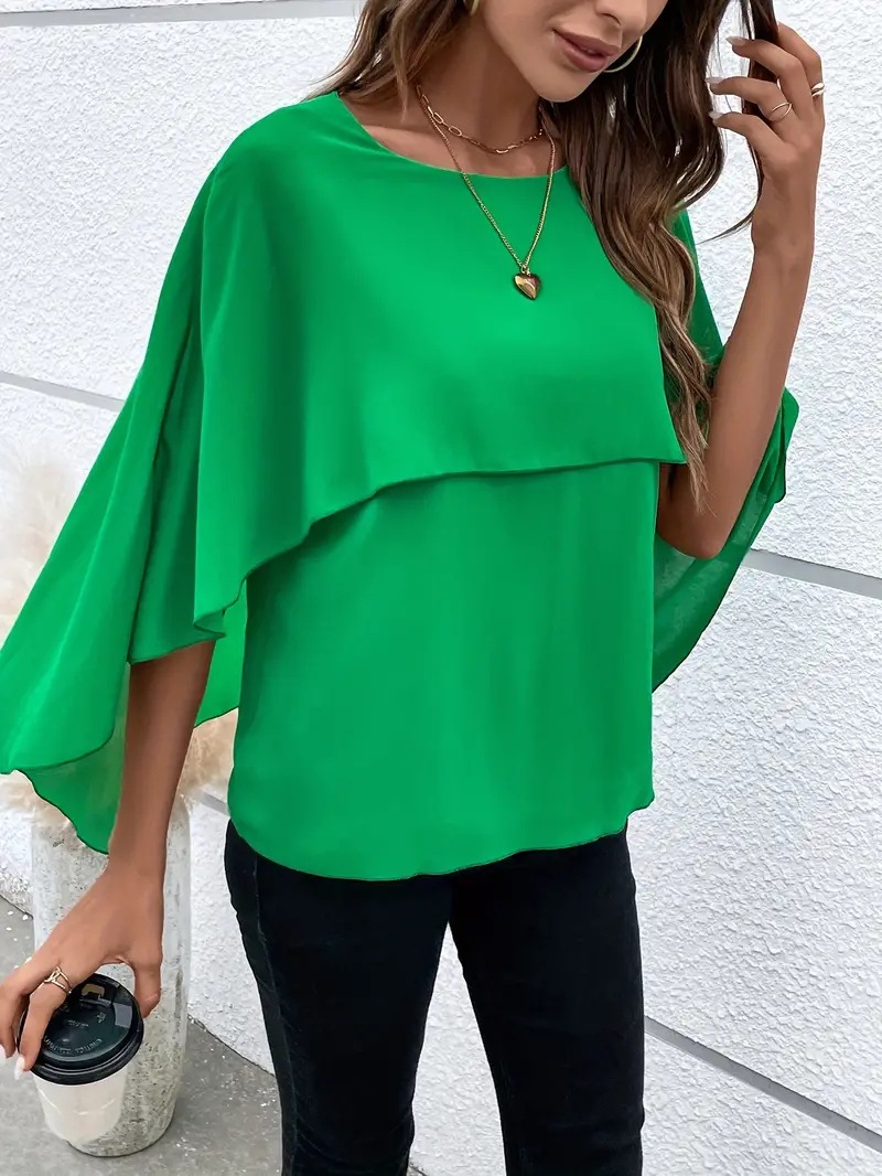 Amazon AliExpress ebay 유럽과 미국의 대외 무역 여성 의류 올 매치 라운드 넥 단색 레이어 케이프 슬리브 쉬폰 셔츠 여성