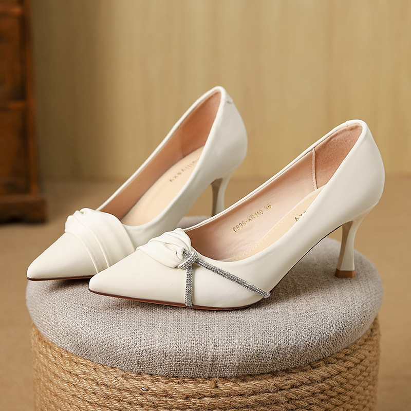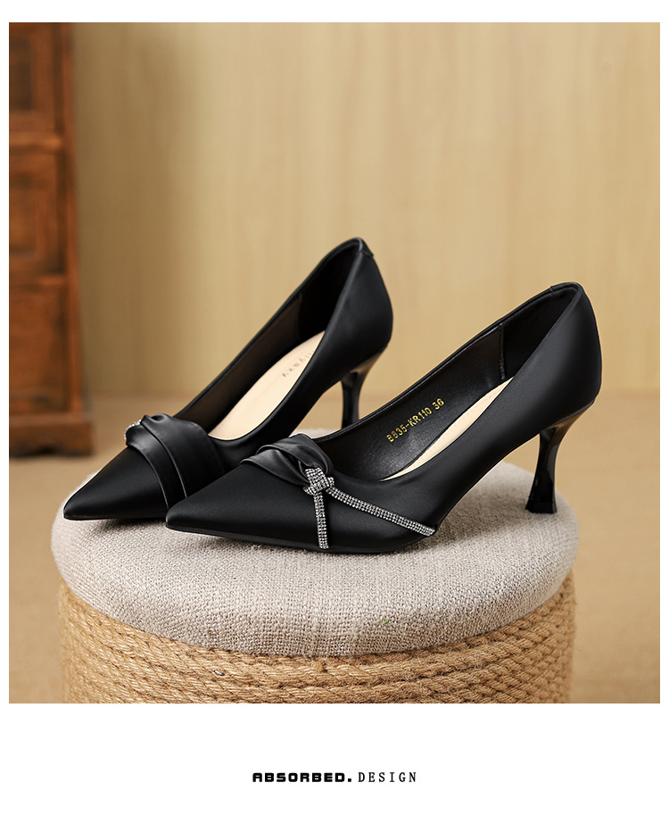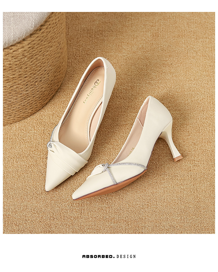 Huiliya 새로운 프랑스 스타일 우아한 하이힐 여성 뾰족한 톤 라인스톤 스틸레토 힐토 전문 여성 싱글 슈즈 여성 B835-KR110