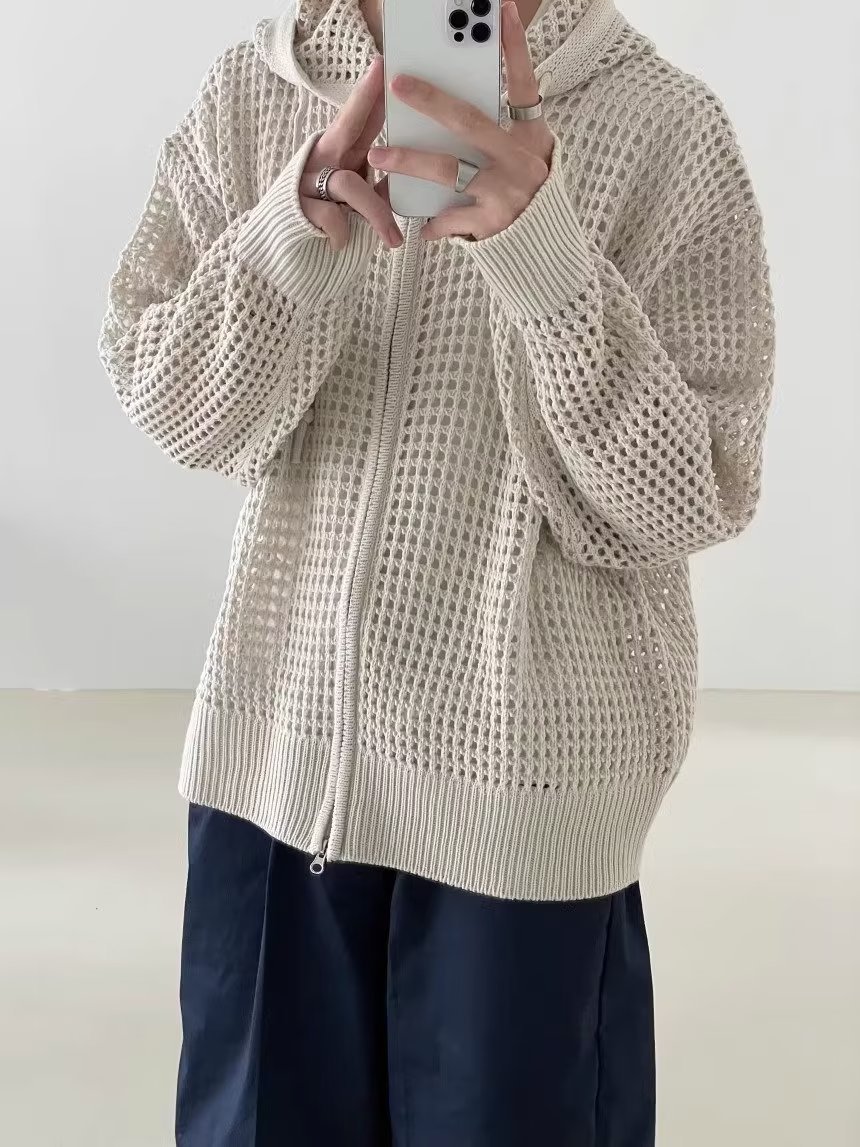 조수 바람 속이 빈 후드 스웨터 소년 봄과 가을 느슨한 지퍼 스웨터 코트 카디건의 한국어 버전