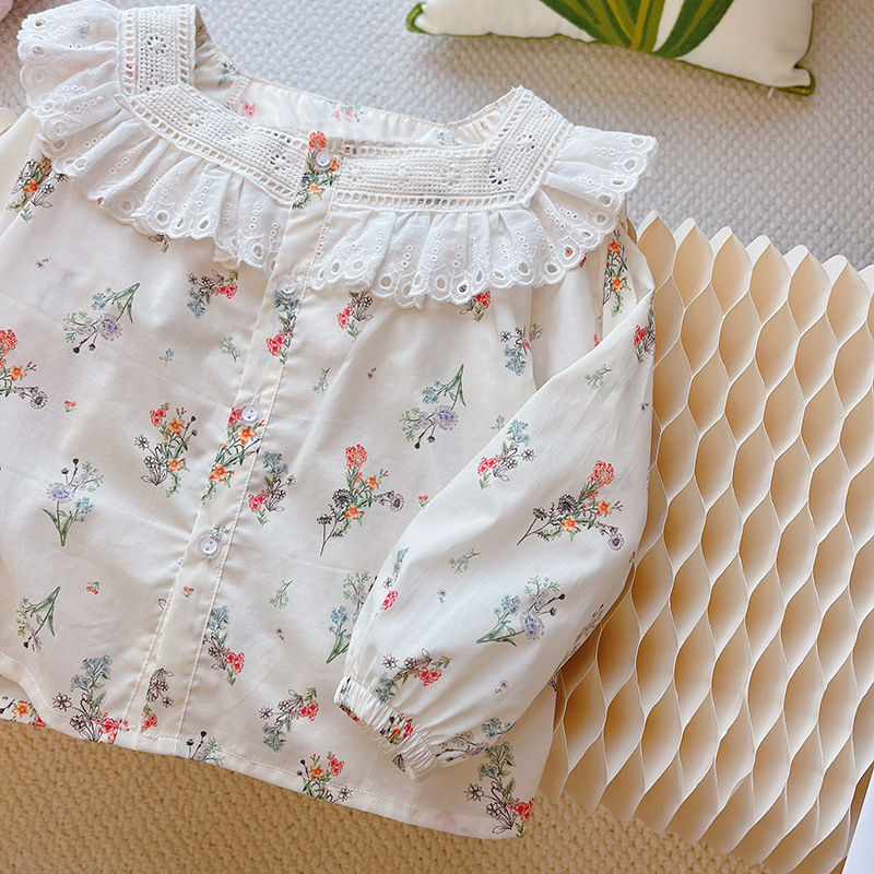 여자 순수 코튼 레이스 꽃 인형 탑 여자 가을 새로운 한국 스타일 아동 셔츠 긴팔 셔츠 유행스토어 가기