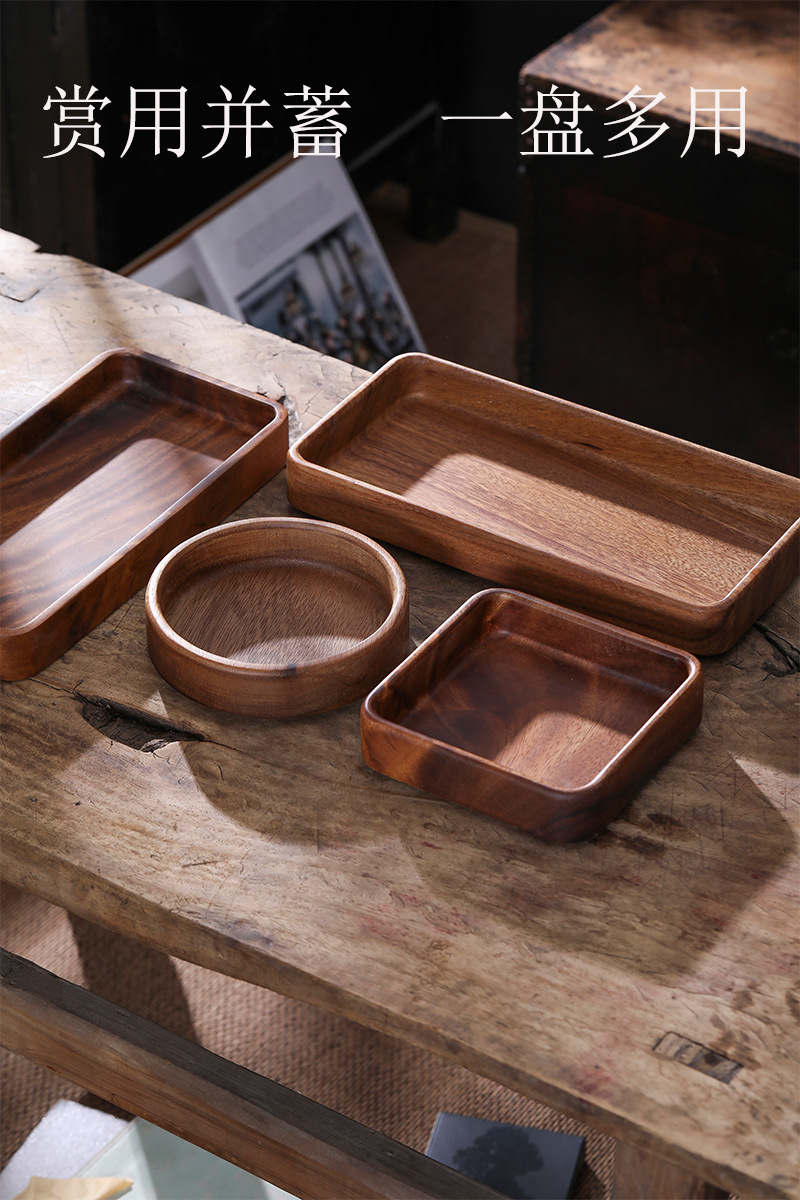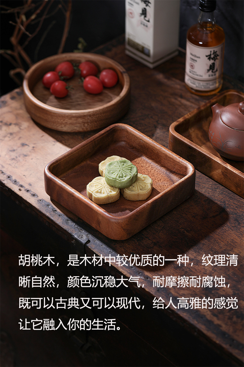 일본 호두 너트 상자 광장 쌓을 수있는 스토브 주위에 차를 만들기위한 단단한 나무 차 트레이 과일 트레이 디저트 과자 트레이스토어 가기