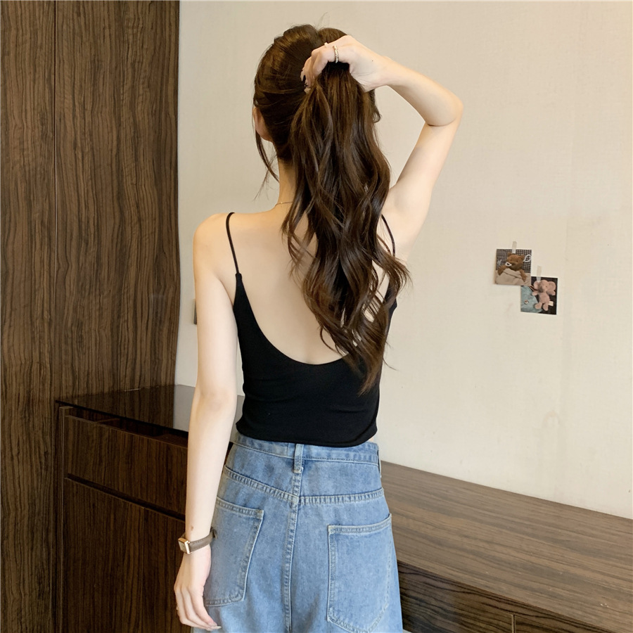아름다운 등 작은 카미 솔 여성 내부 조끼, 가슴 패드 여름 외부 착용 2024 새로운 V-Neck 민소매 짧은베이스 탑
