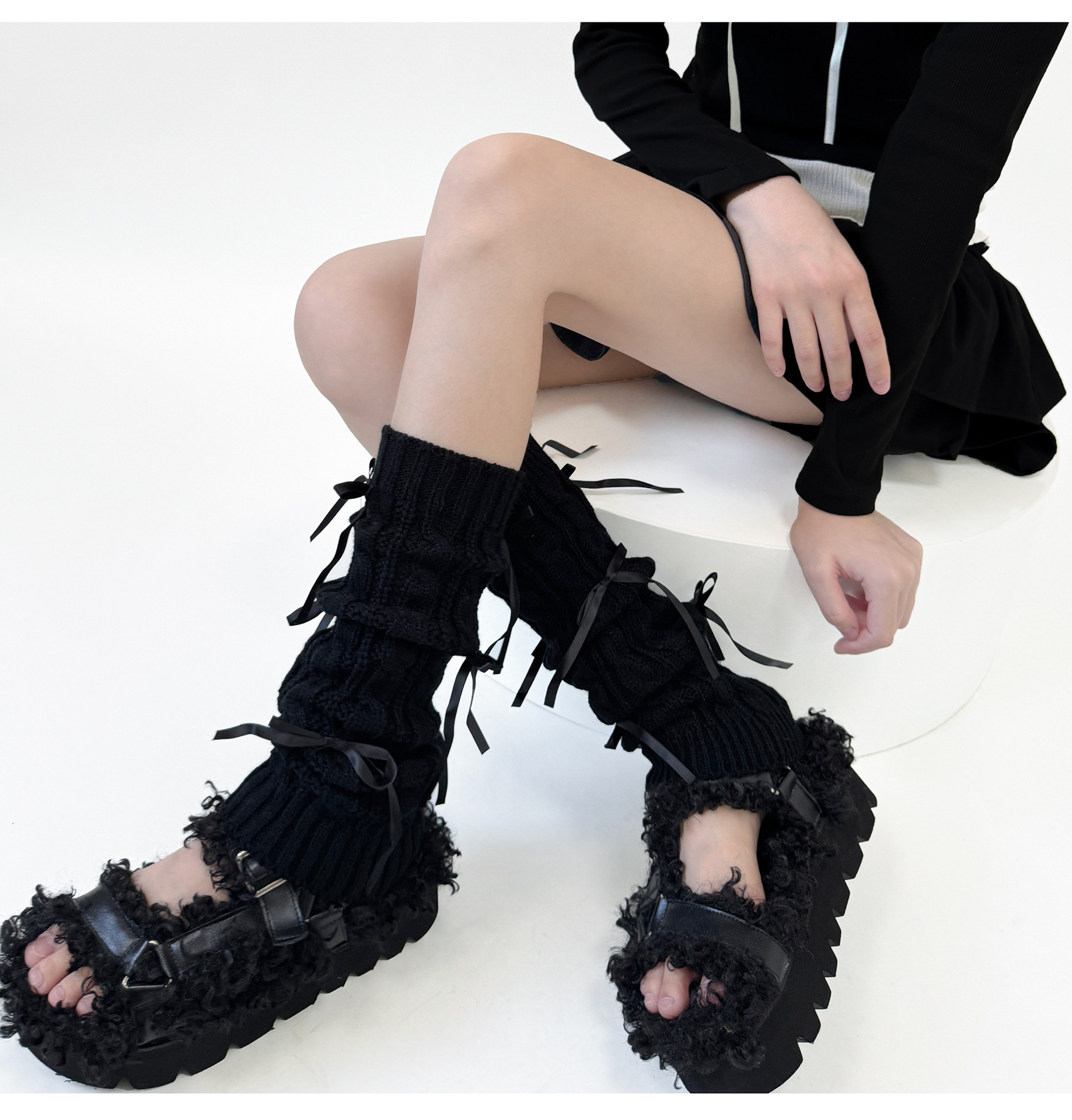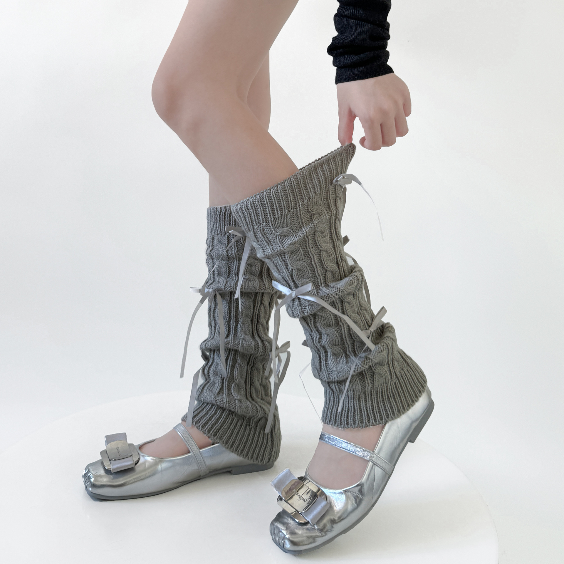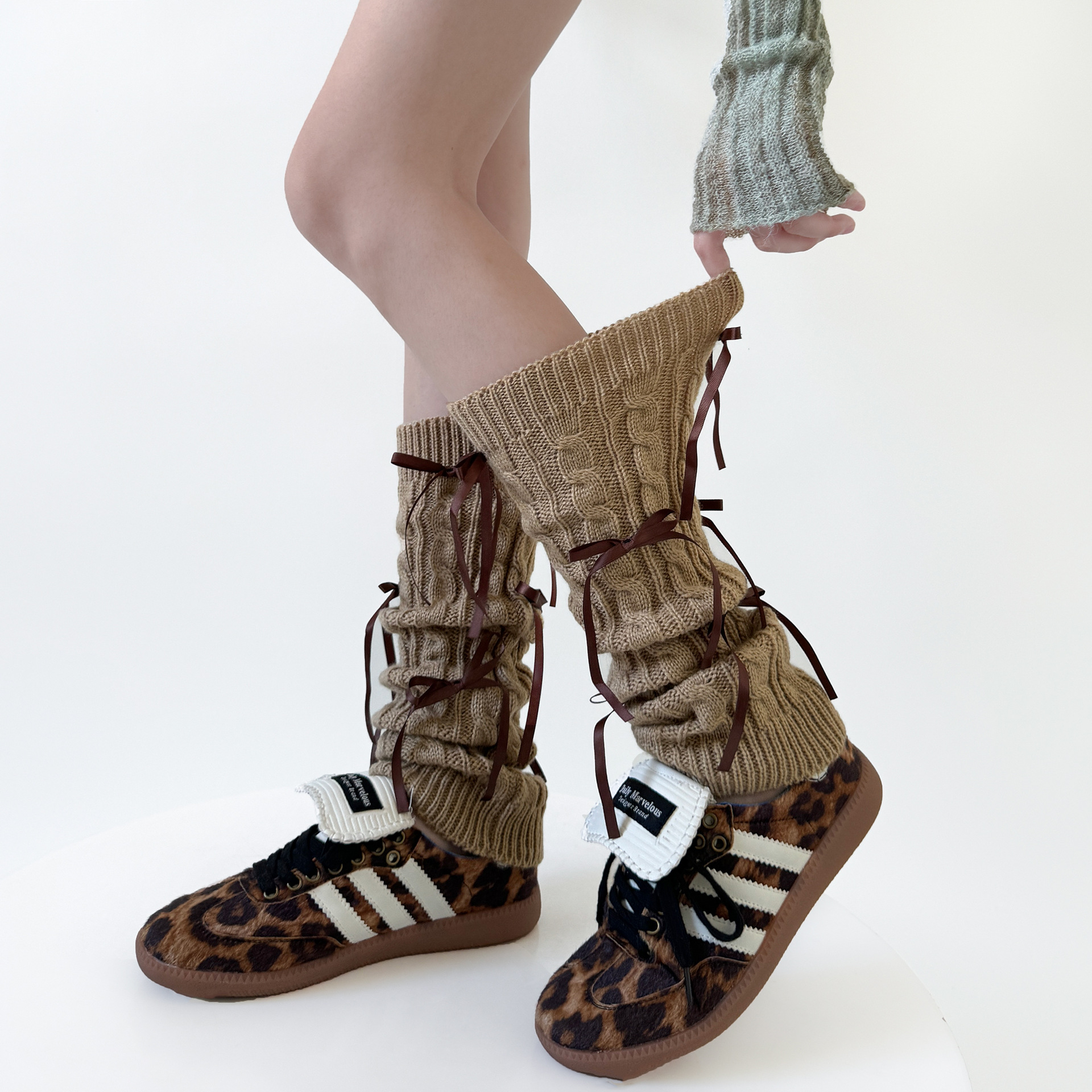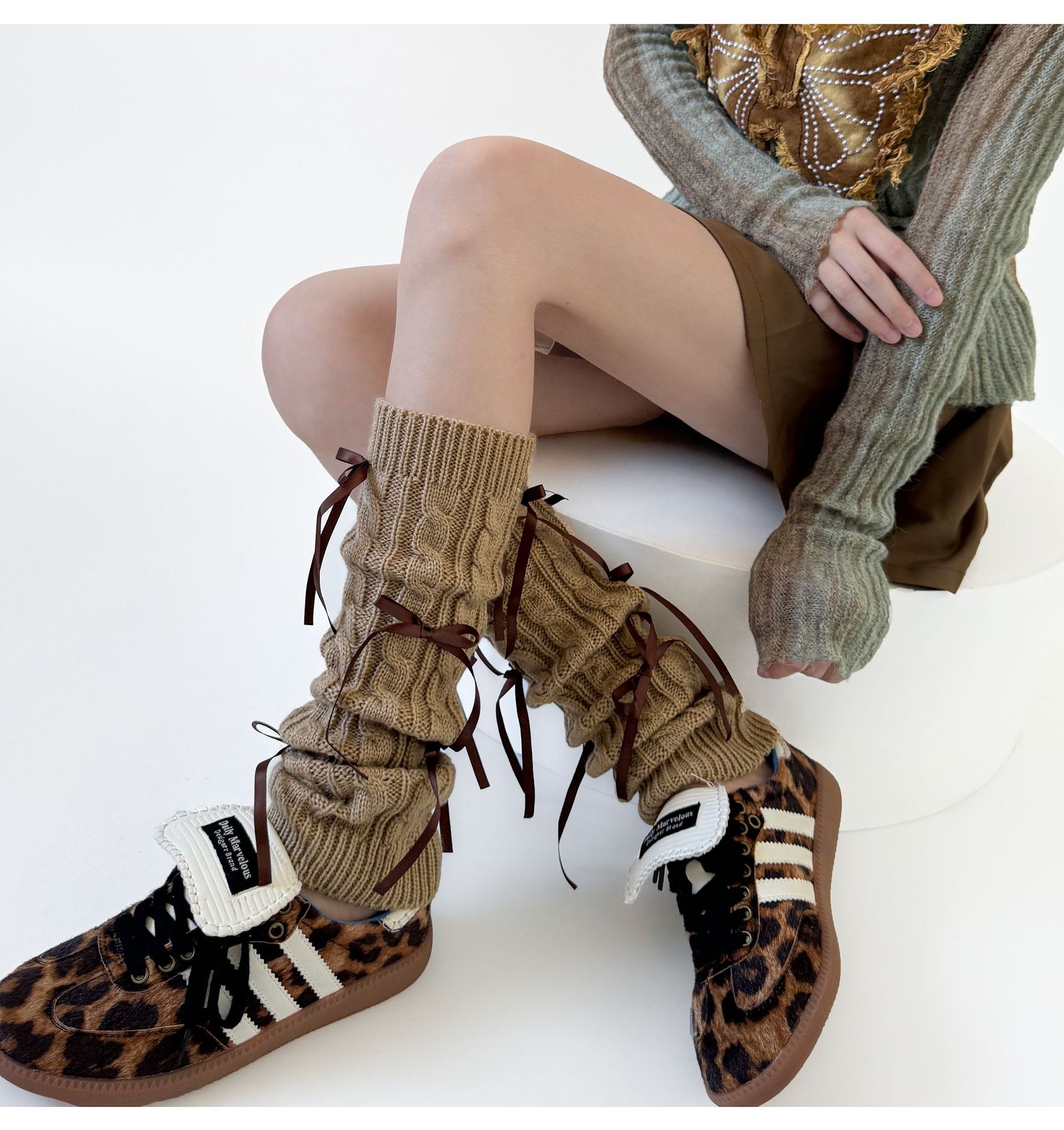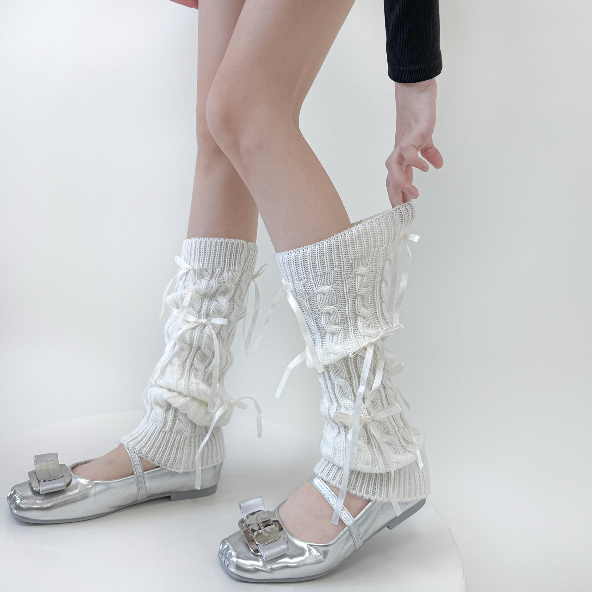 가을과 겨울 일본 양모 니트 수직 트위스트 양말 세트 활 포장 양말 여성용 다리 세트 봄과 가을 따뜻한 흰색 JK스토어 가기