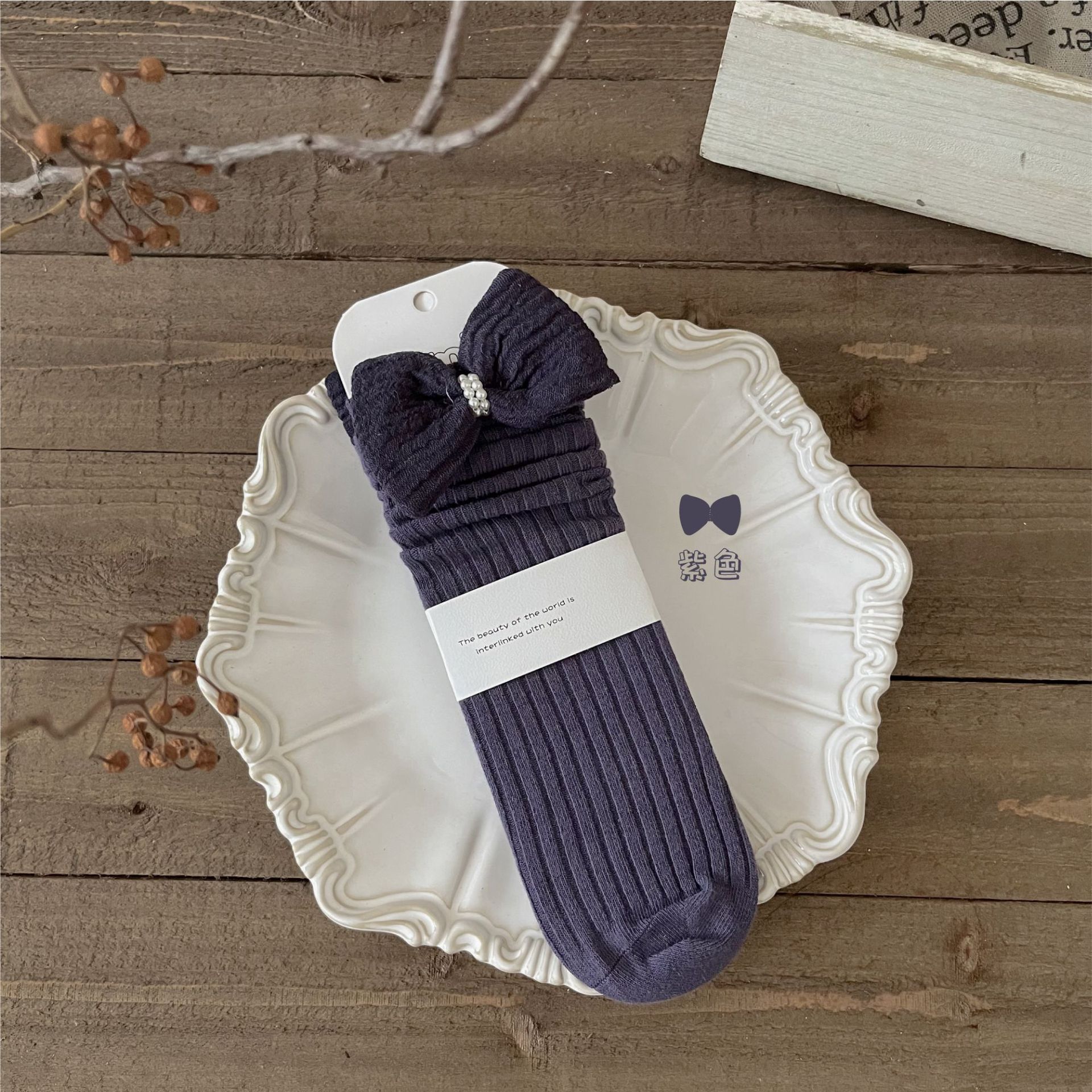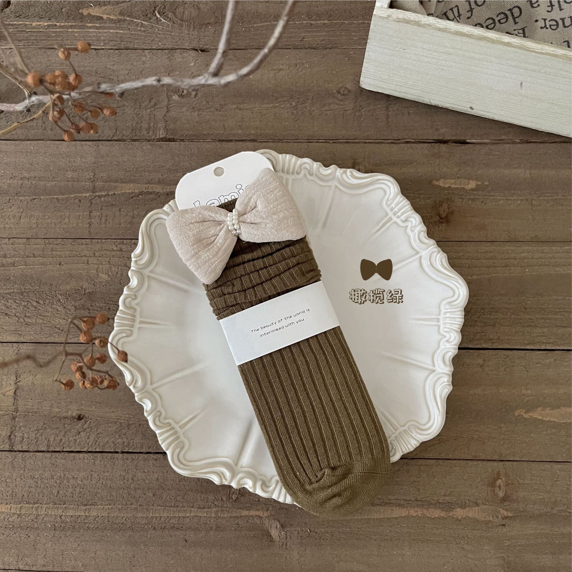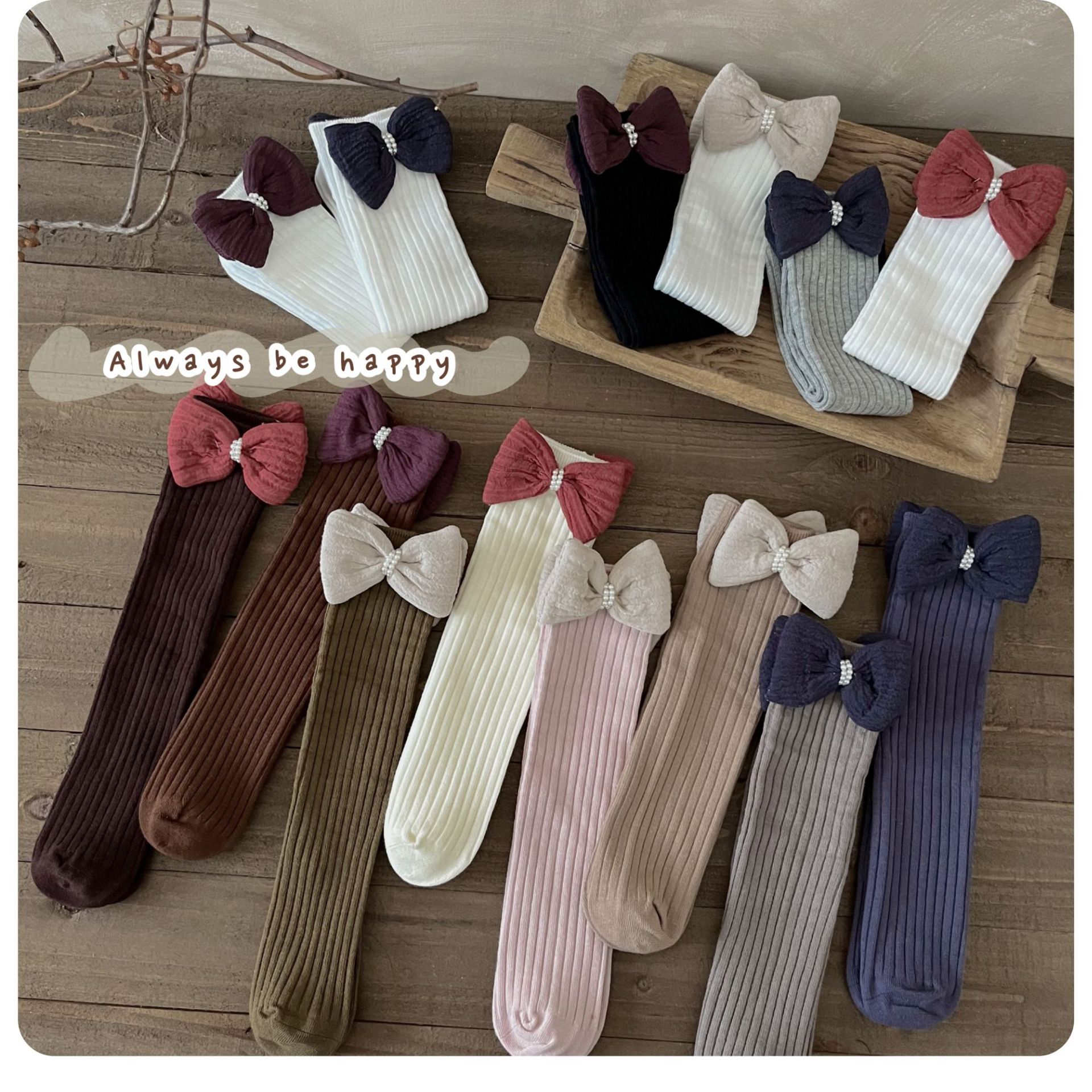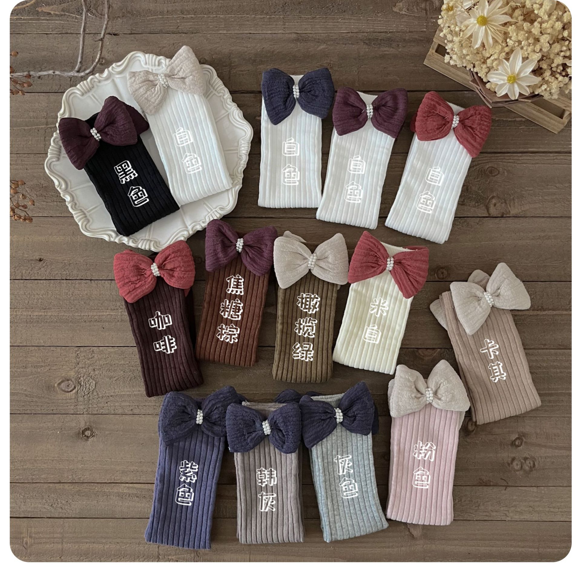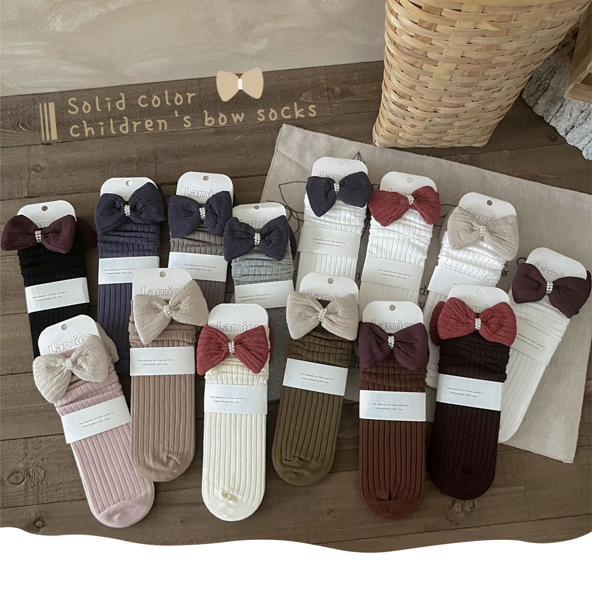 가을 새로운 어린이 양말 아기 진주 활 단색 튜브 양말 면화 더미 양말 공주 양말