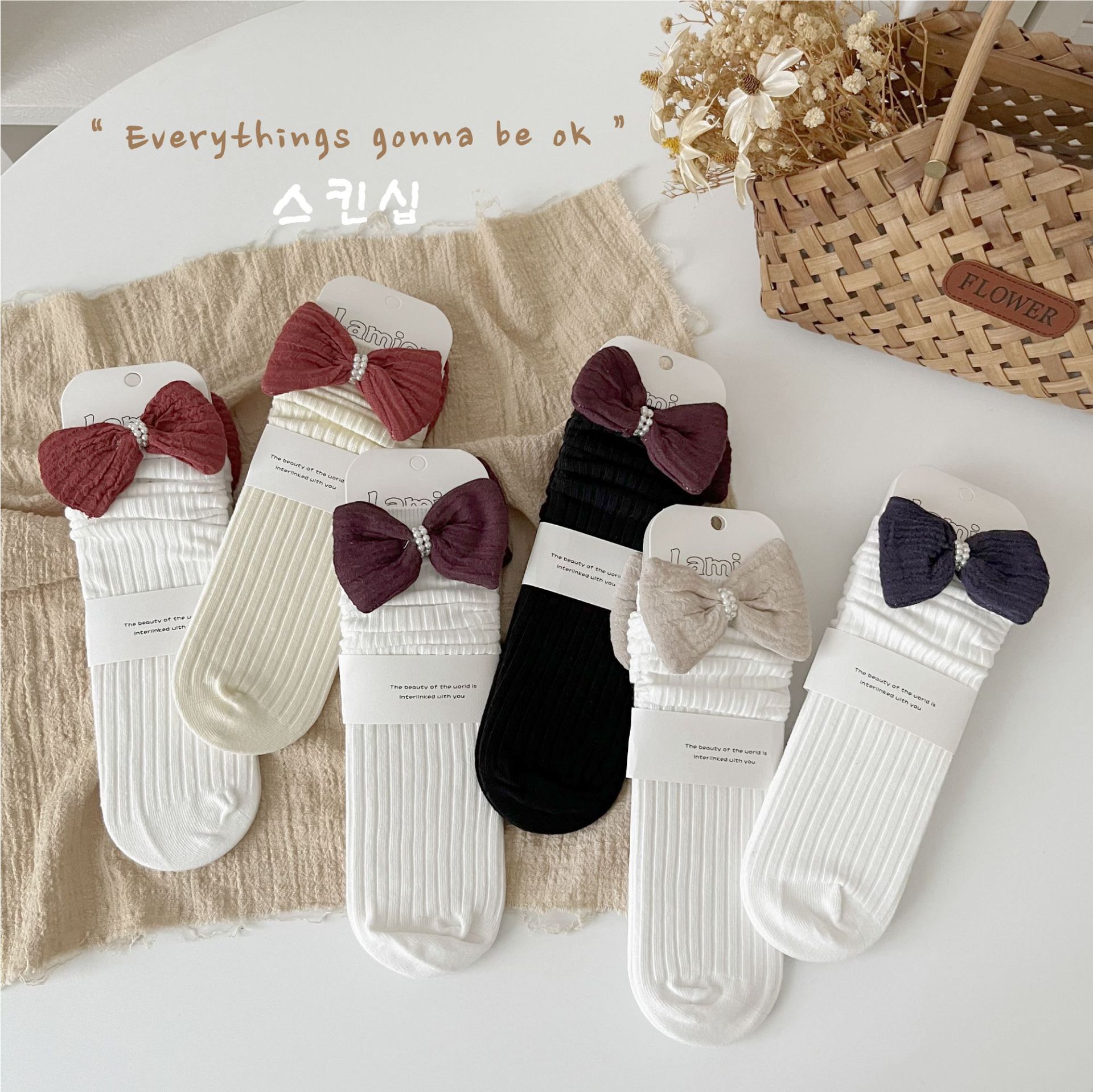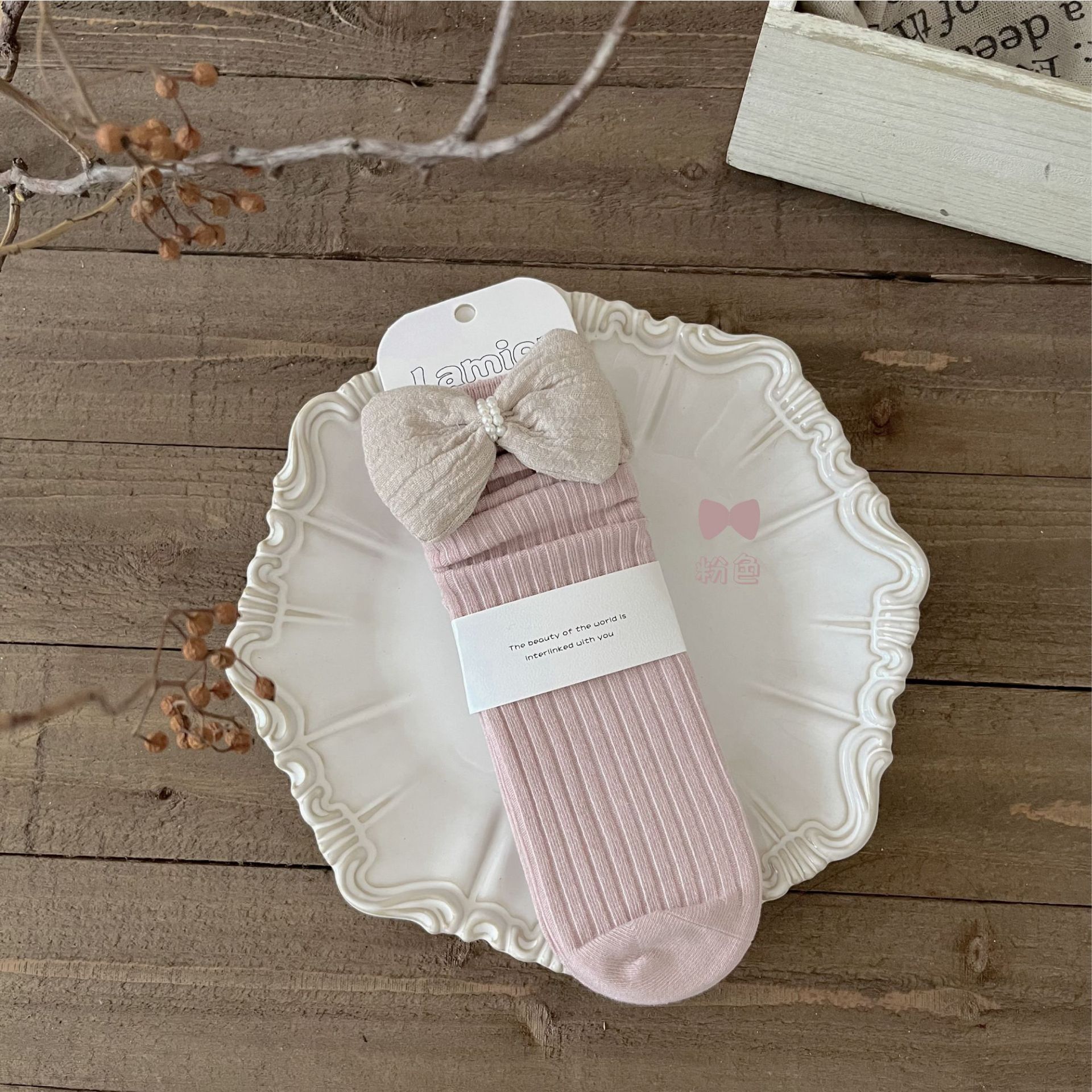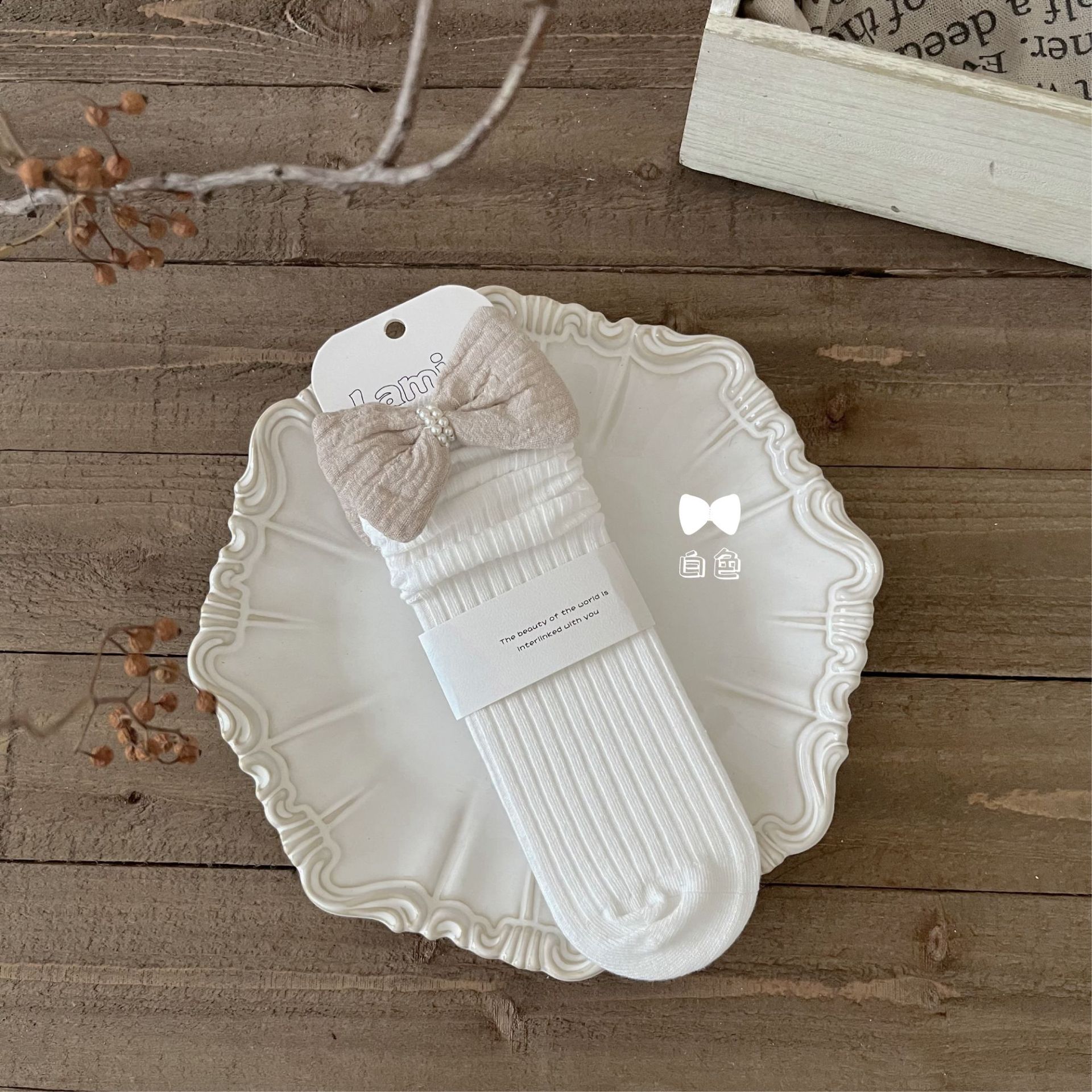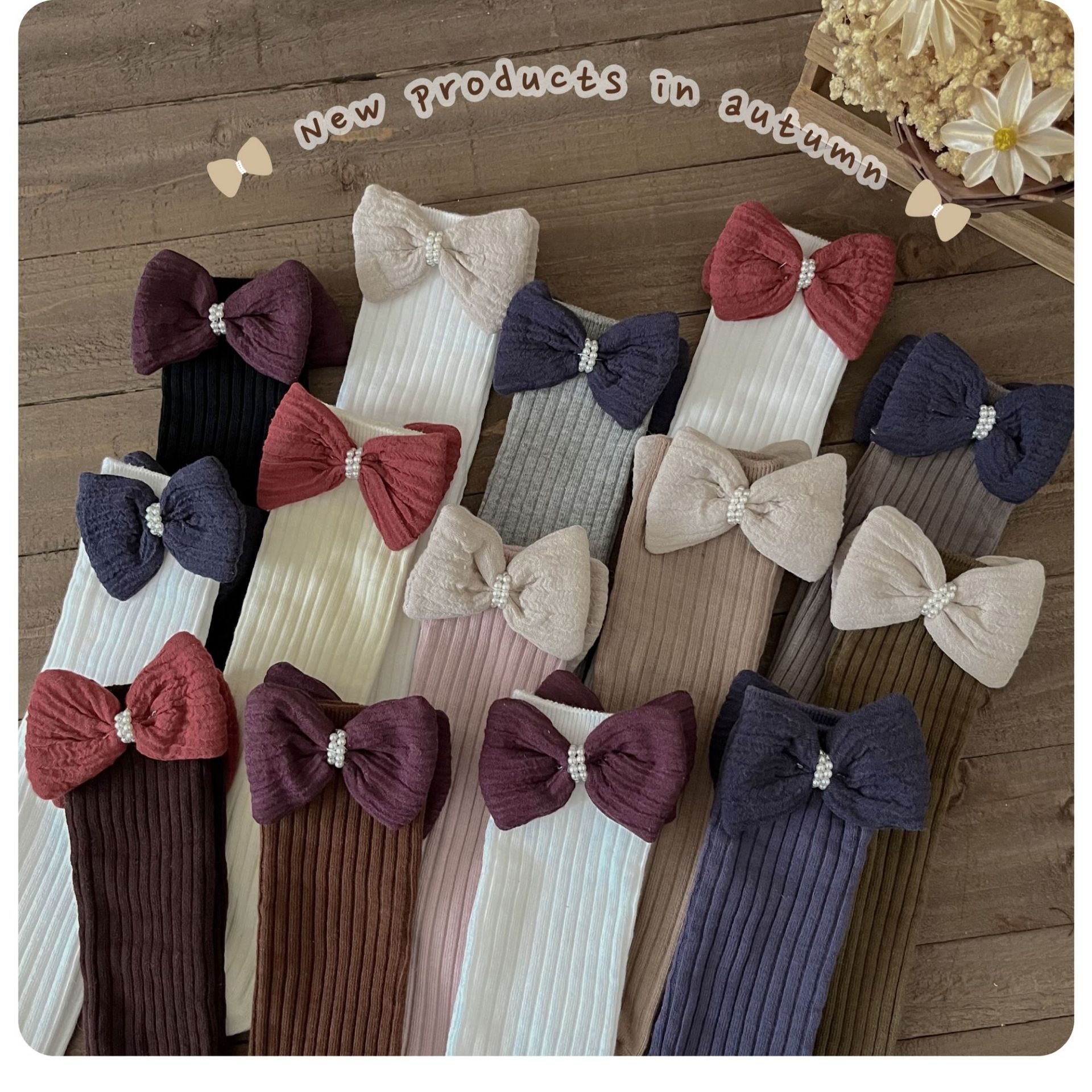 가을 새로운 어린이 양말 아기 진주 활 단색 튜브 양말 면화 더미 양말 공주 양말