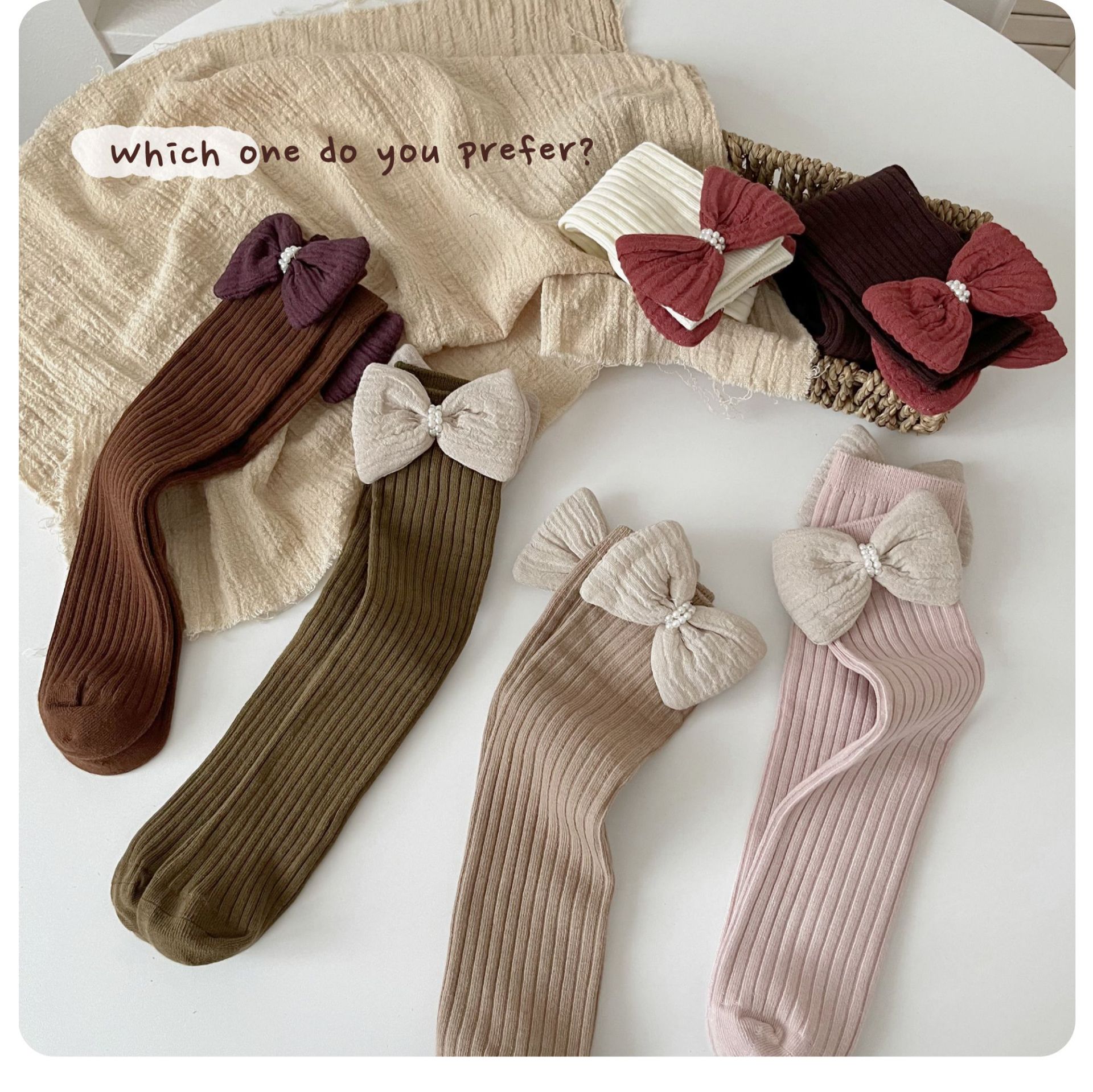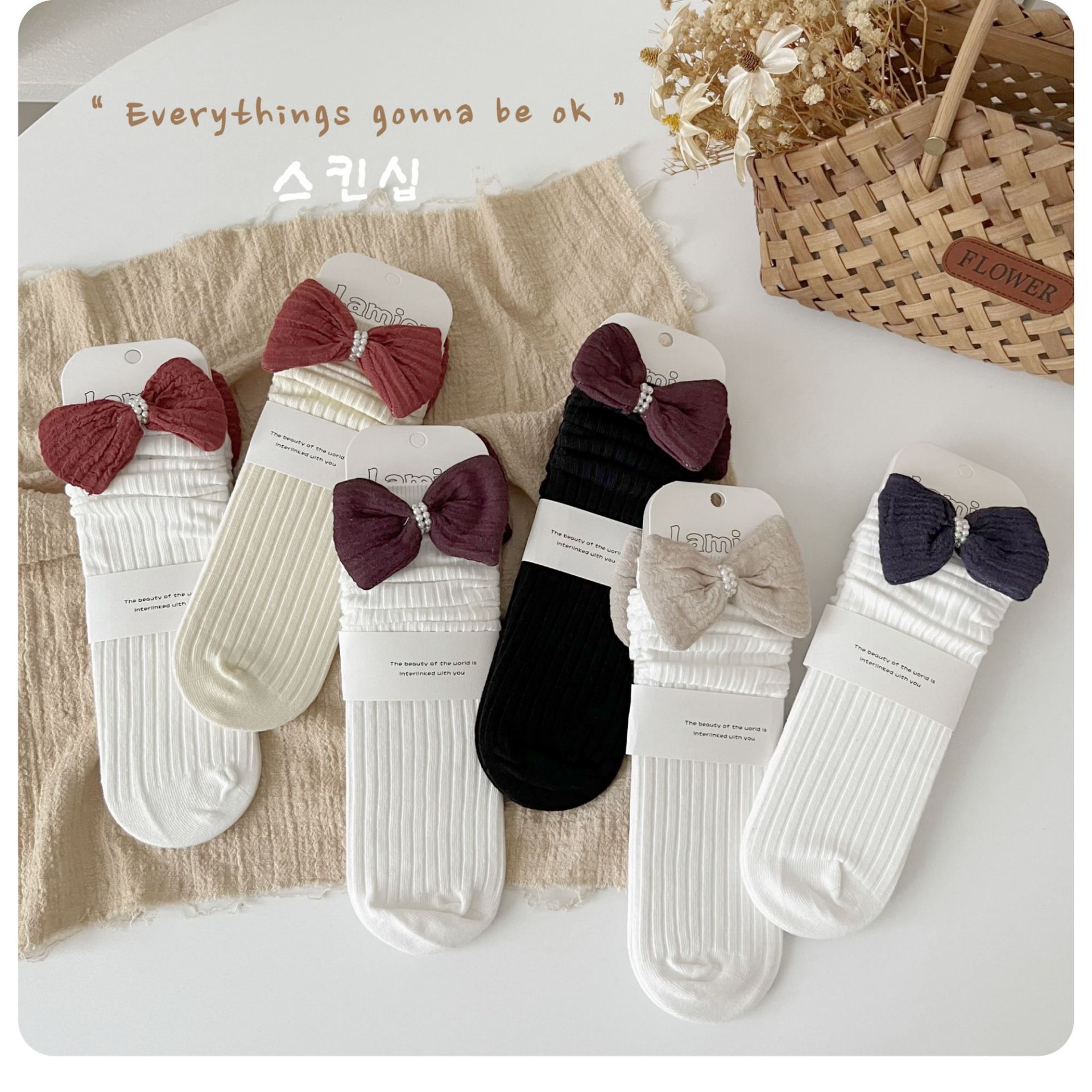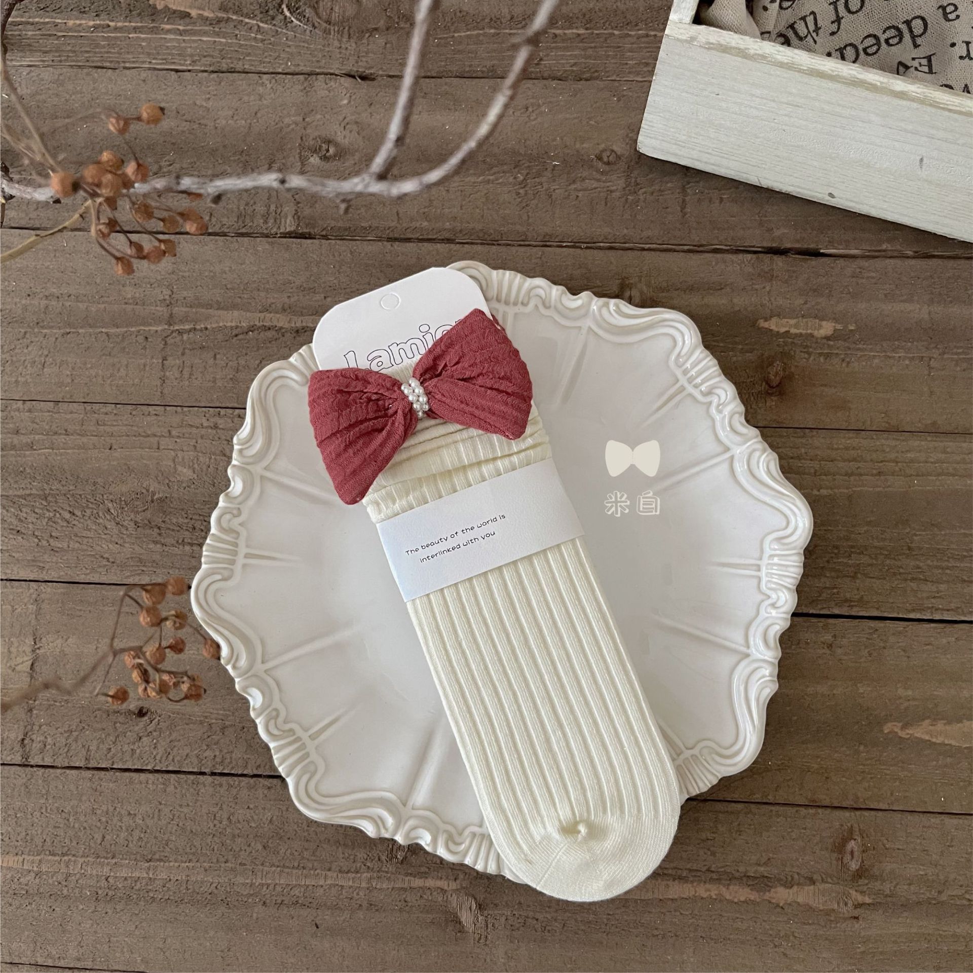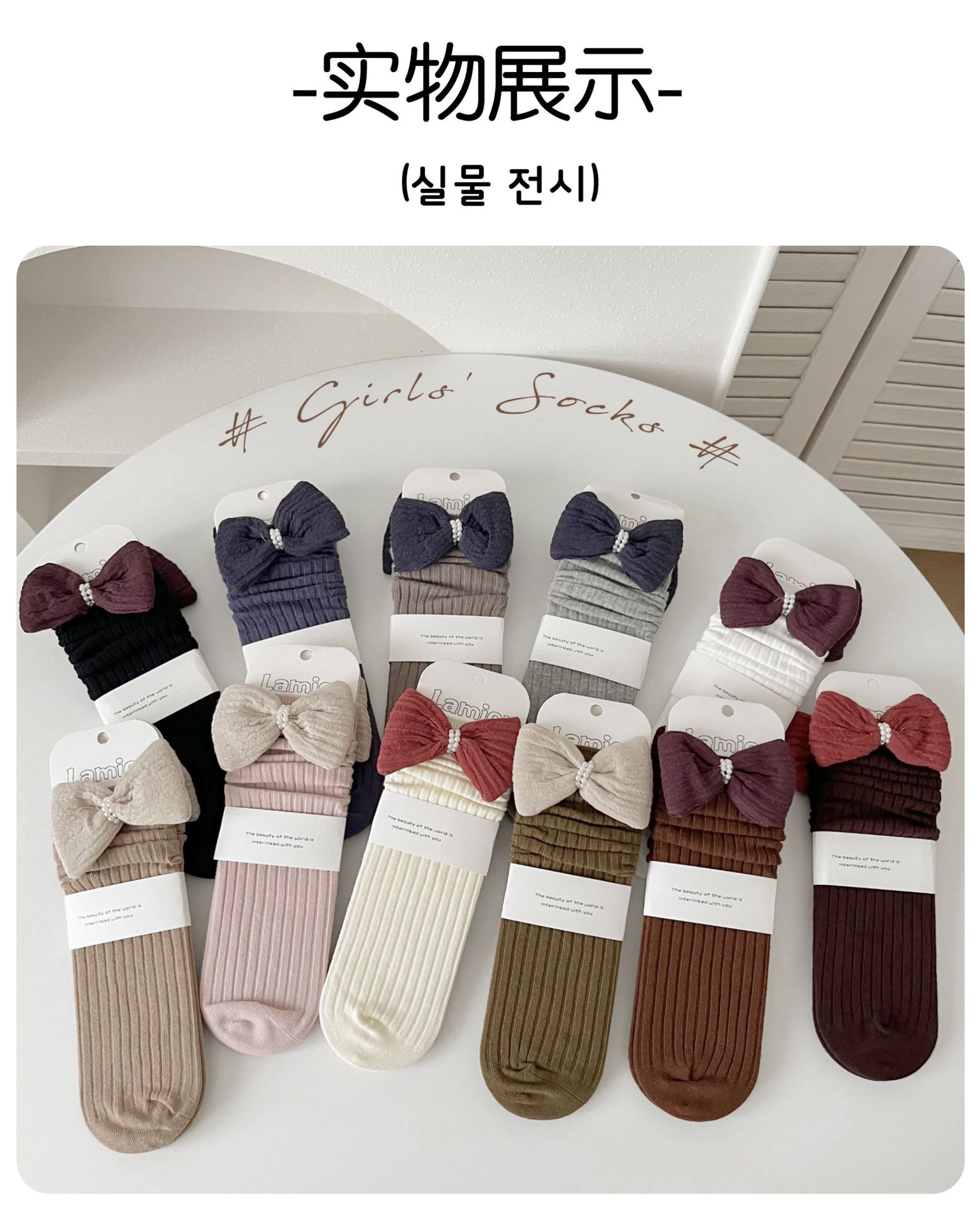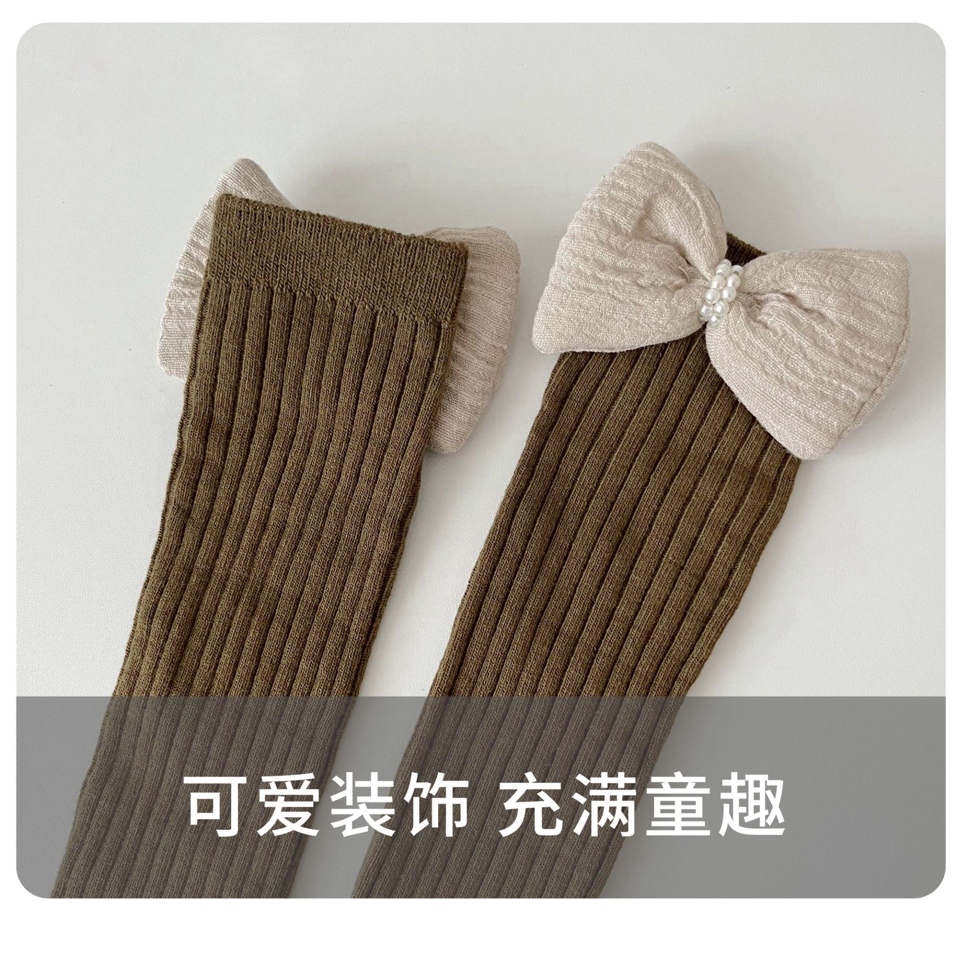 가을 새로운 어린이 양말 아기 진주 활 단색 튜브 양말 면화 더미 양말 공주 양말