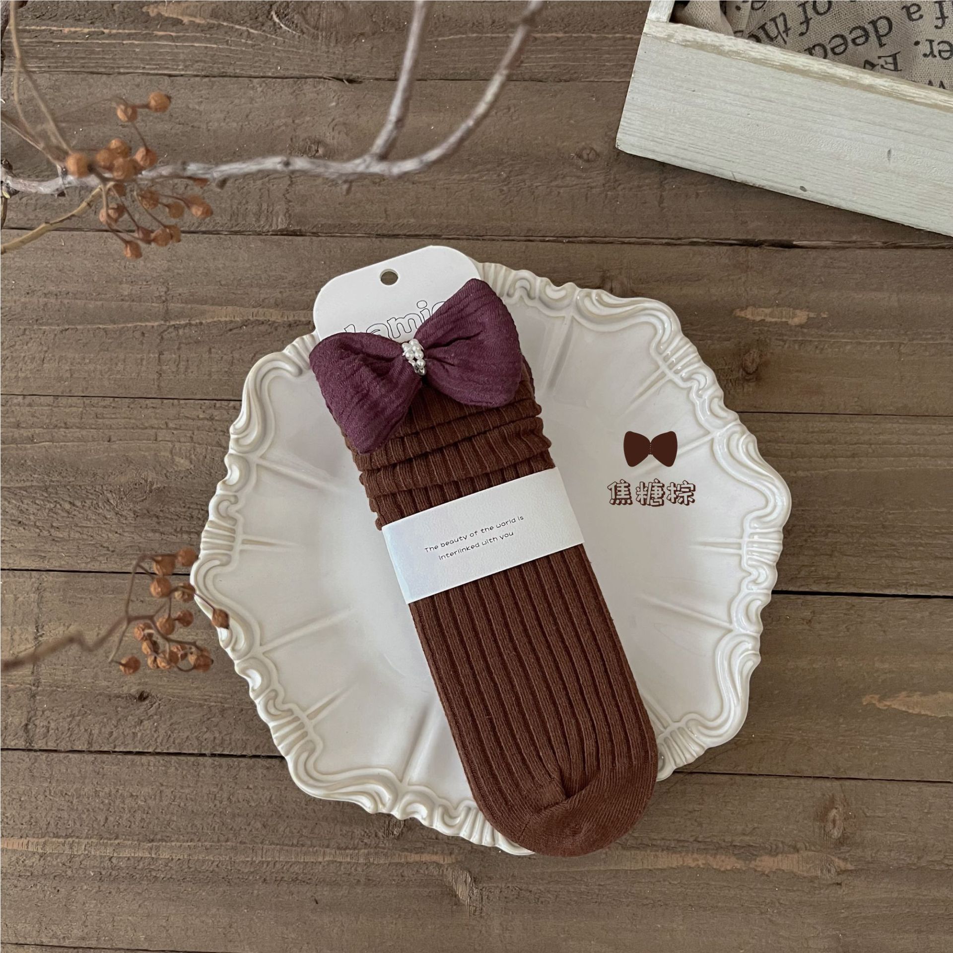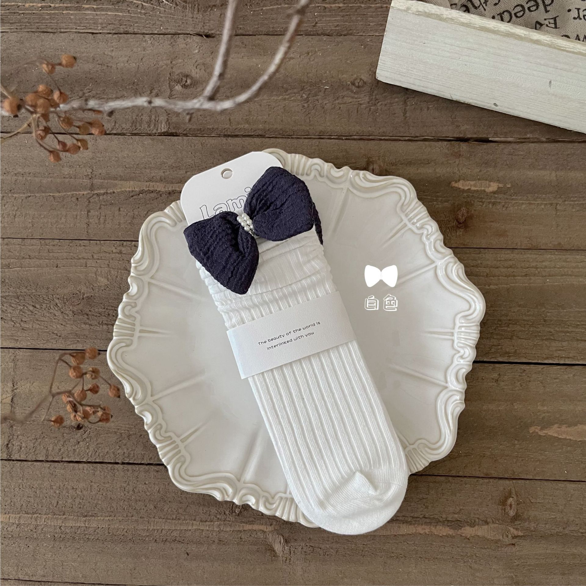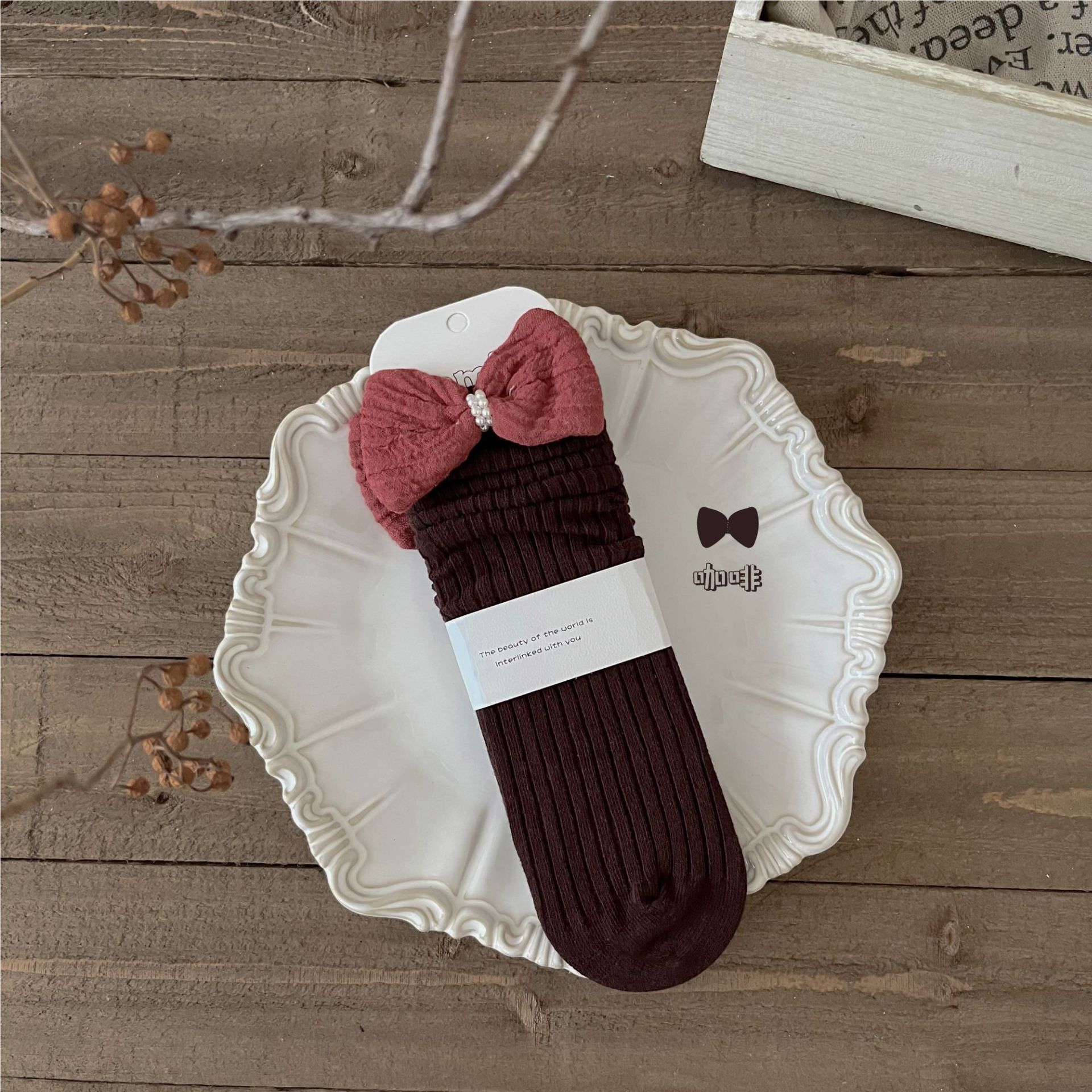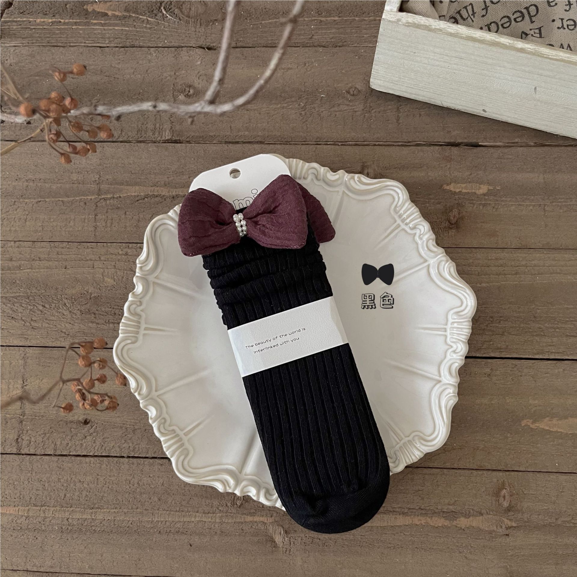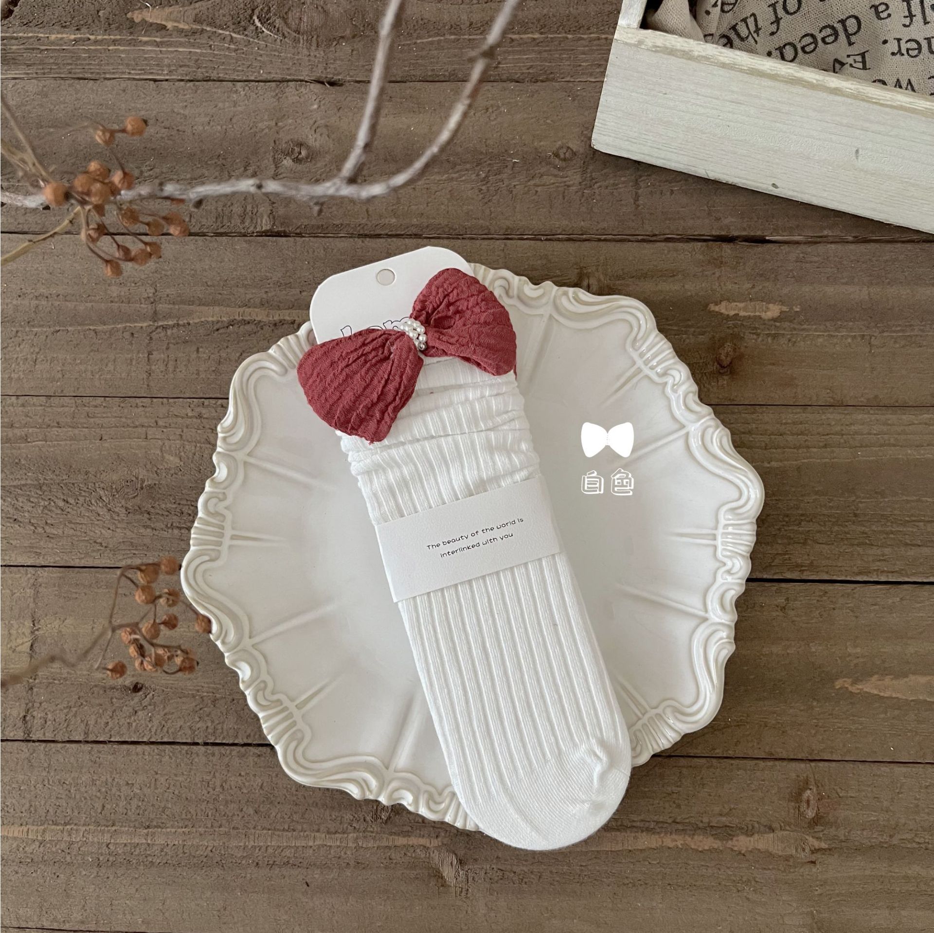 가을 새로운 어린이 양말 아기 진주 활 단색 튜브 양말 면화 더미 양말 공주 양말