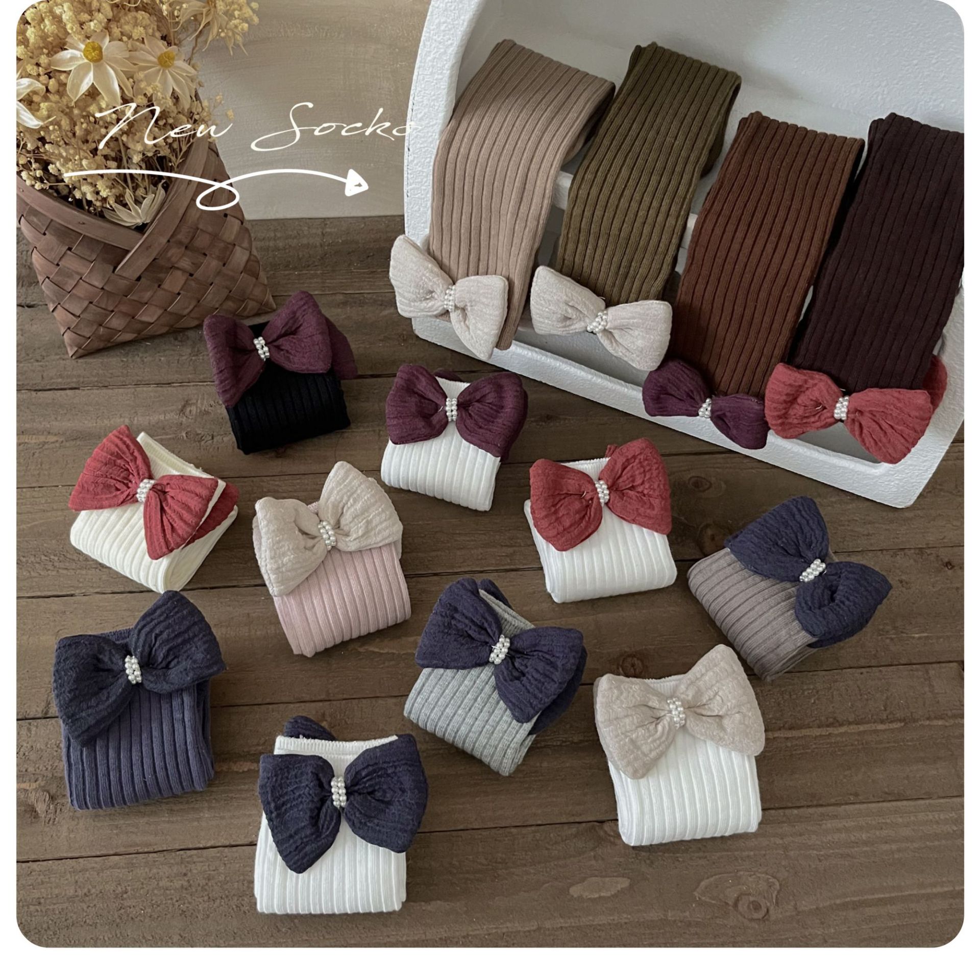 가을 새로운 어린이 양말 아기 진주 활 단색 튜브 양말 면화 더미 양말 공주 양말스토어 가기
